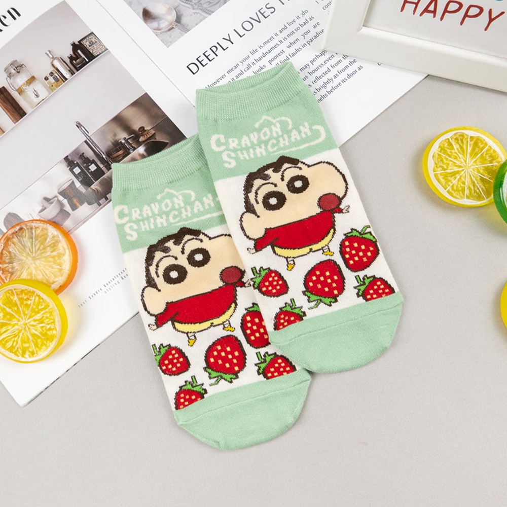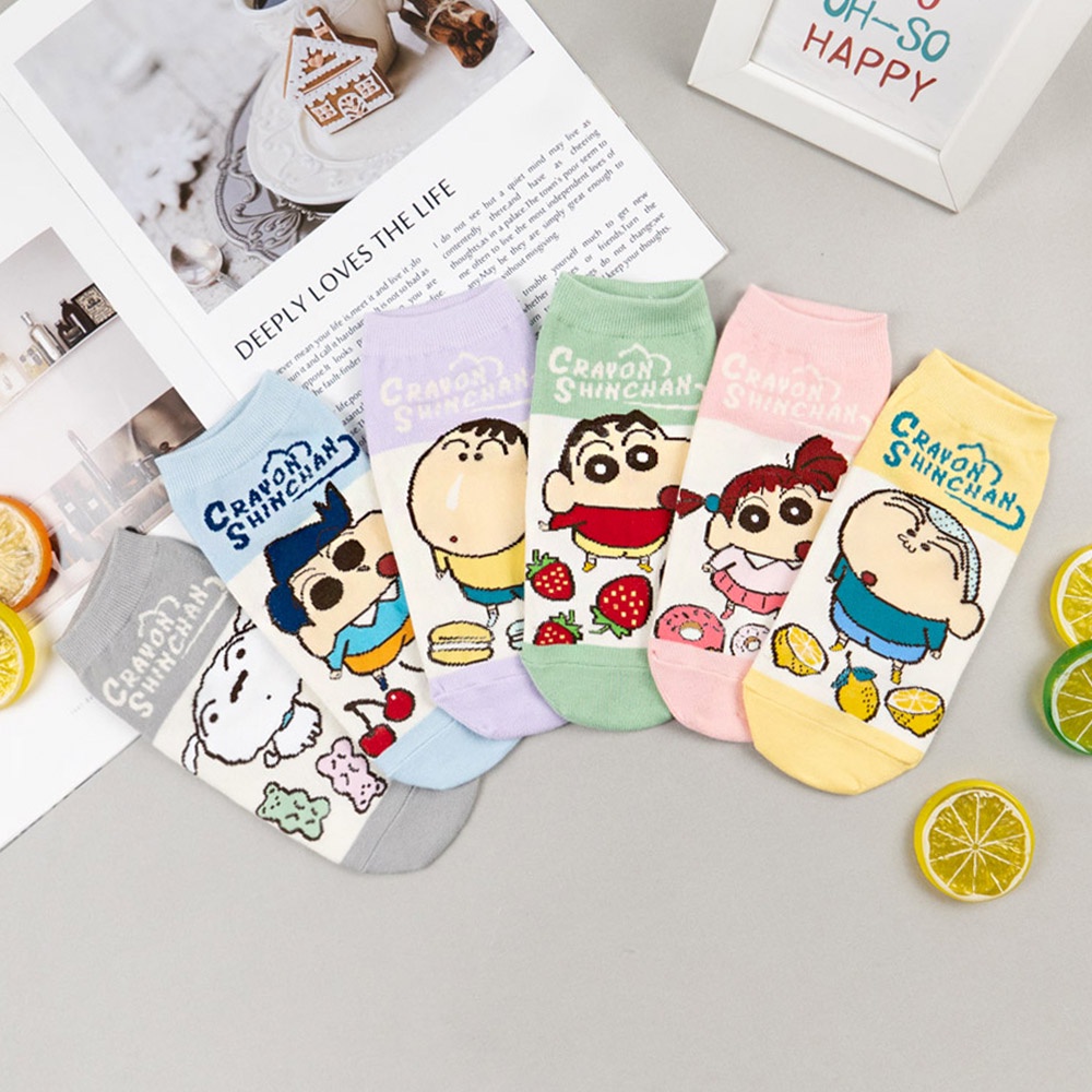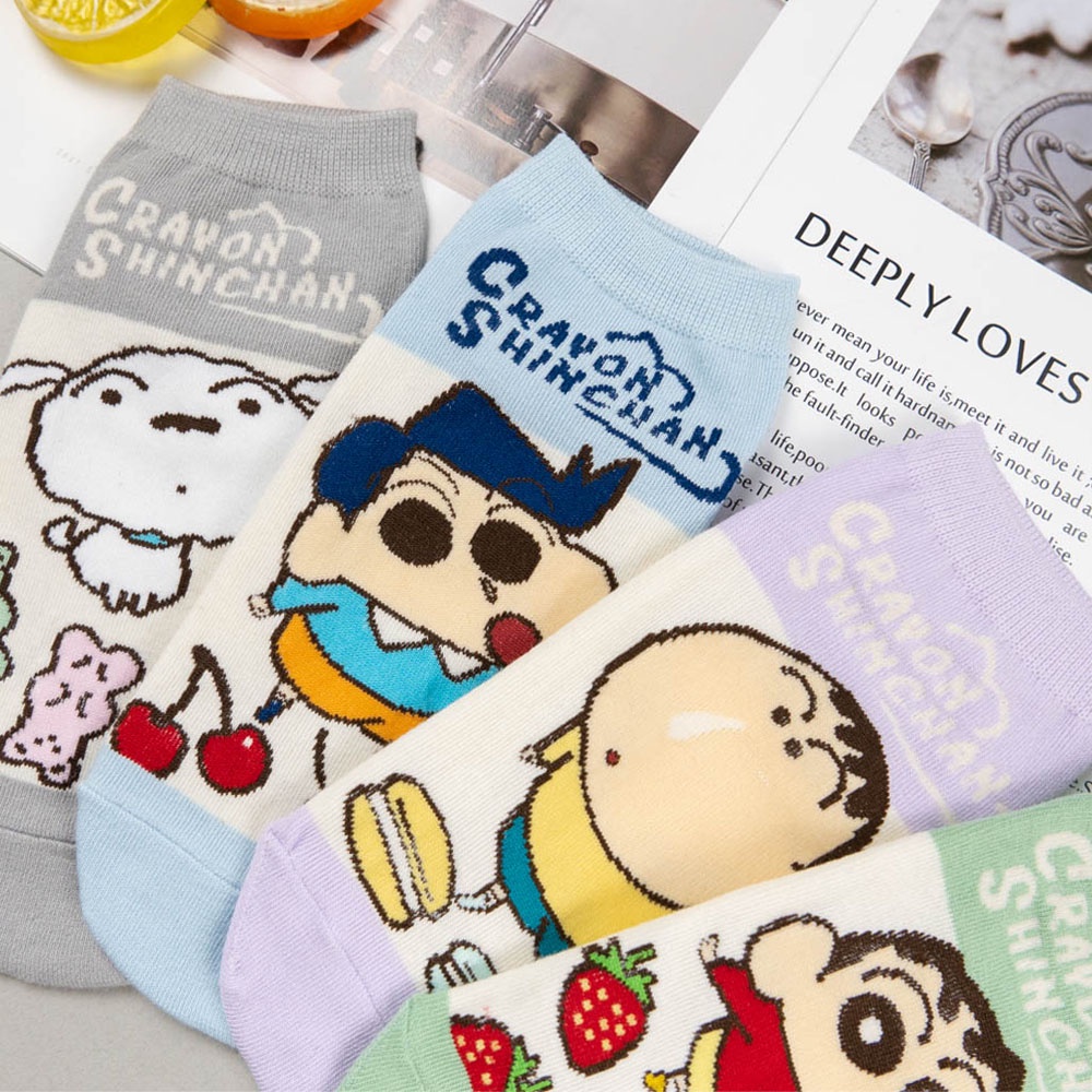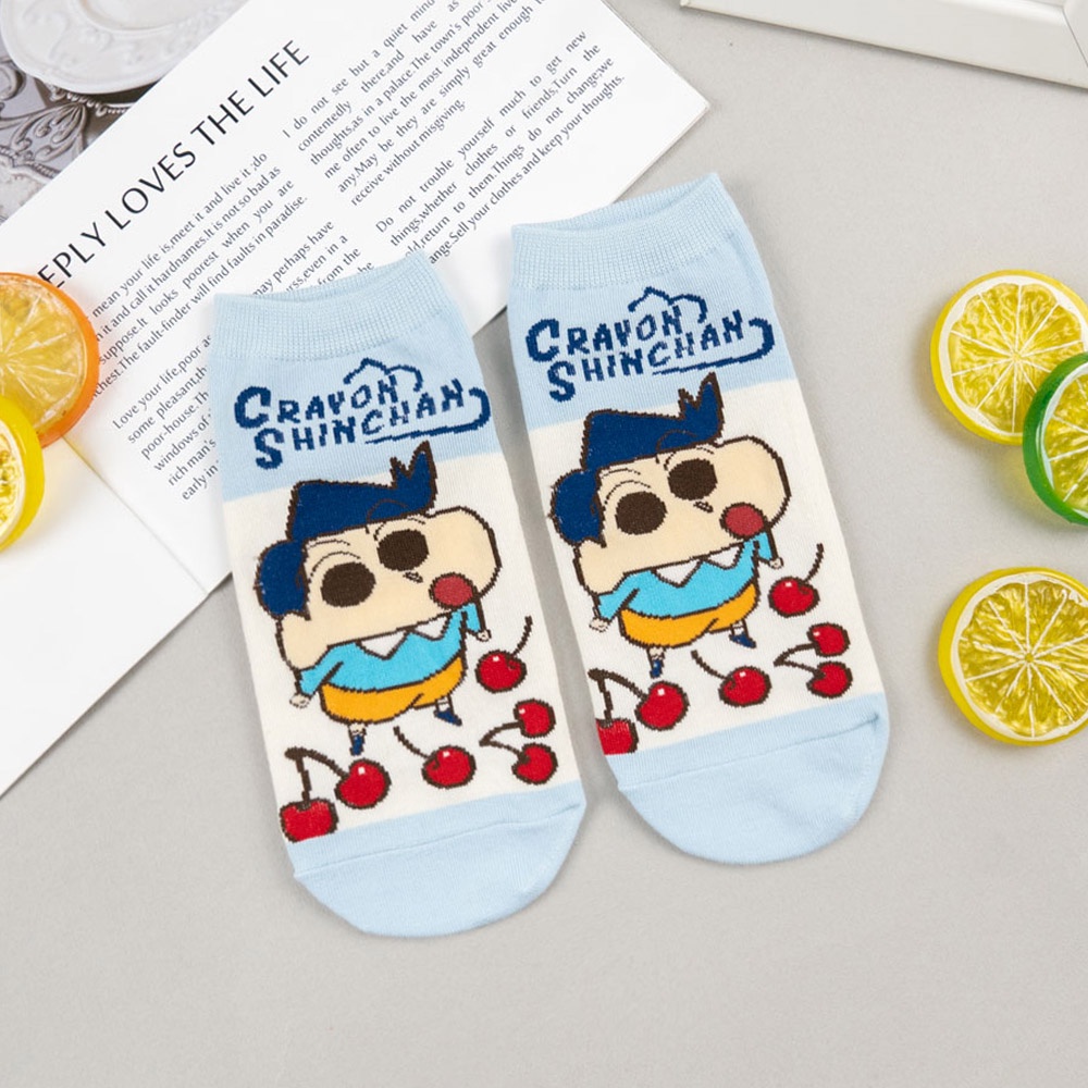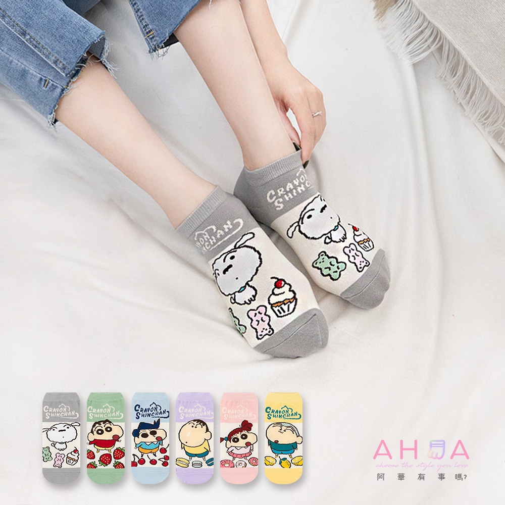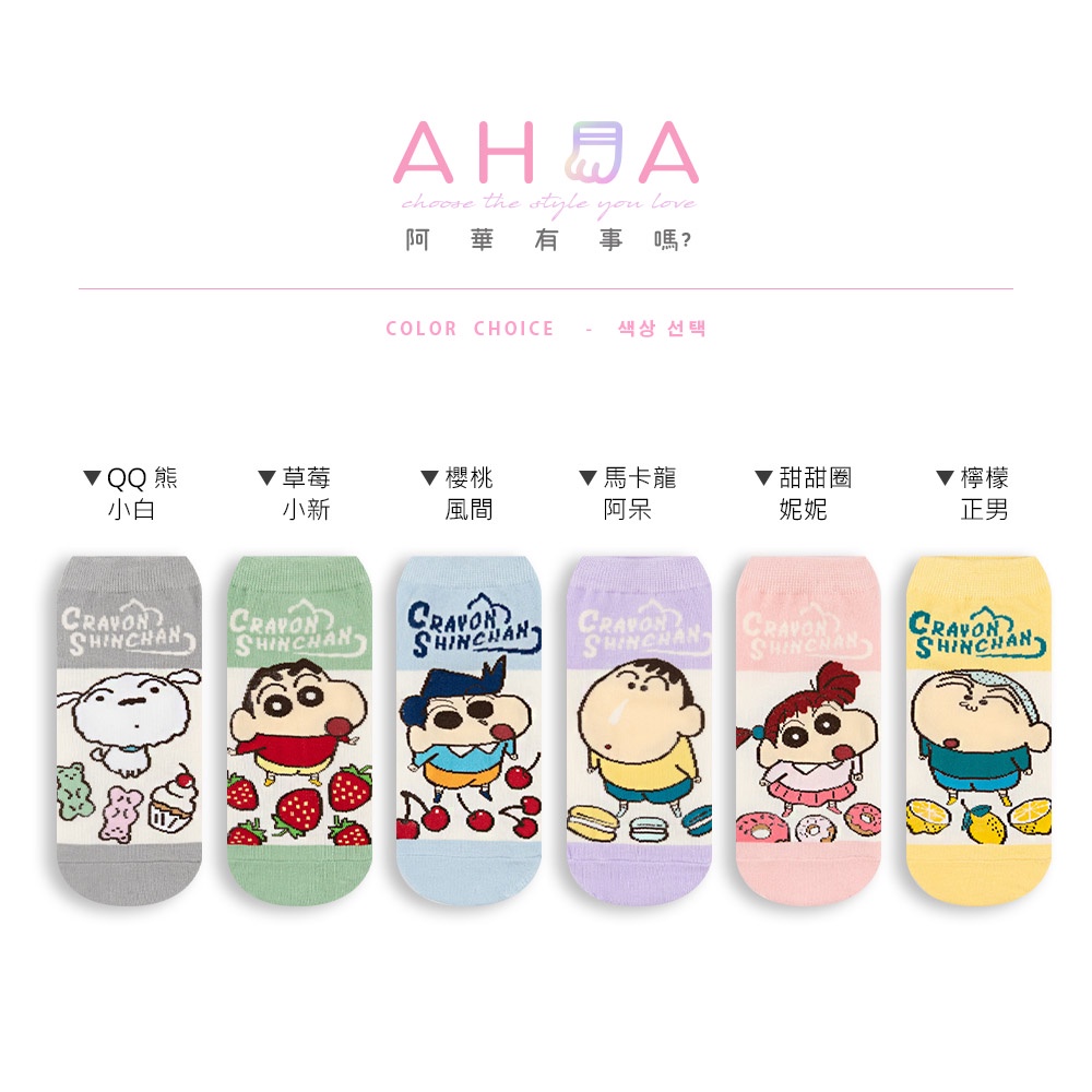 蠟筆小新 AHUA阿華有事嗎 韓國襪子 蠟筆小新全身拼色食物短襪【K1477】短襪 少女襪 韓妞必備中筒襪 百搭純棉襪