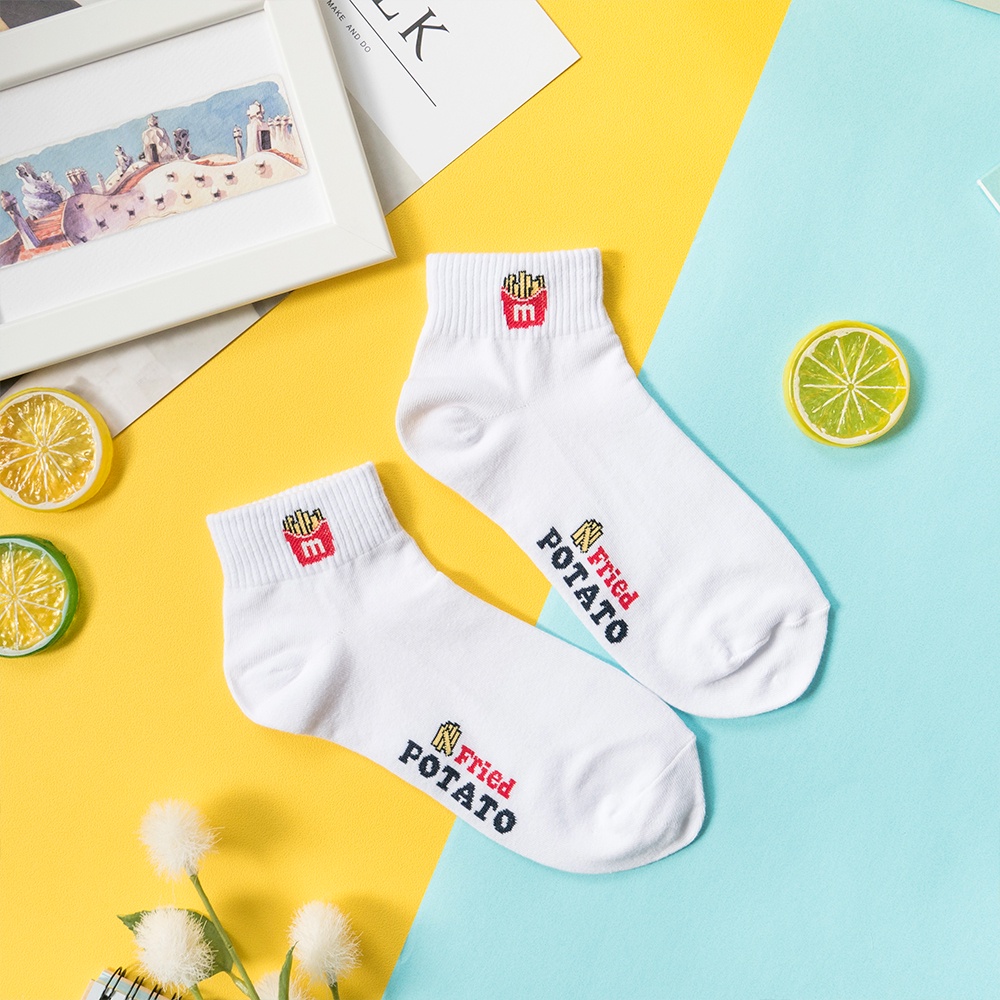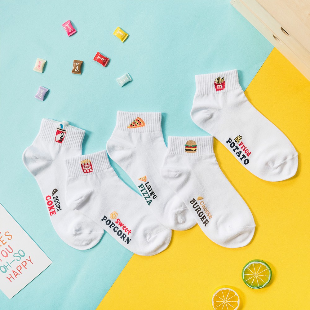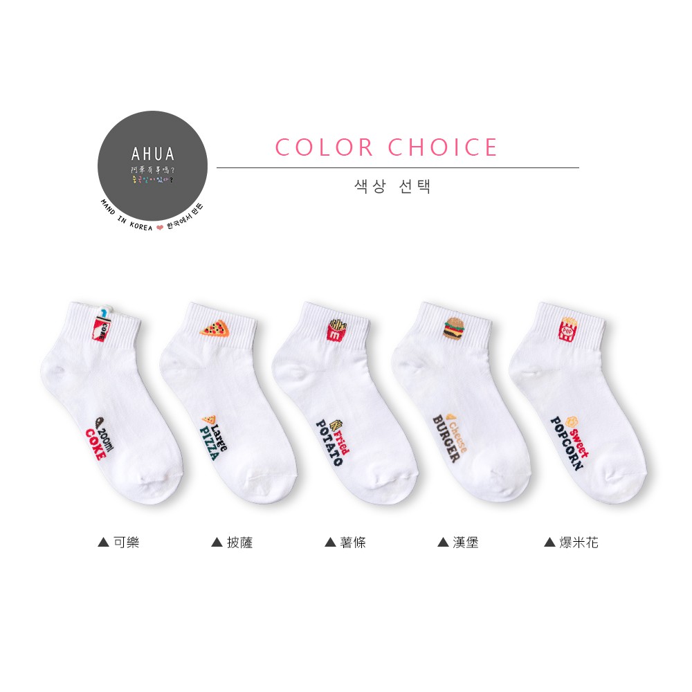 AHUA阿華有事嗎 可愛速食小圖中短襪 R0028 現貨 潮流必備 女生襪子 白襪 女襪 純棉襪 食物 小圖