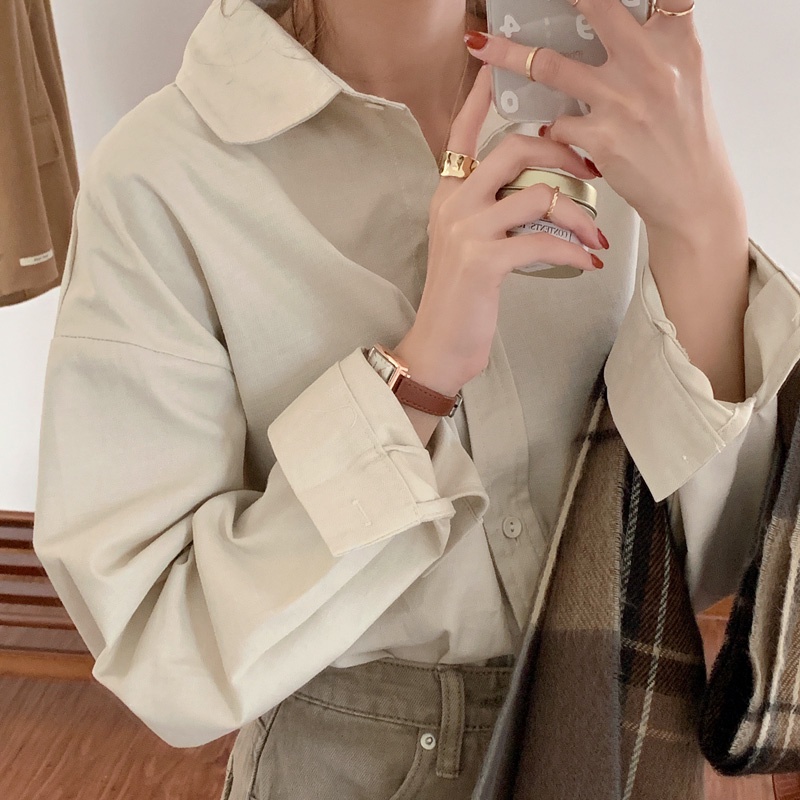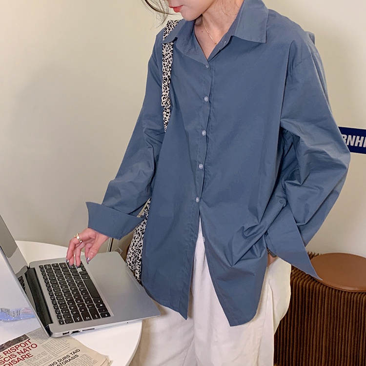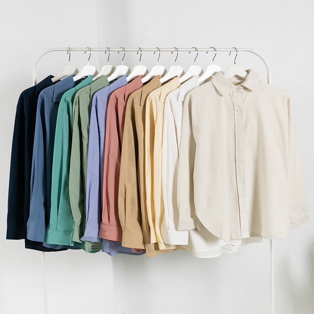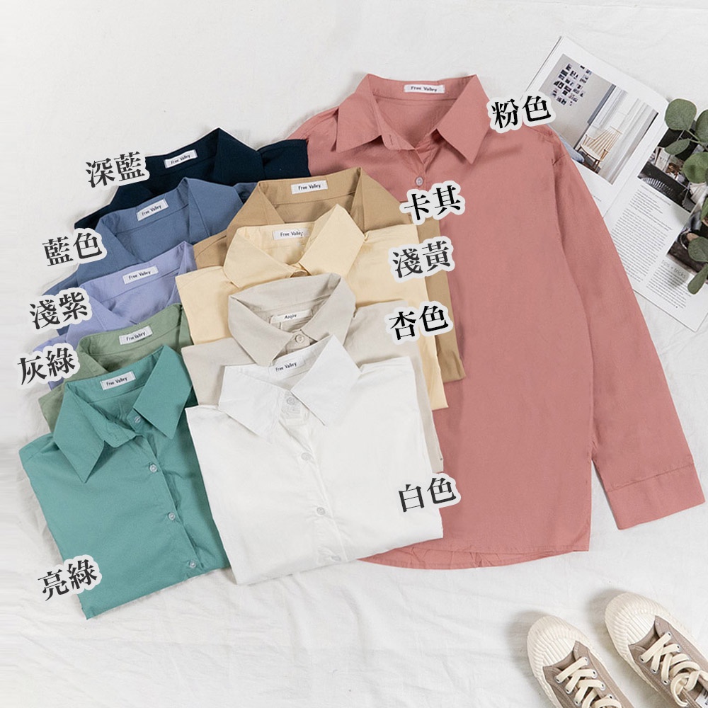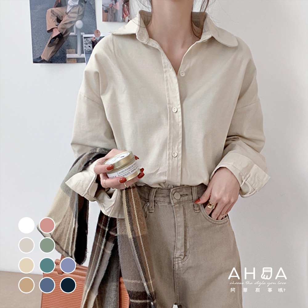 AHUA阿華有事嗎 韓系女裝 百搭純色長袖襯衫【C2325】純色 長袖襯衫 簡約 男友風 韓妞必備 百搭基本款