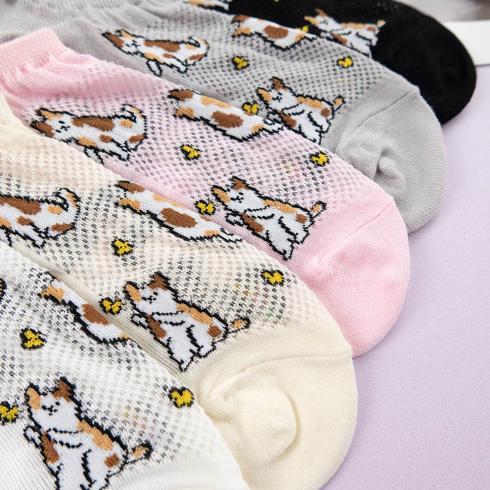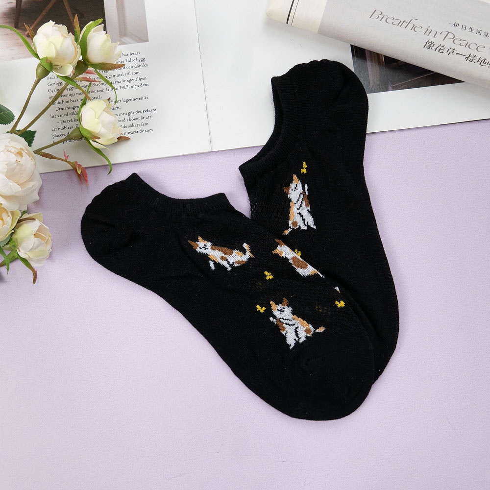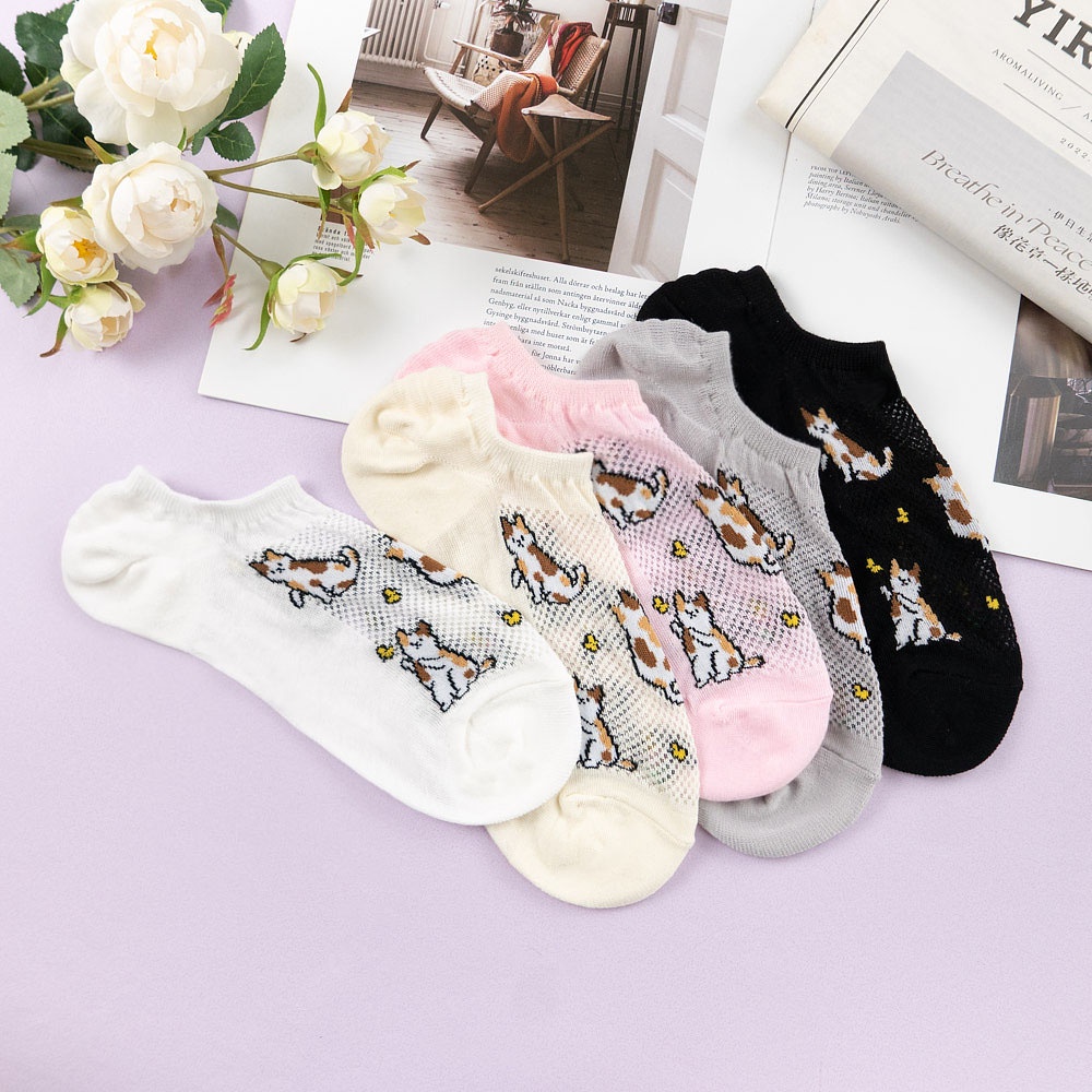 AUHA阿華有事嗎 韓國襪子 網眼貓抓蝴蝶船型襪【K1458】百搭 可愛 實穿 女襪 純棉 船型襪