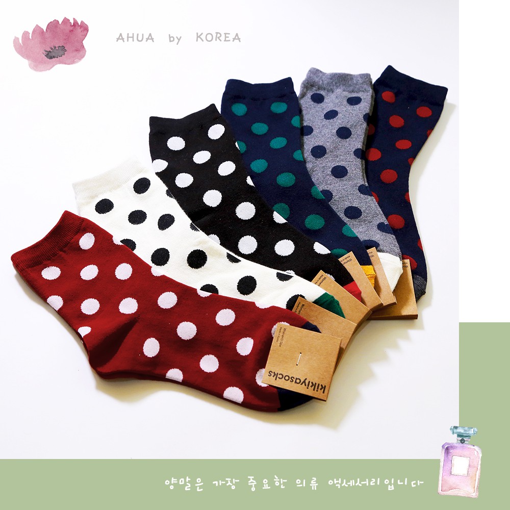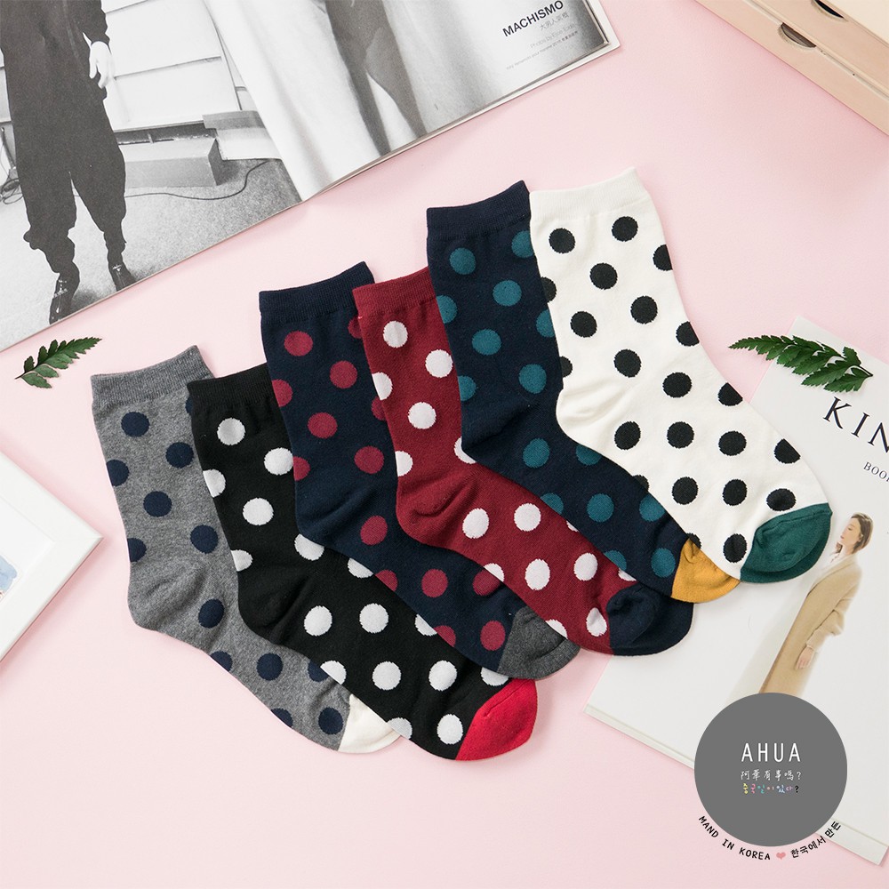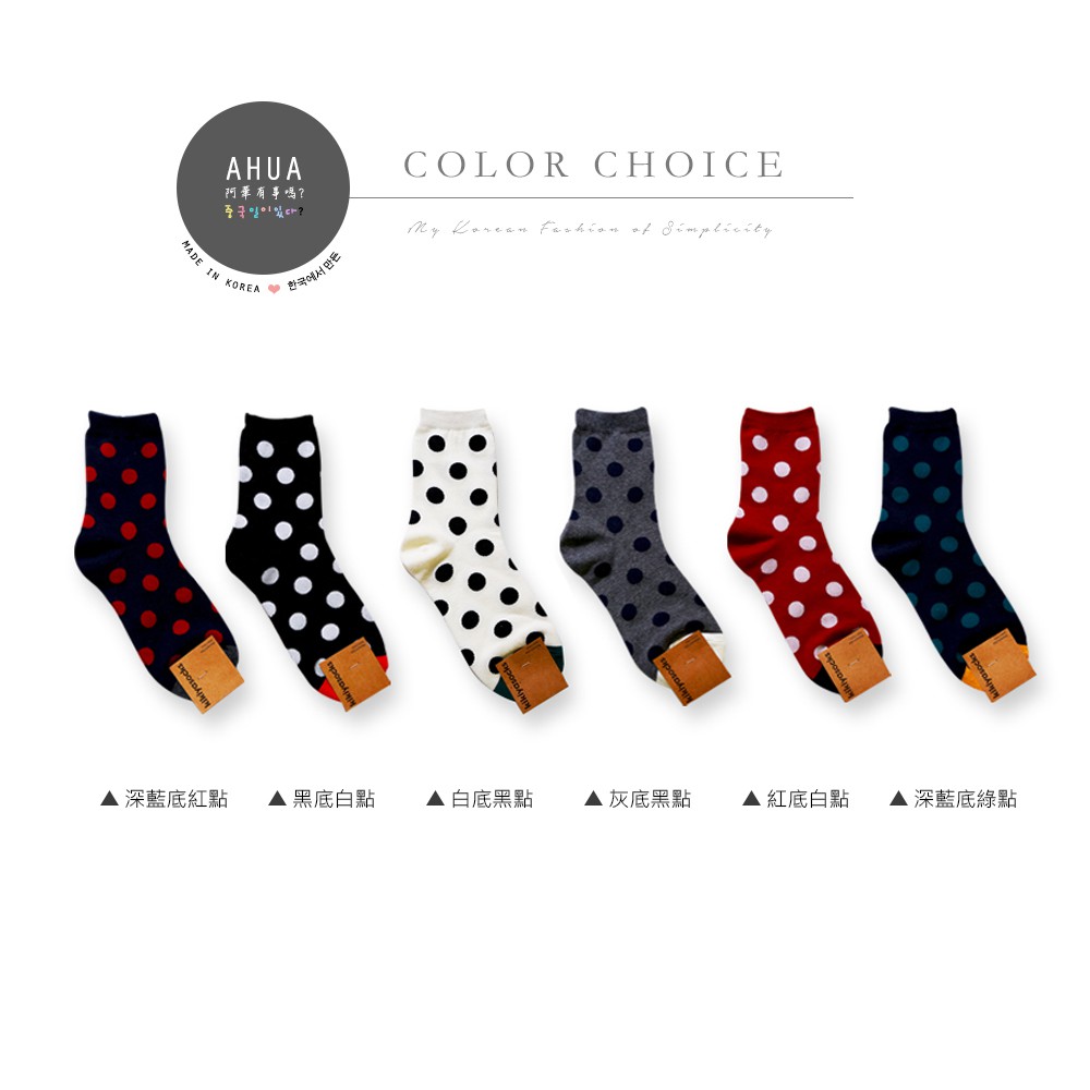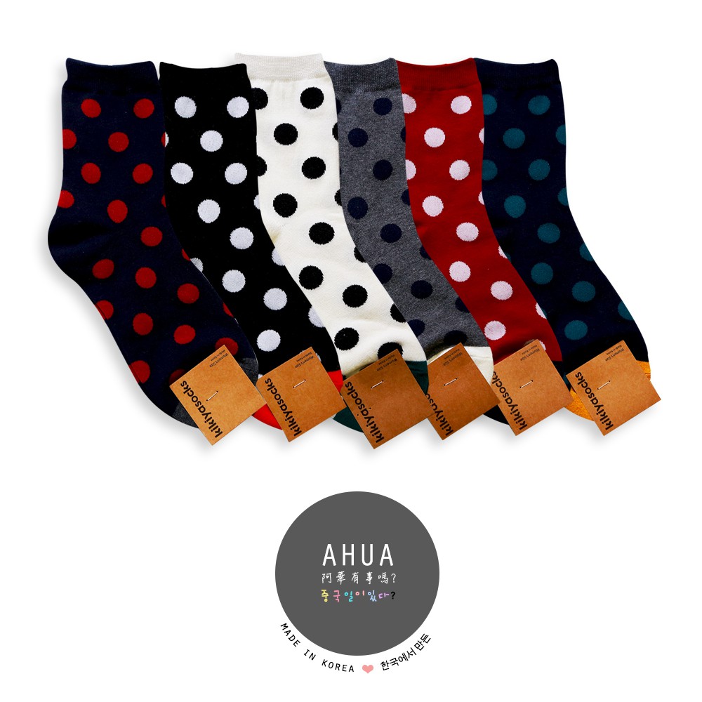 AHUA阿華有事嗎 韓國襪子 純色圓點中筒襪 K0118 好穿好搭配 正韓熱賣爆款 韓妞必備 波點襪子