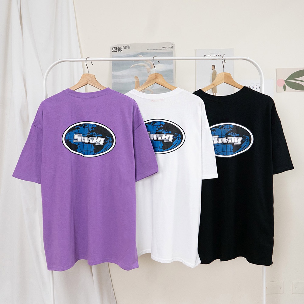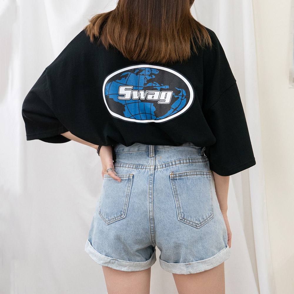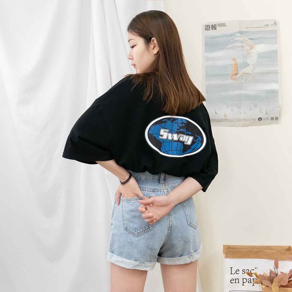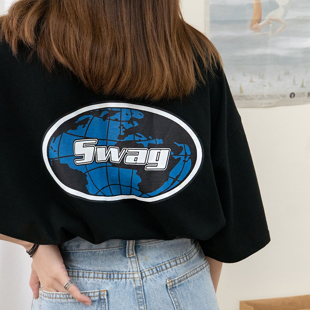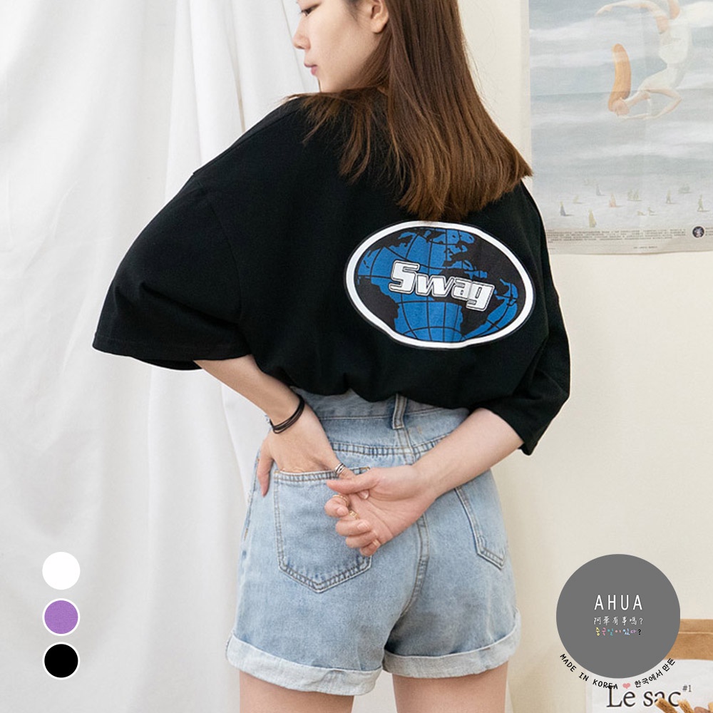 AHUA阿華有事嗎 正韓女裝 SWAG字母地球短袖T恤【C1962】印字 百搭 實穿 休閒 潮流 上衣 基本款 韓妞必備