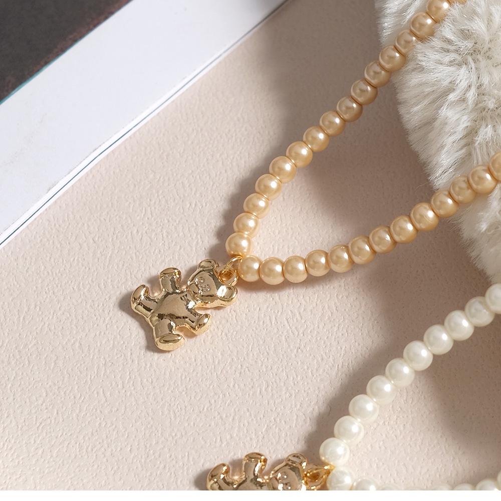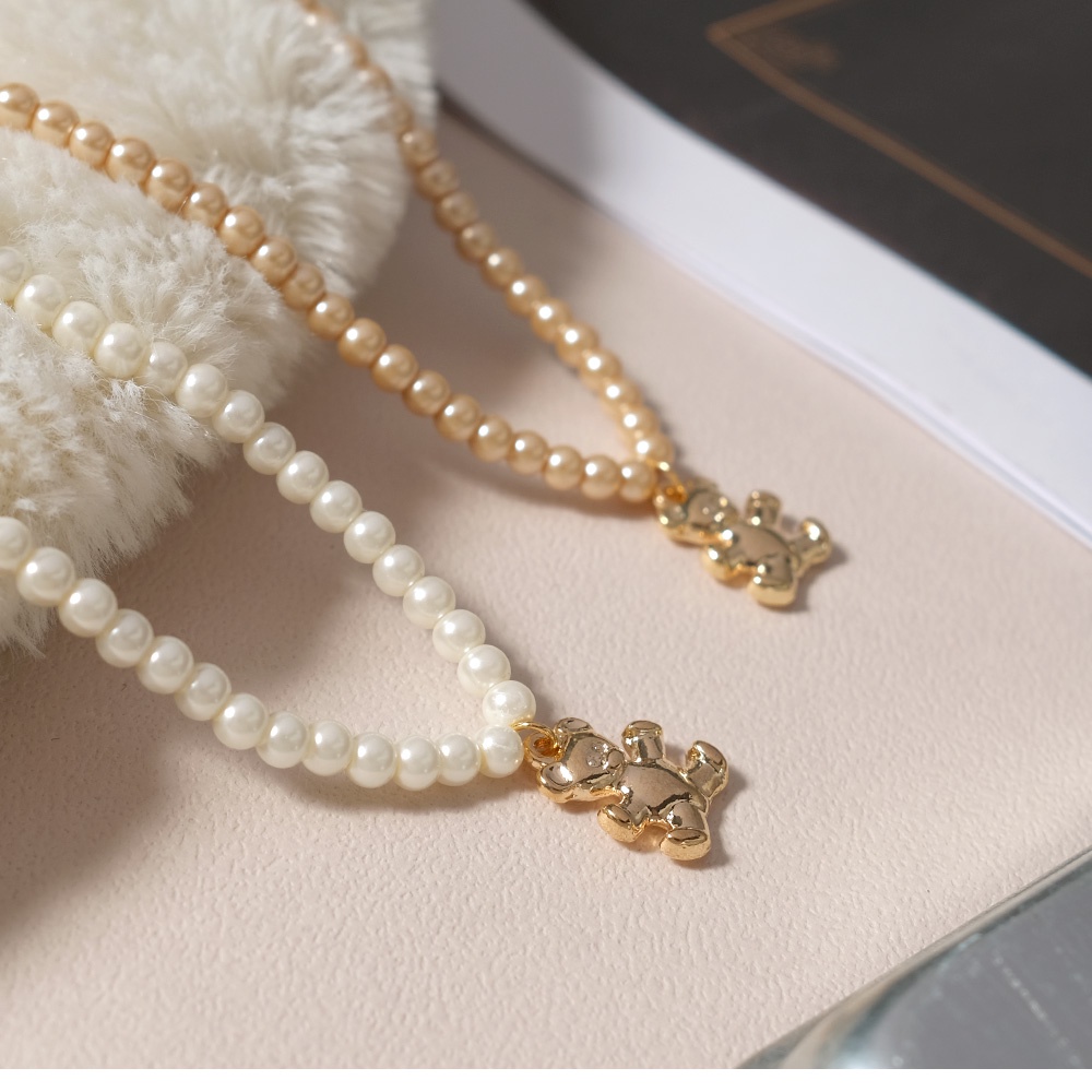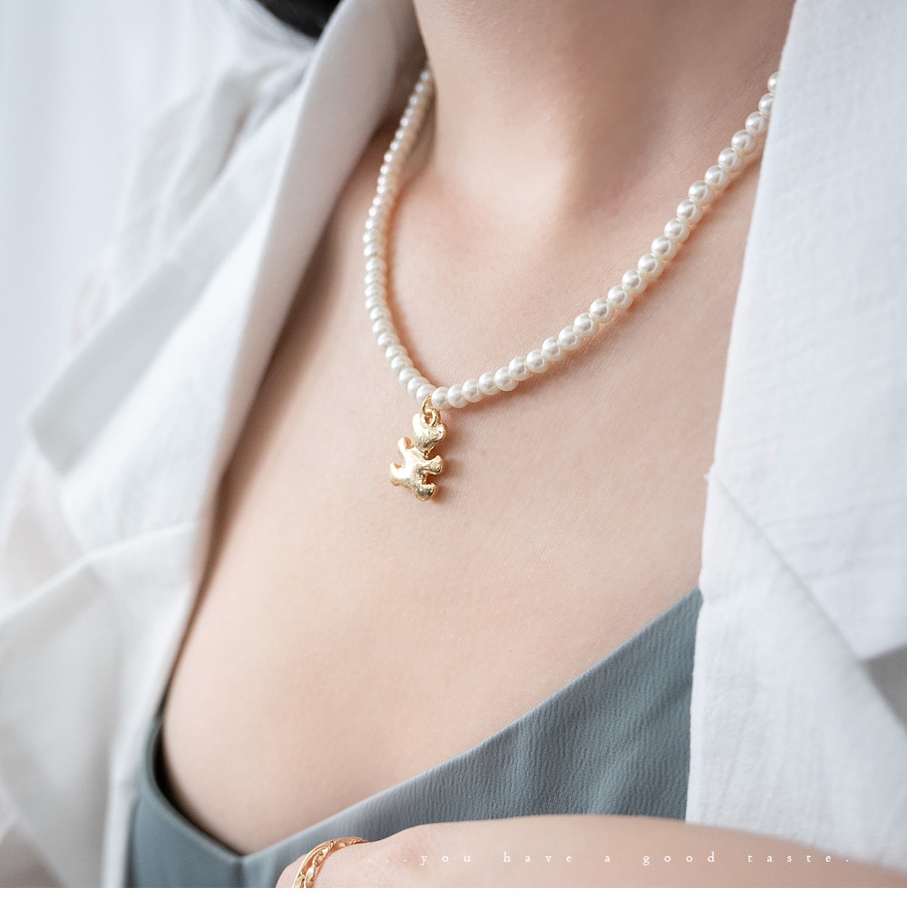 AHUA阿華有事嗎 韓國飾品 金屬熊熊珍珠項鍊【A0821】短鍊 頸鍊 時尚 簡約 氣質 韓妞必備 百搭 基本款 項鍊