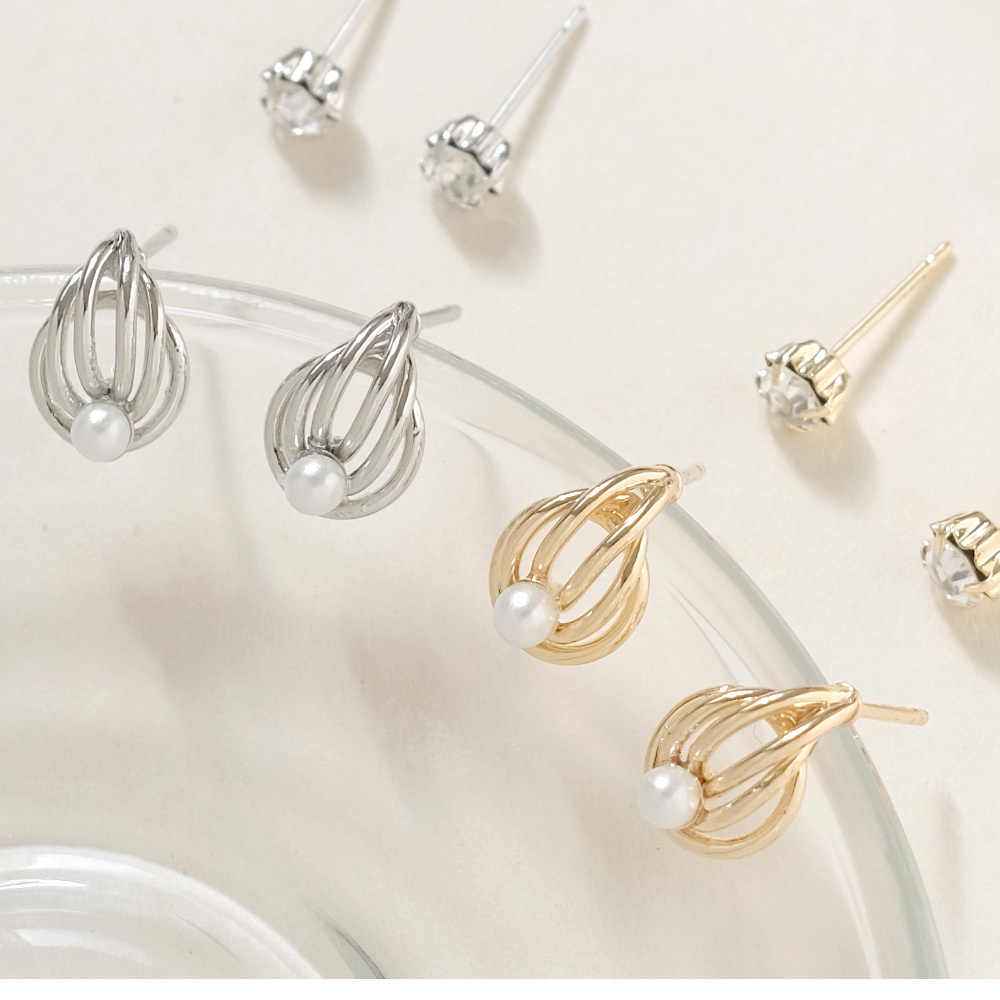 AHUA阿華有事嗎 韓國飾品 金屬幾何火焰珍珠耳環6入組【A0845】水滴 幾何 單鑽 耳針 耳環 韓妞必備 百搭基本款