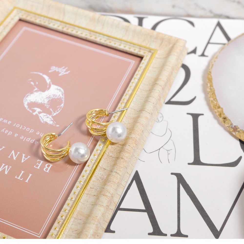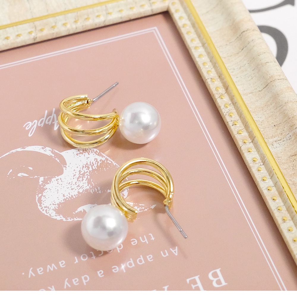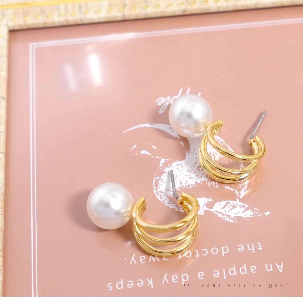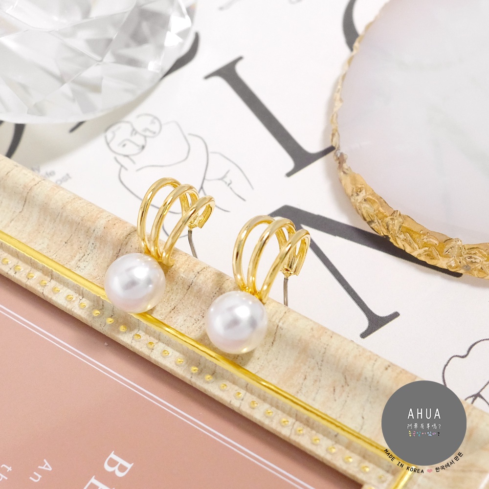 AHUA阿華有事嗎 韓國飾品 簡約三圈C型珍珠耳環【A0453】正韓 C圈 氣質 浪漫 韓妞必備 百搭 基本款 耳針