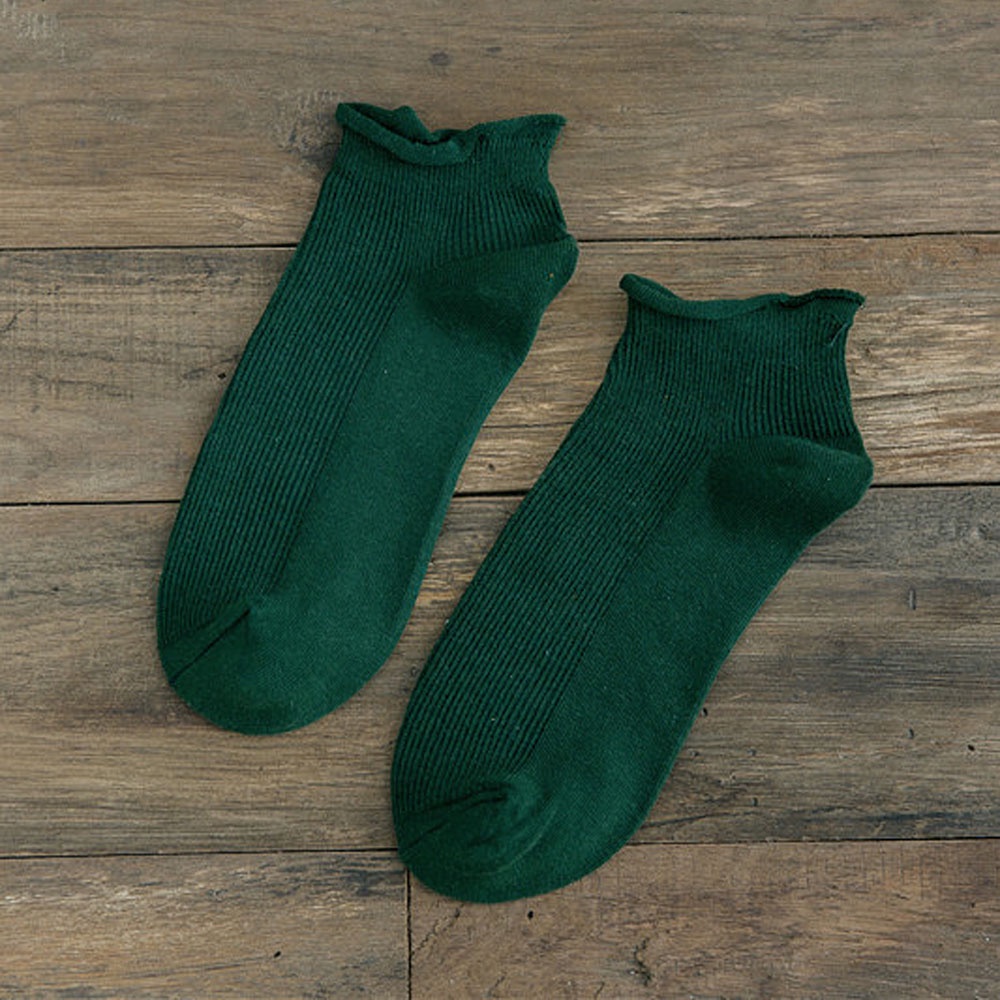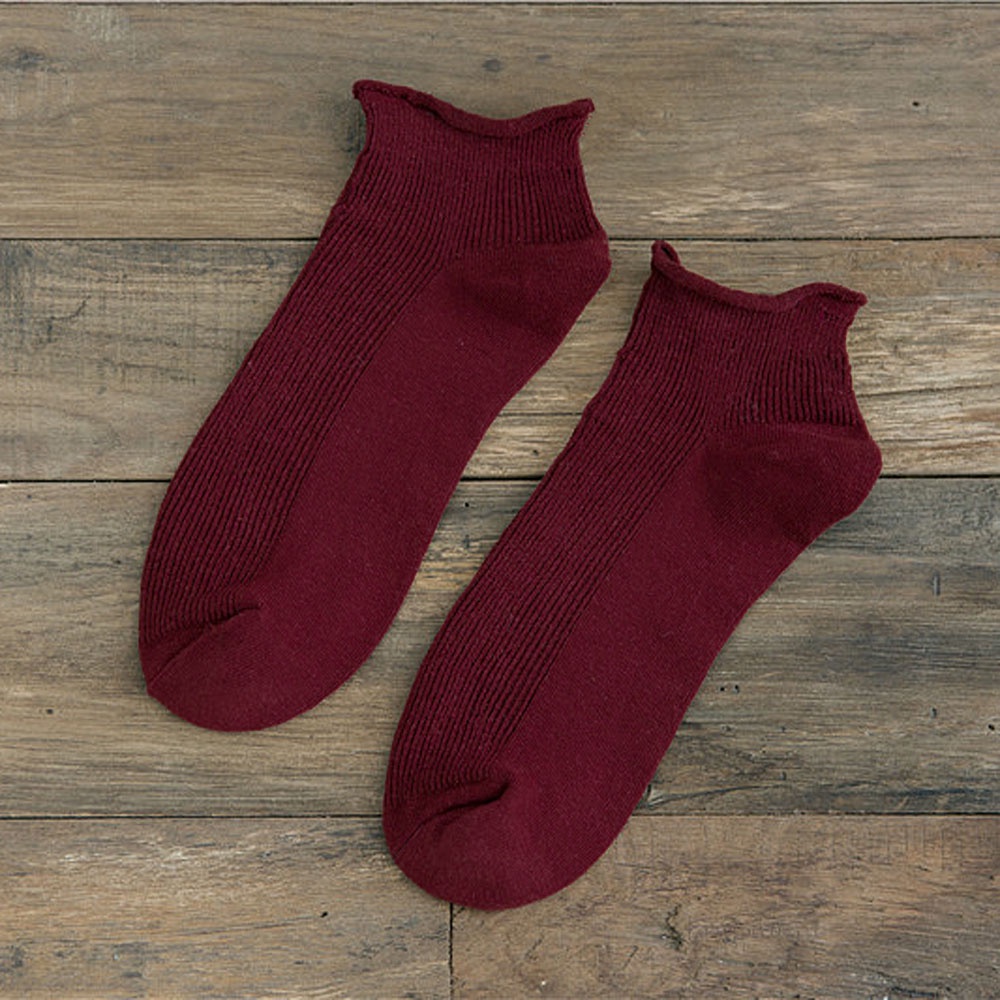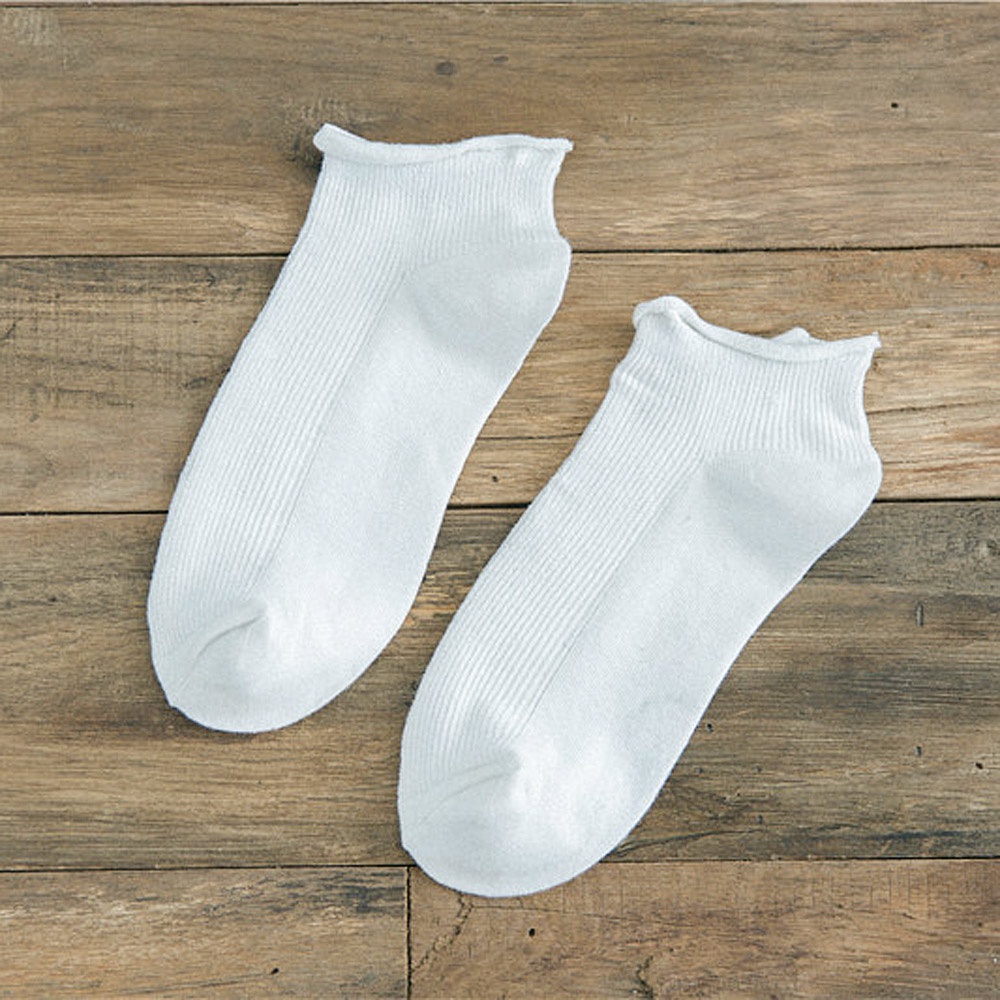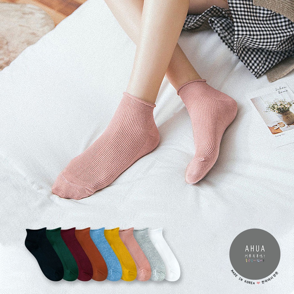AHUA阿華有事嗎 日系襪子 純色坑條捲邊短襪【S0394】 純色 少女襪 韓妞必備長襪 百搭純棉襪