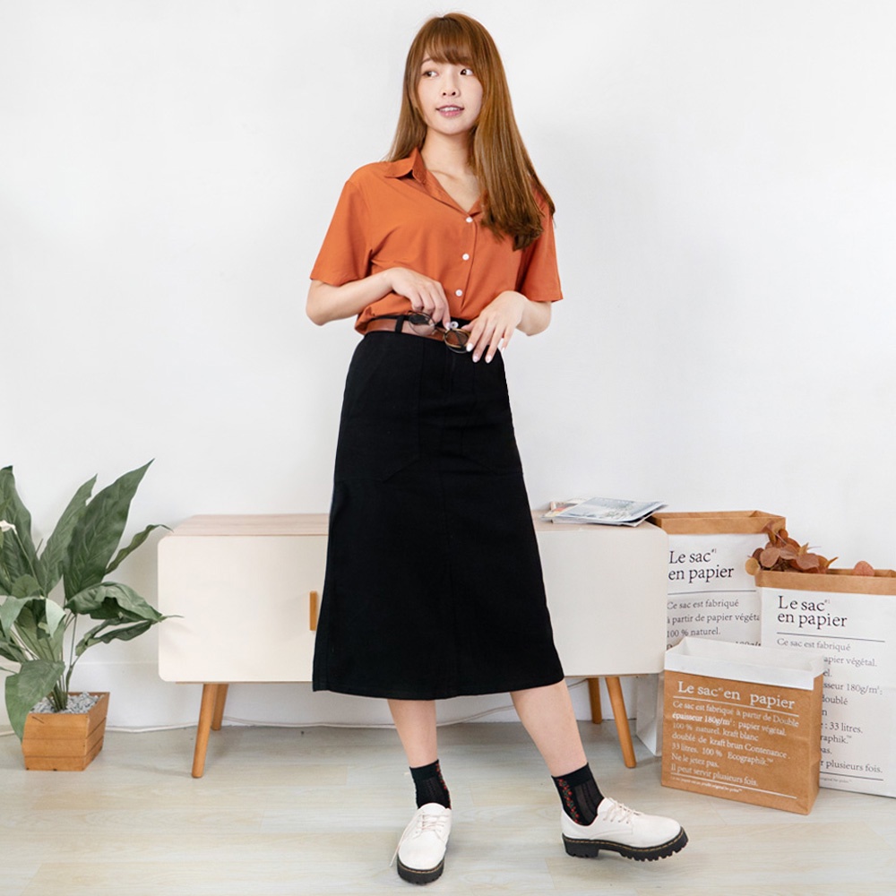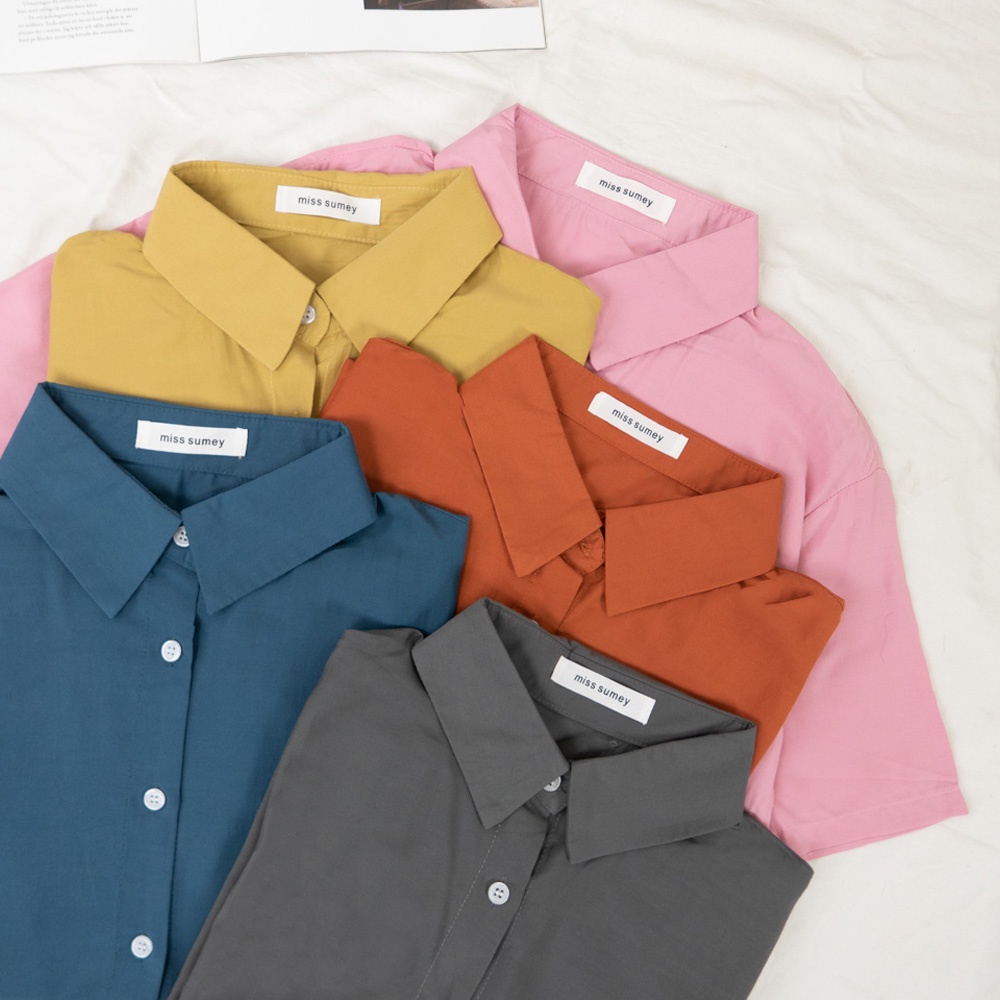 AHUA阿華有事嗎 韓系女裝 復古純色短袖襯衫【C2369】休閒 文青 顯瘦 素色 翻領 上衣 韓妞必備 百搭基本款