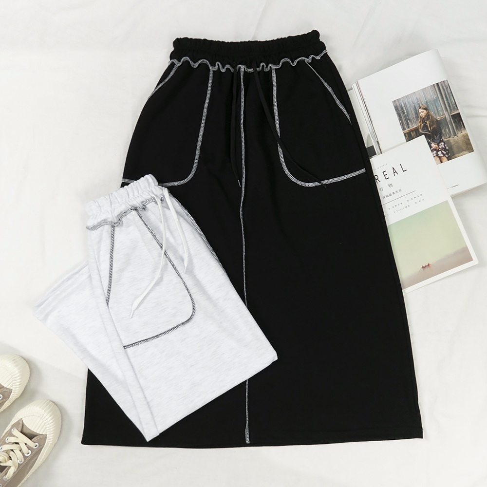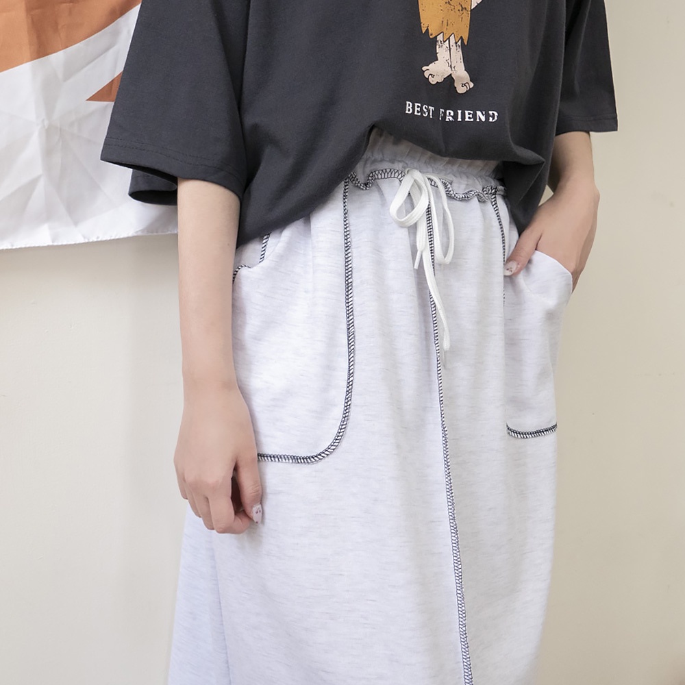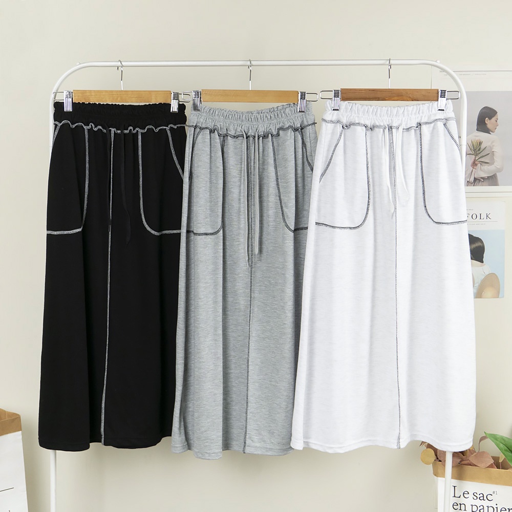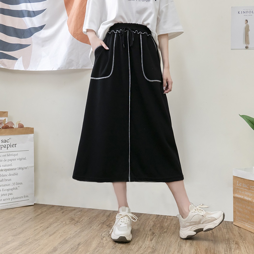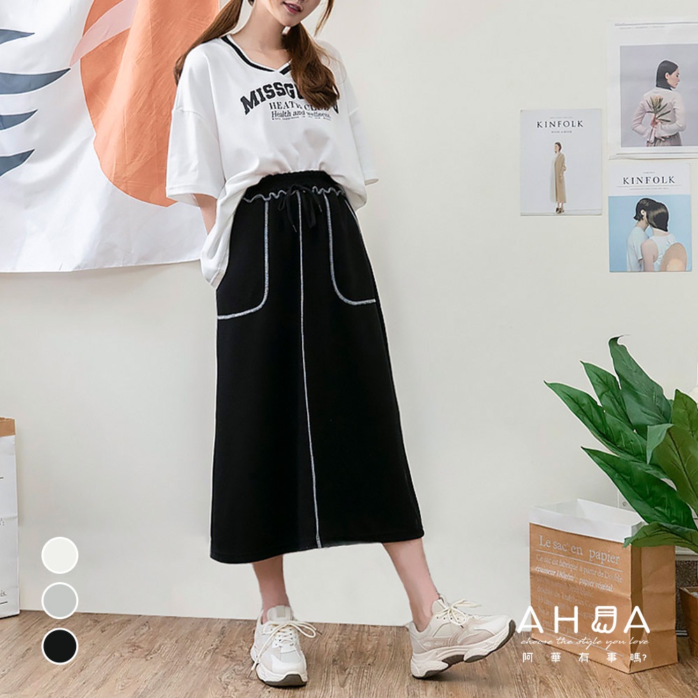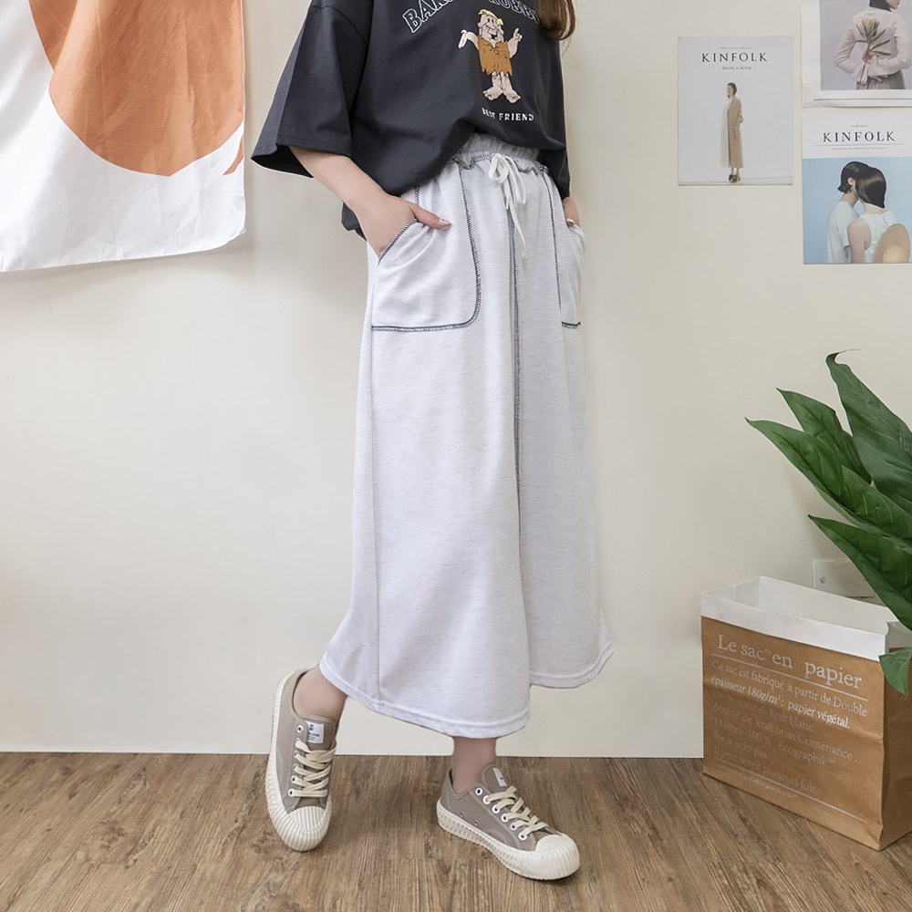 AHUA阿華有事嗎 正韓女裝 車線鬆緊綁帶大口袋休閒長裙【C2379】長裙 實穿 百搭 顯瘦 修身 韓妞必備 基本款