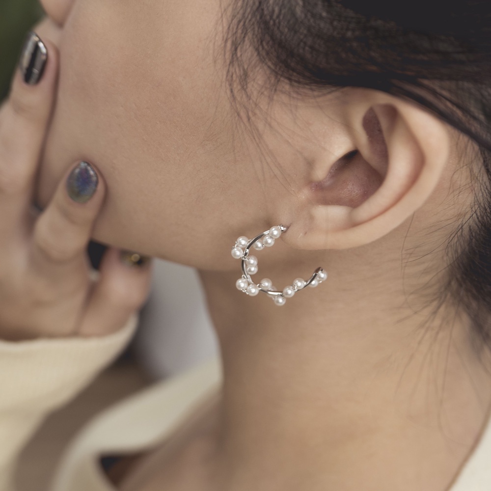 AHUA阿華有事嗎 韓國飾品 滿天星星珍珠C圈耳環【A0204】正韓 浪漫 垂墜 氣質 珠珠可愛 韓妞必備 百搭 基本款