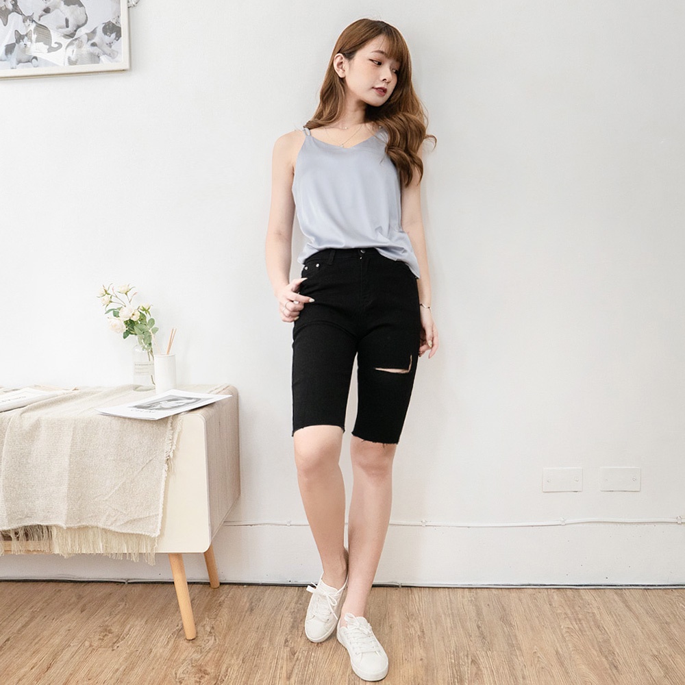 AHUA阿華有事嗎 韓系女裝 顯瘦割破牛仔五分褲【C2476】簡約 修身 刷破 百搭 基本款 短褲 牛仔褲 韓妞必備