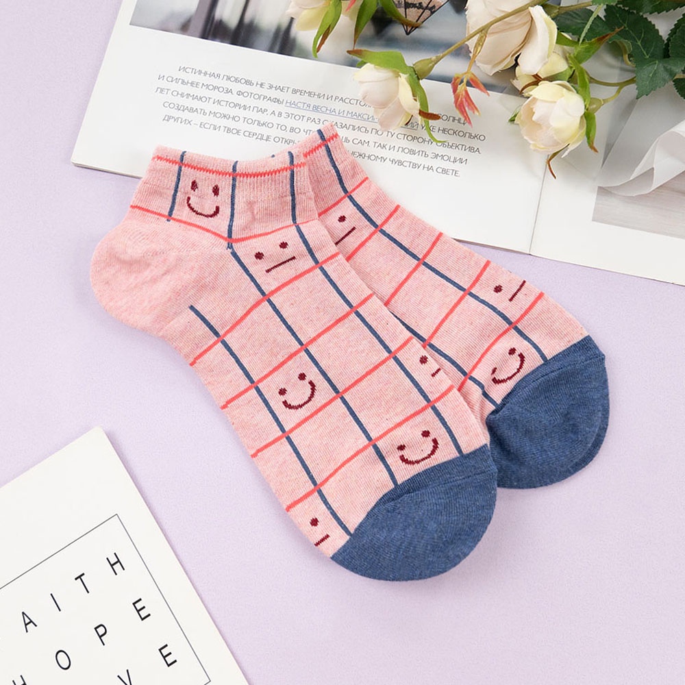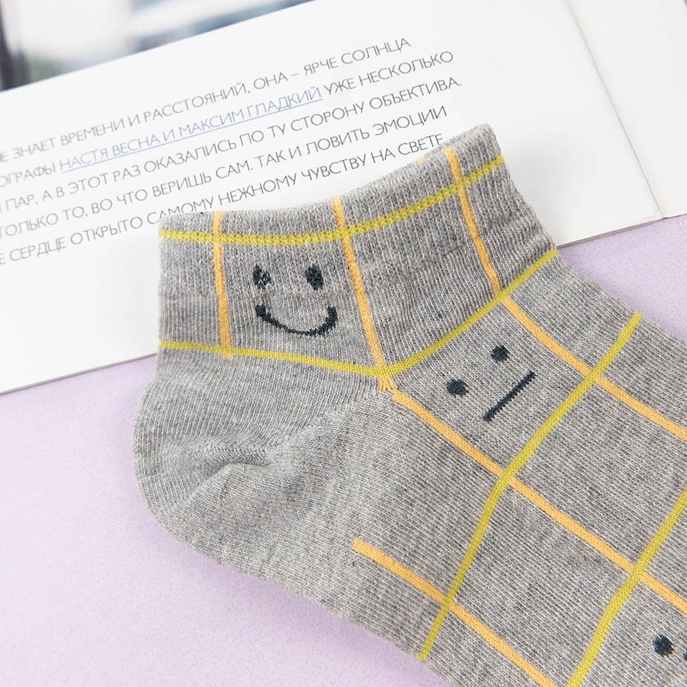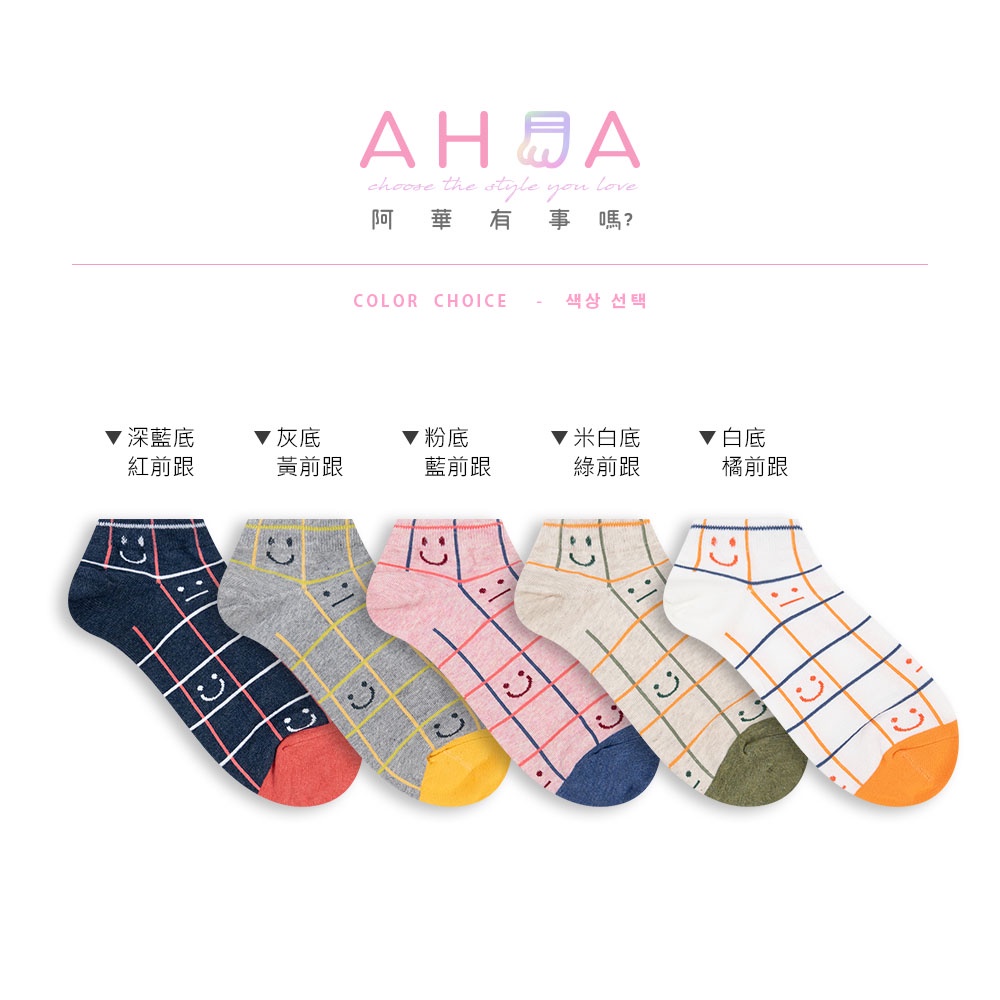 AHUA阿華有事嗎 韓國襪子 雙色格紋表情短襪【K1465】少女襪 韓妞必備中筒襪 百搭純棉襪