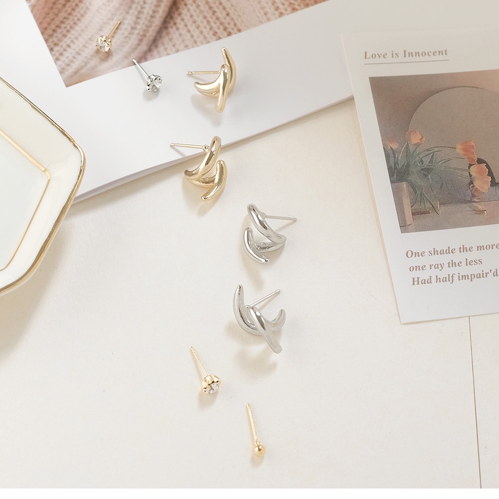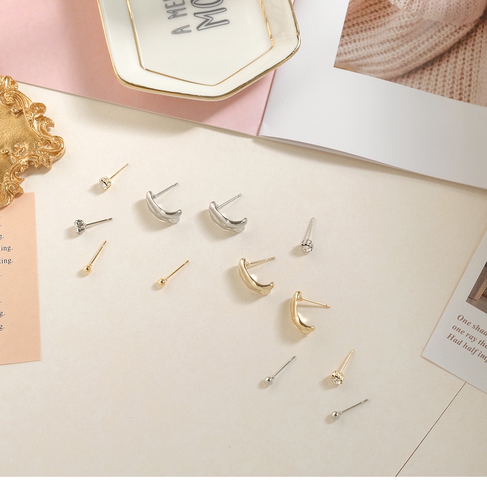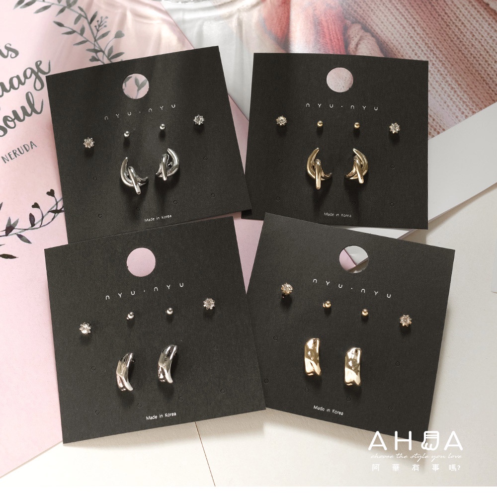 AHUA阿華有事嗎 韓國飾品 金屬幾何抽象耳環6入組【A0846】個性 簡約 單鑽 耳針 耳環 韓妞必備 百搭 基本款