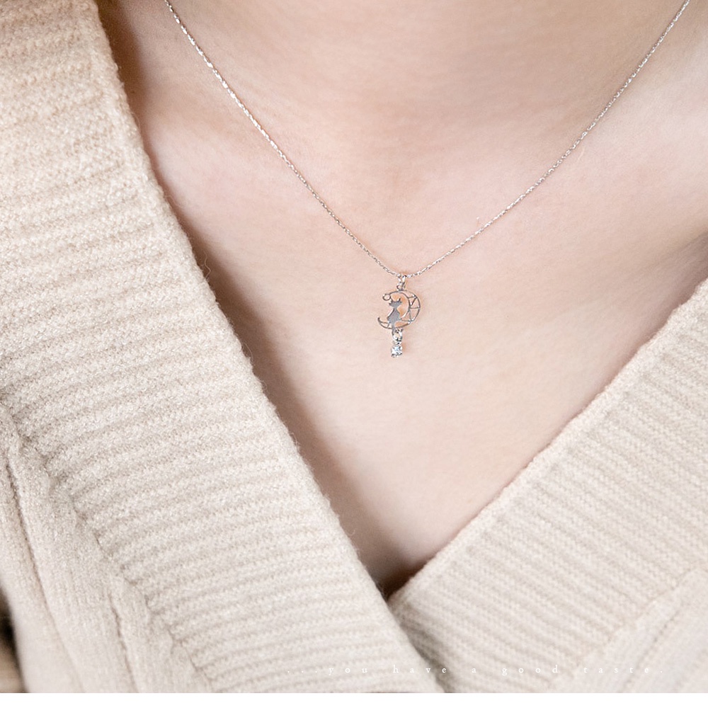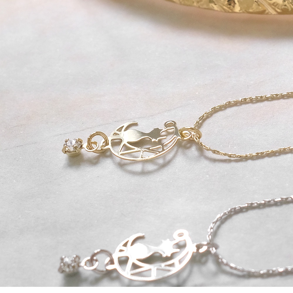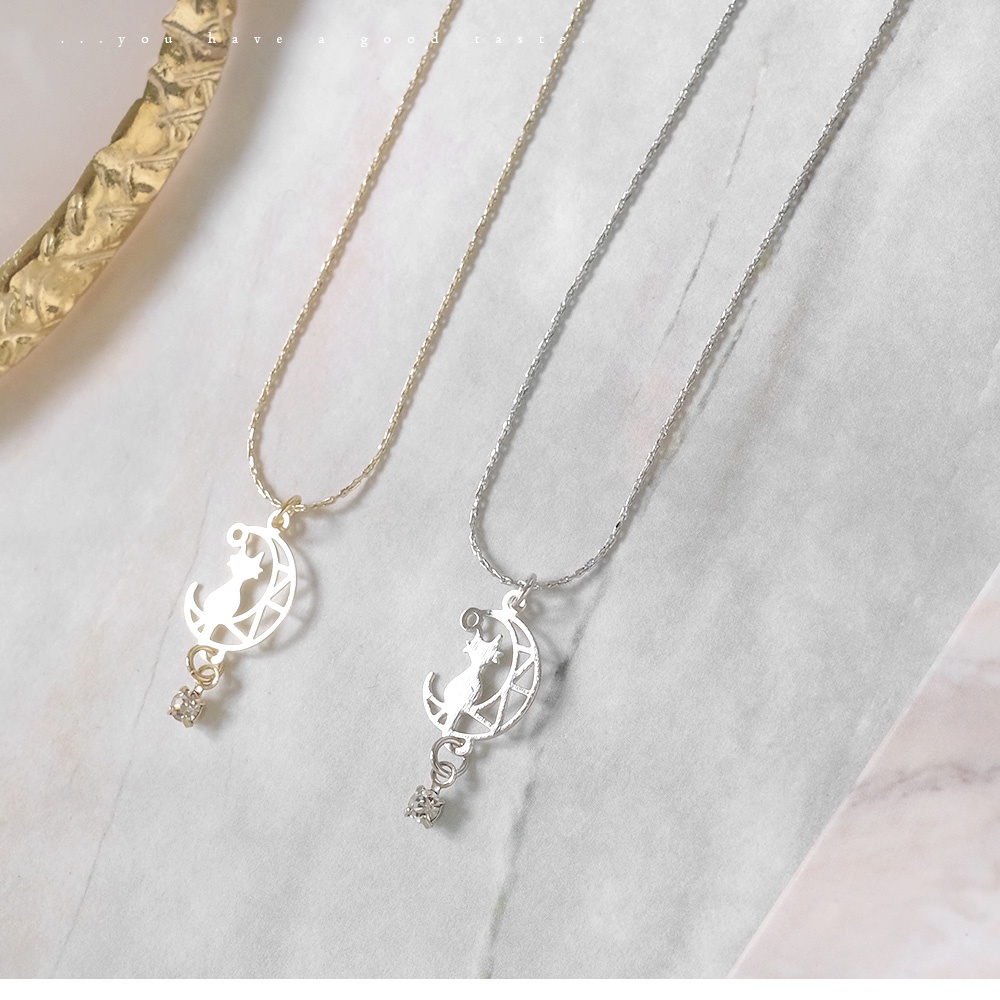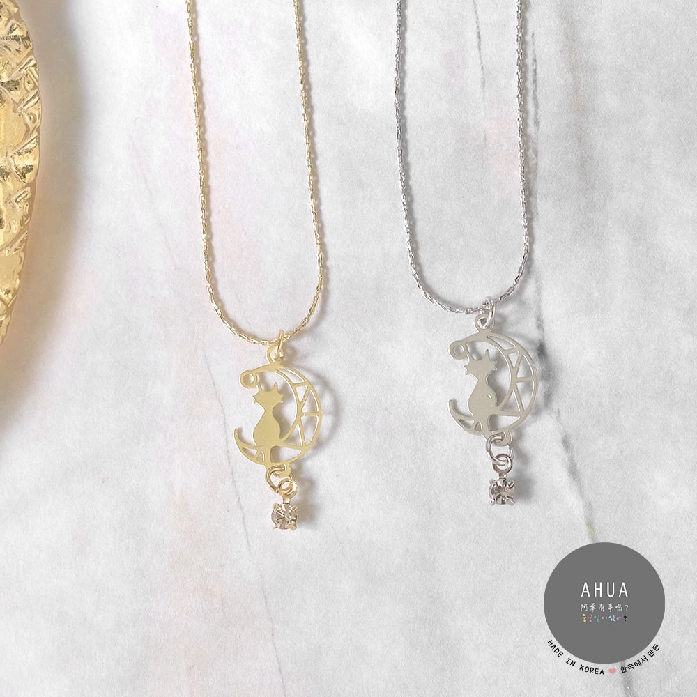 AHUA阿華有事嗎 韓國飾品 月亮與貓鑲鑽短項鍊【A0547】正韓 浪漫 水鑽 時尚 簡約 韓妞必備 百搭 基本款 頸鍊