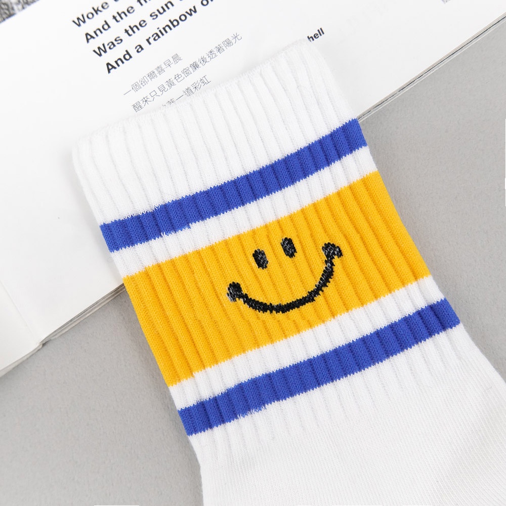 AUHA阿華有事嗎 韓國襪子 拼色微笑條紋純色中筒襪【K1419】百搭 可愛 中筒襪 女襪 百搭純棉襪