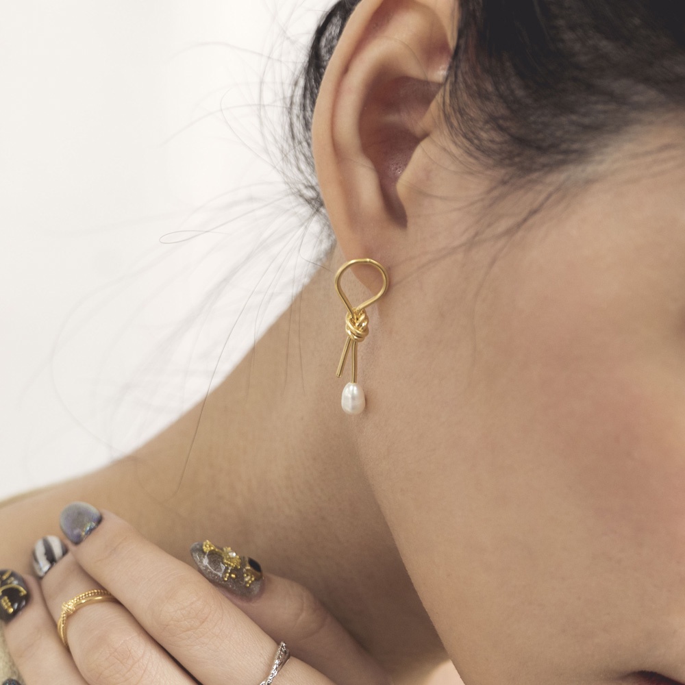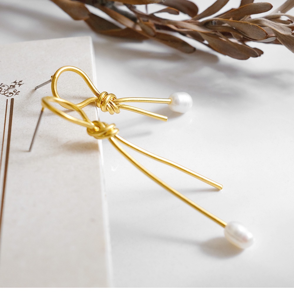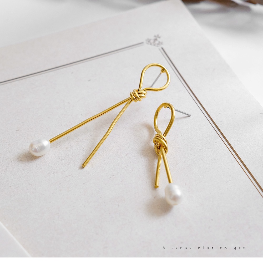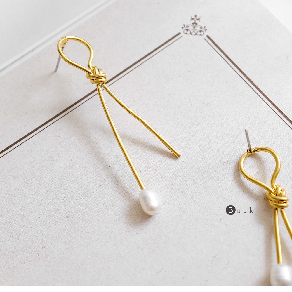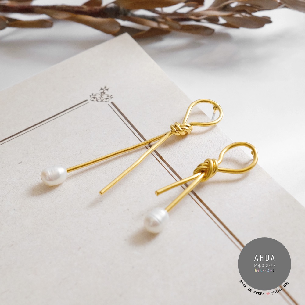 AHUA阿華有事嗎 韓國飾品 珍珠點綴幸運結耳環【A0205】正韓 浪漫 時尚 簡約 垂墜 韓妞必備 百搭 基本款 耳針