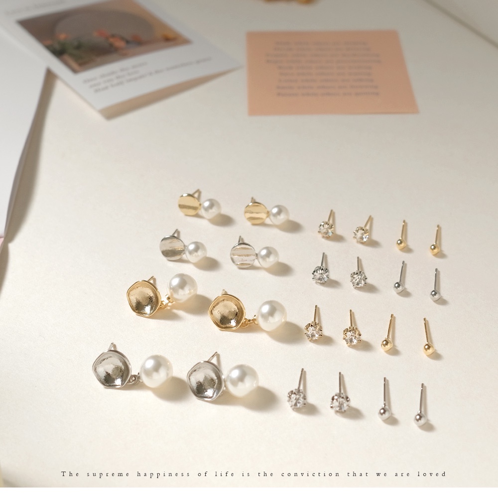 AHUA阿華有事嗎 韓國飾品 聖光垂墜珍珠耳環6入組【A0844】簡約 時尚 水鑽 單鑽 韓妞必備 百搭 基本款 耳針