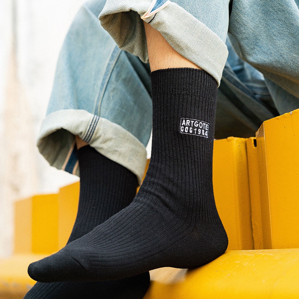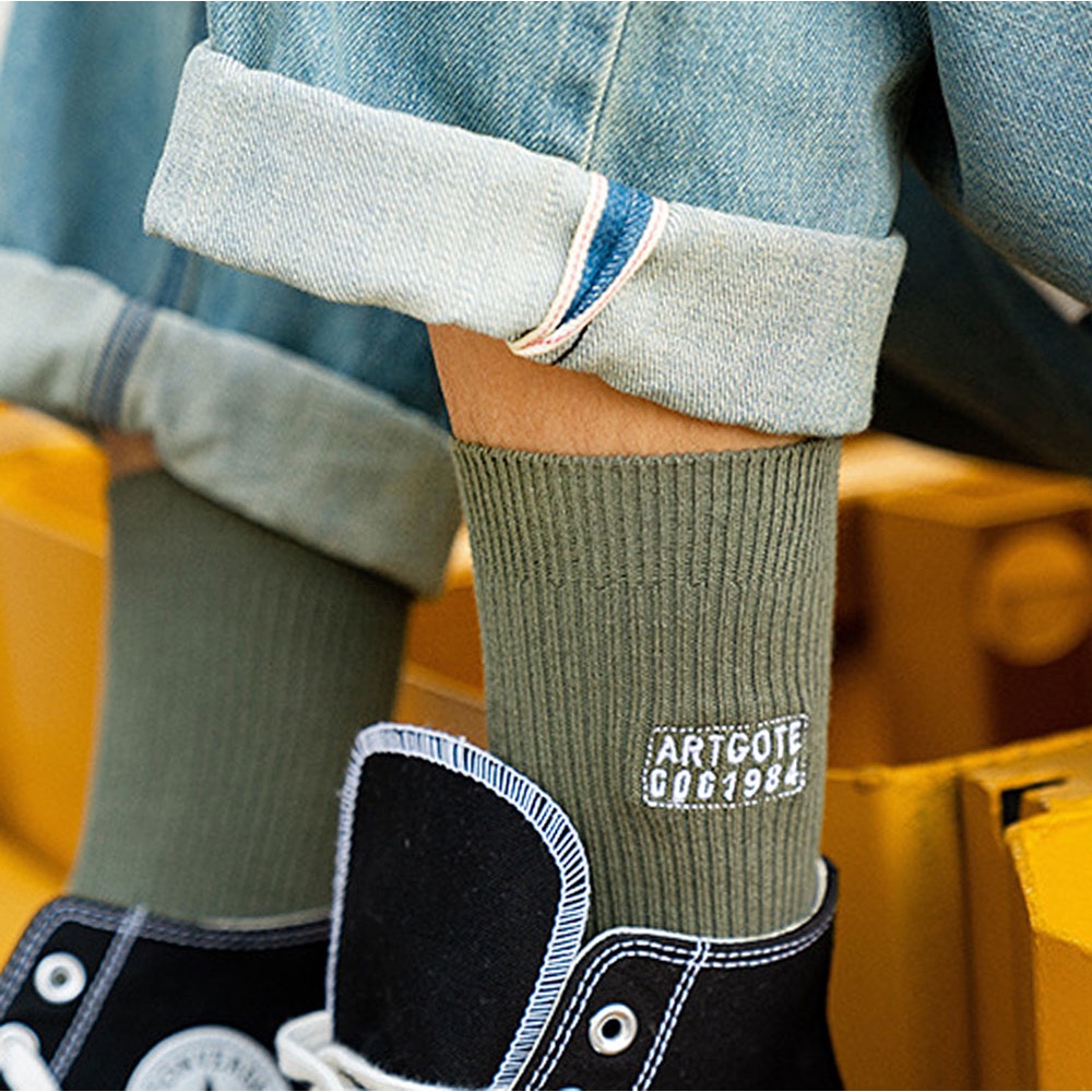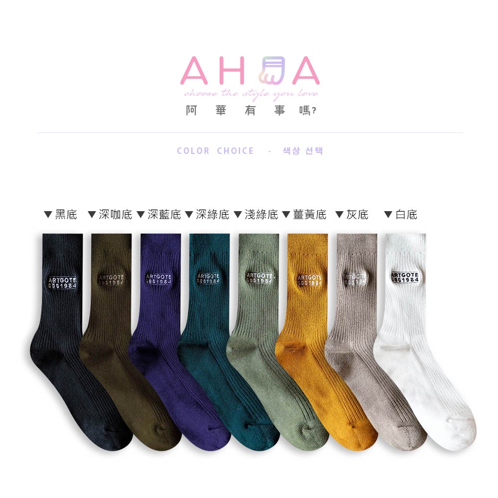 AUHA阿華有事嗎 日系襪子 字母刺繡純色男生中筒襪 男襪【S0416】純色 中筒襪 男襪 百搭純棉襪