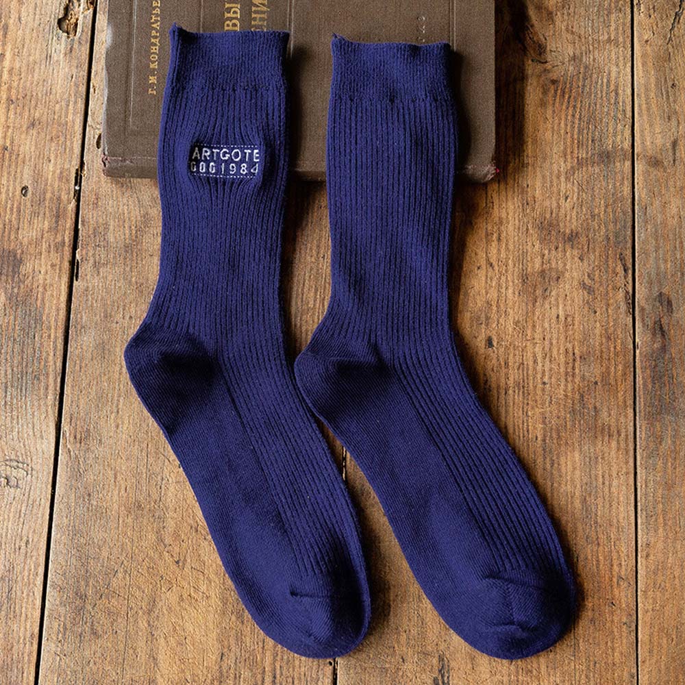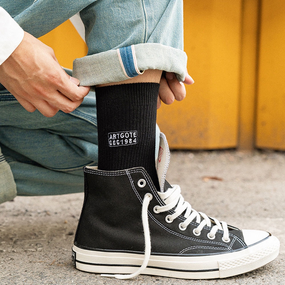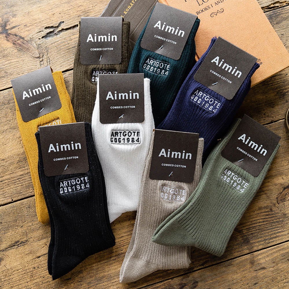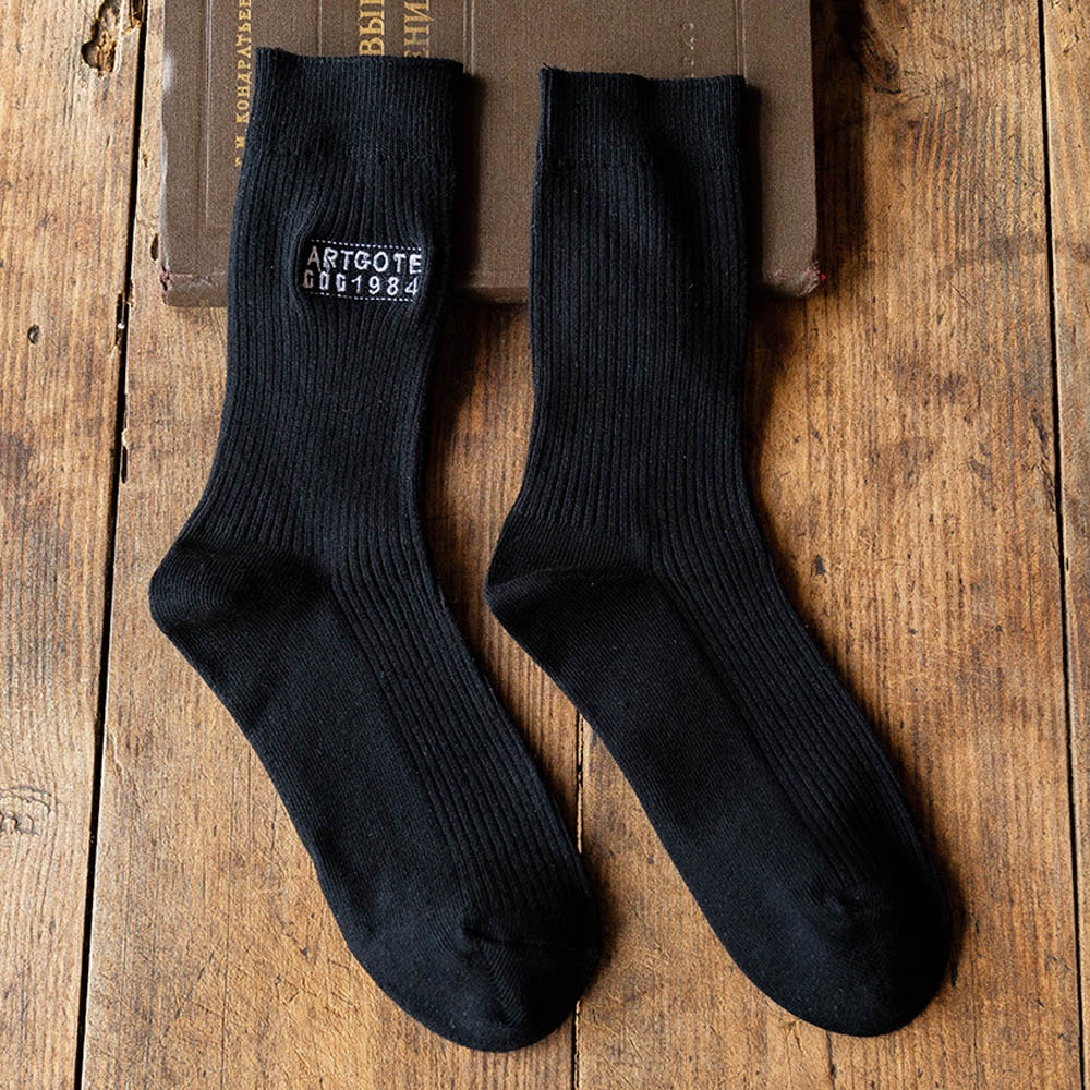 AUHA阿華有事嗎 日系襪子 字母刺繡純色男生中筒襪 男襪【S0416】純色 中筒襪 男襪 百搭純棉襪