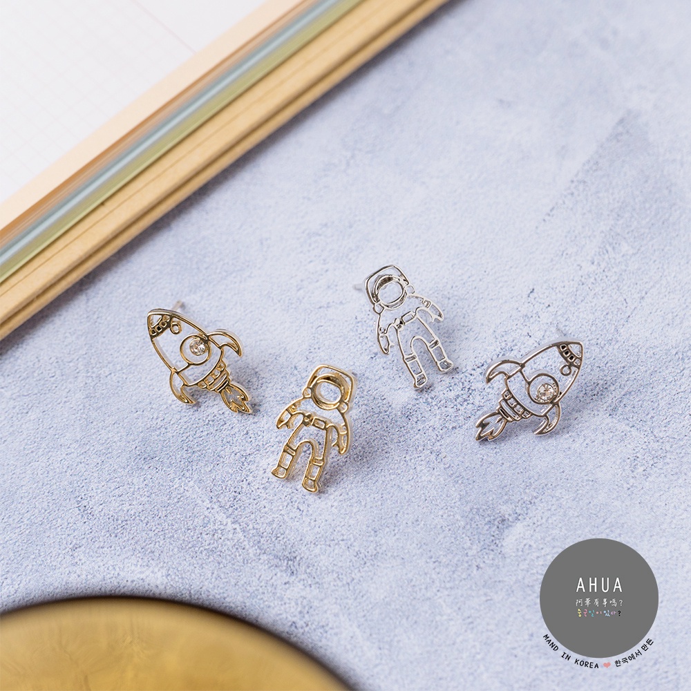 AHUA阿華有事嗎 韓國飾品 簡約飛船與太空人耳環【A0019】正韓 鏤空 可愛 時尚 簡約 韓妞必備 百搭 基本款耳針