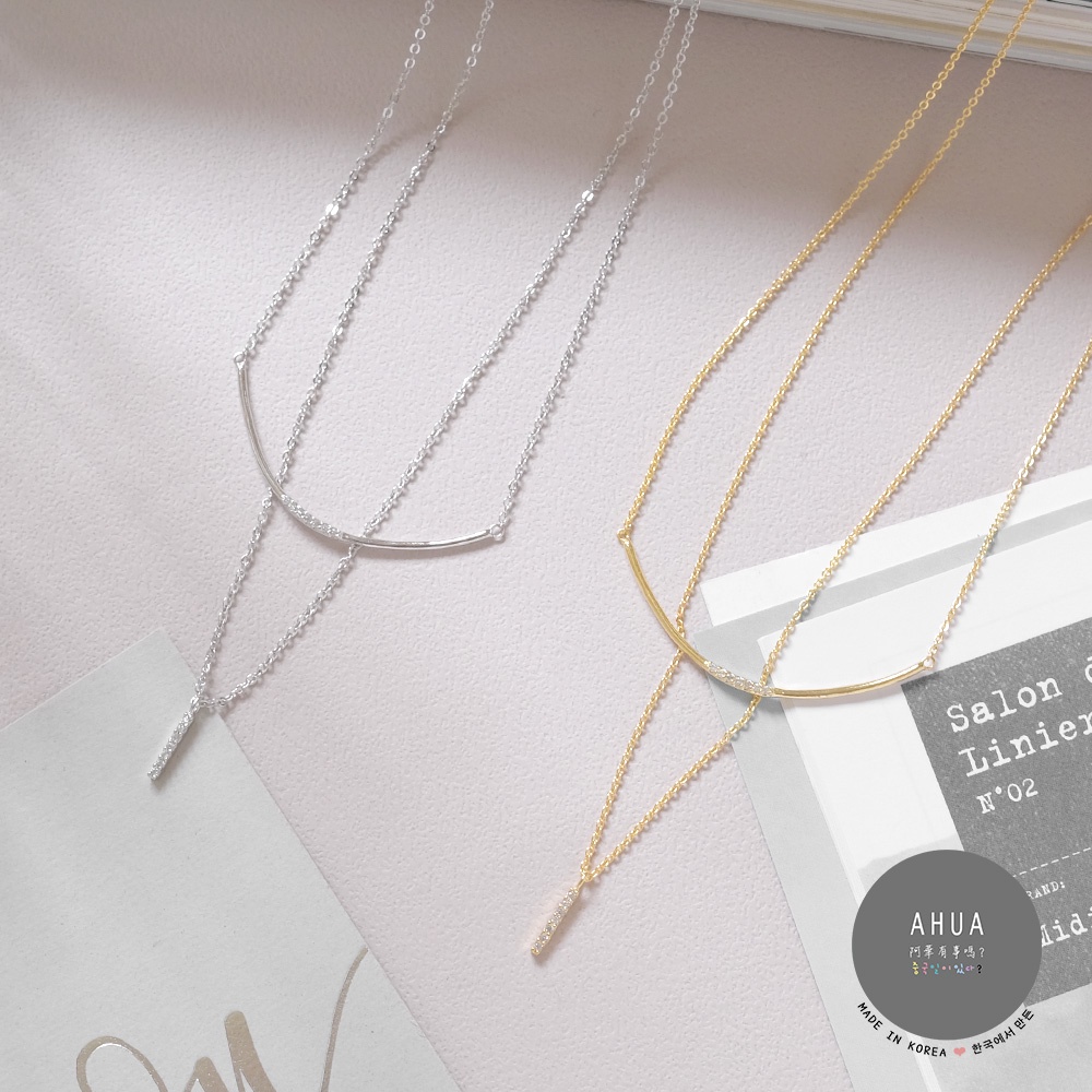 AHUA阿華有事嗎 韓國飾品 耀眼微笑圓弧短項鍊【A0557】正韓 雙層 水鑽 鑲鑽 頸鍊 簡約 韓妞必備 百搭 基本款