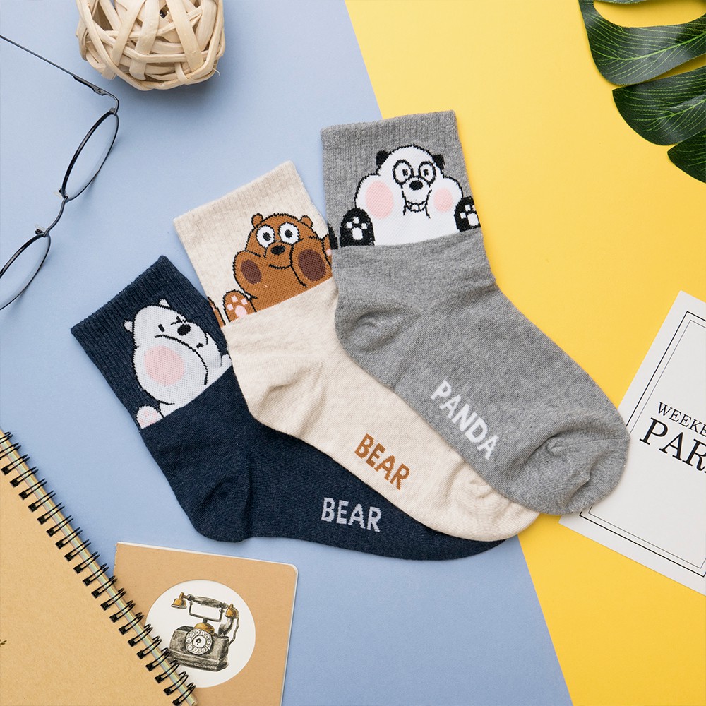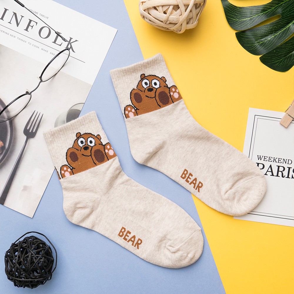 AHUA阿華有事嗎 韓國襪子 熊熊遇見你搞怪表情中筒襪 K0413 正韓熱賣款 韓妞必備長襪 百搭純棉素色襪子