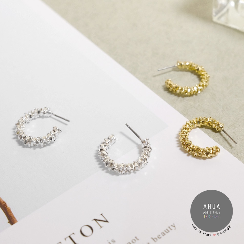 AHUA阿華有事嗎 韓國飾品 華麗金蔥C型耳環【A0236】正韓 C圈 時尚 浪漫 簡約 韓妞必備 百搭 基本款 耳針