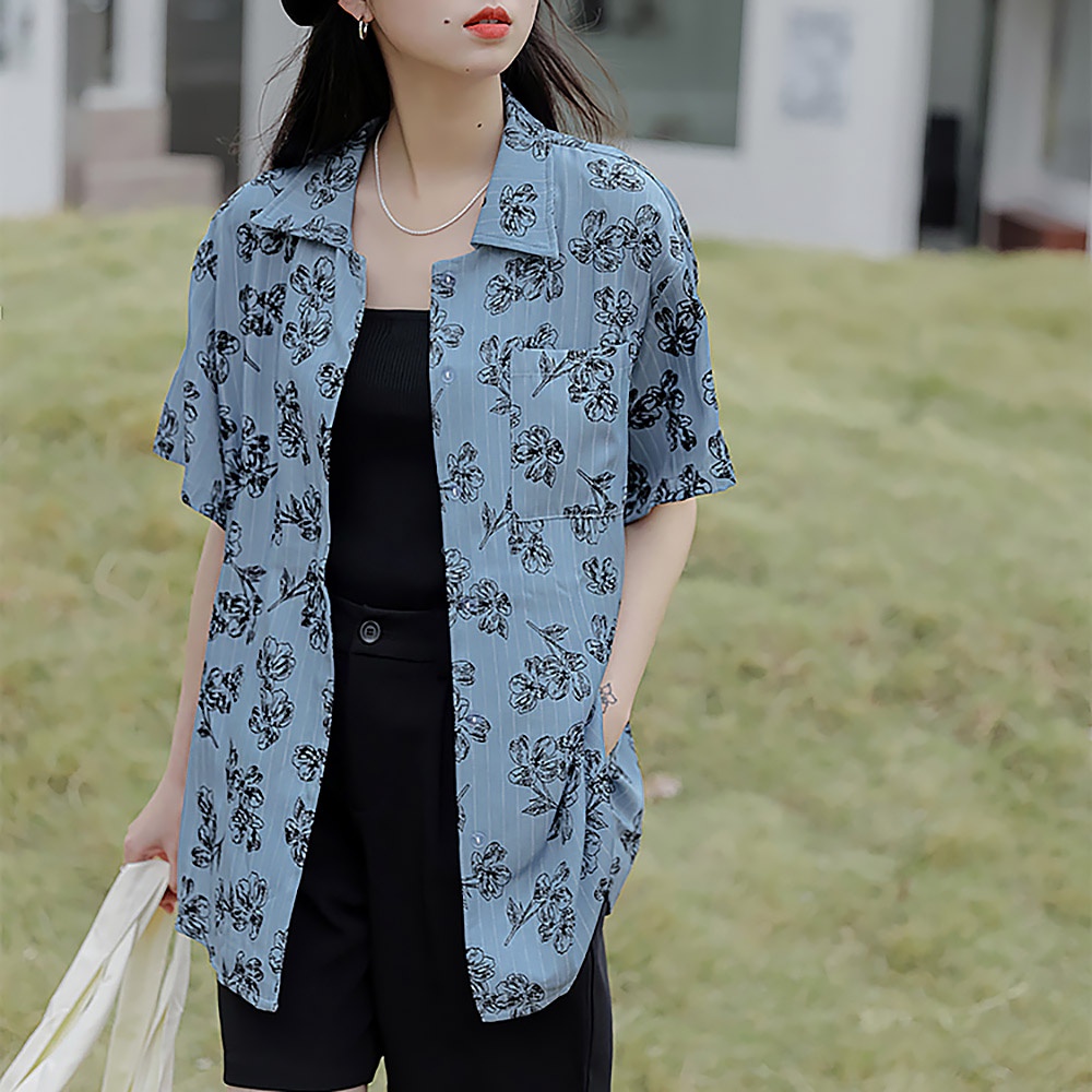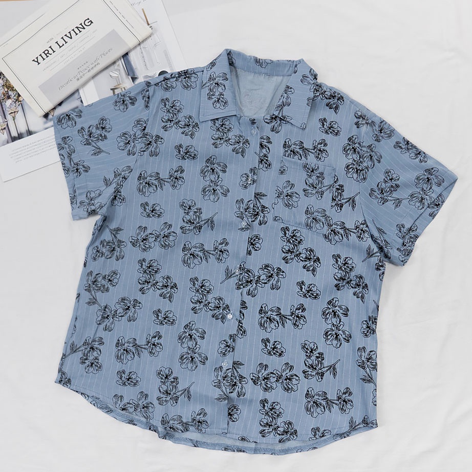 AHUA阿華有事嗎 韓系女裝 復古翻領印花短袖襯衫【C2425】個性 花朵 顯瘦 上衣 短袖襯衫 韓妞必備