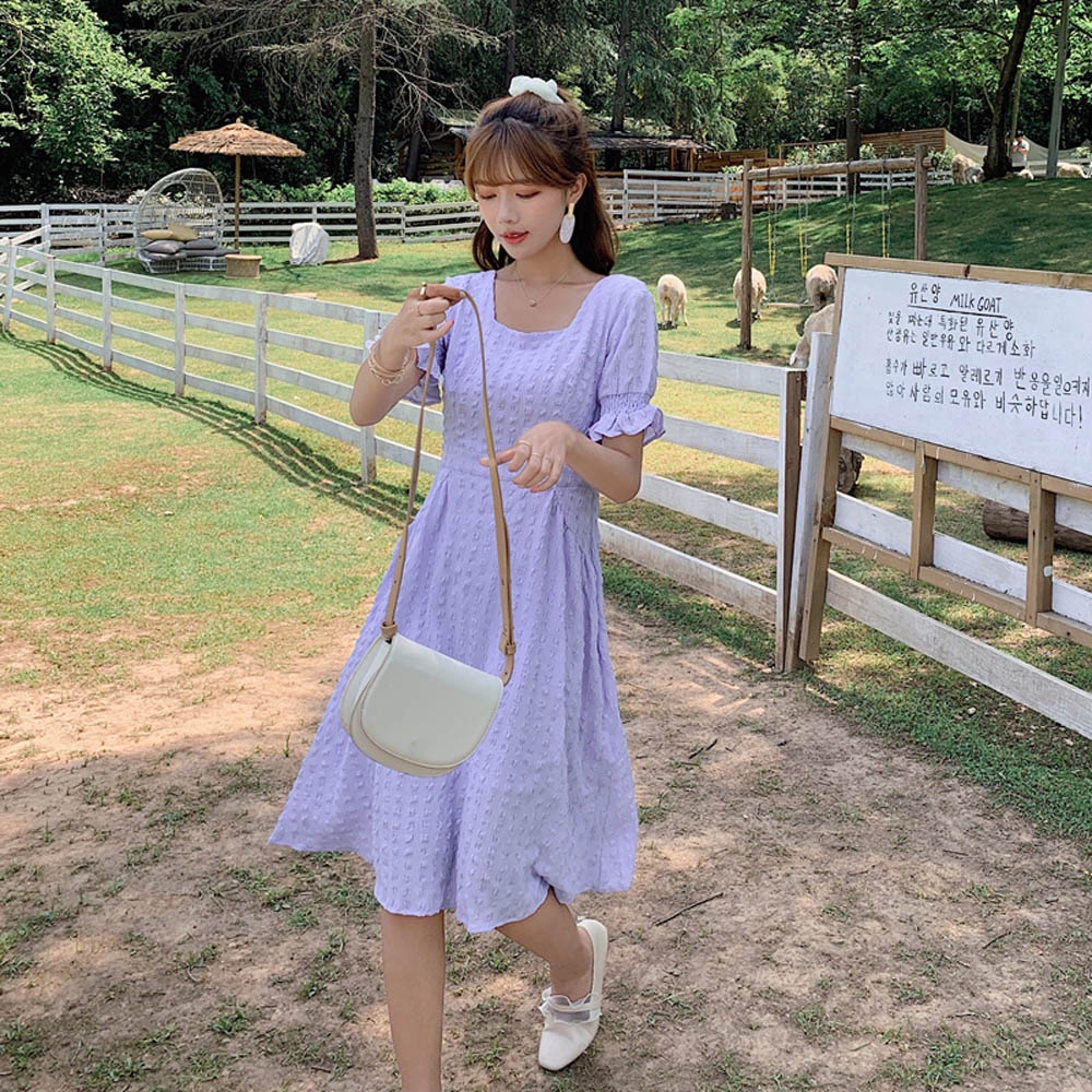 AHUA阿華有事嗎 韓系女裝 格子荷葉袖小方領洋裝【C2450】連衣裙 可愛 氣質 顯瘦 方格 百搭 韓妞必備 基本款