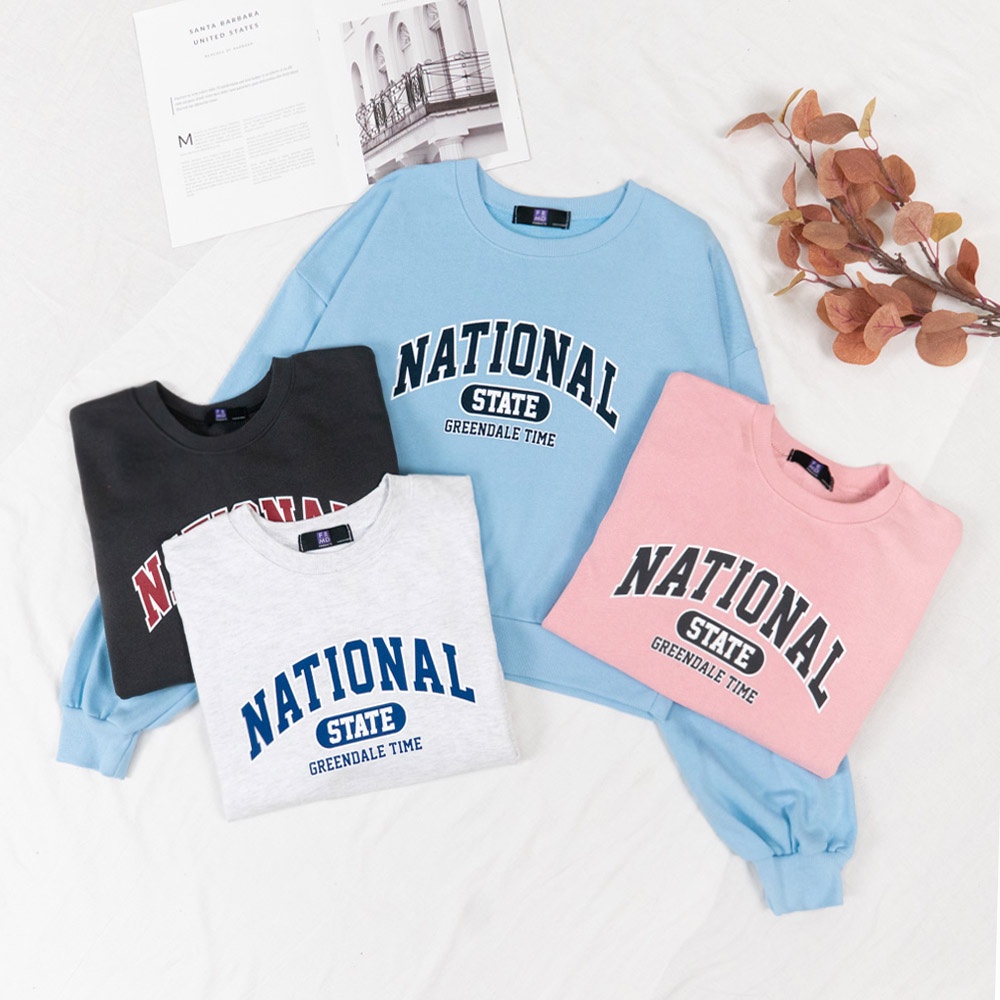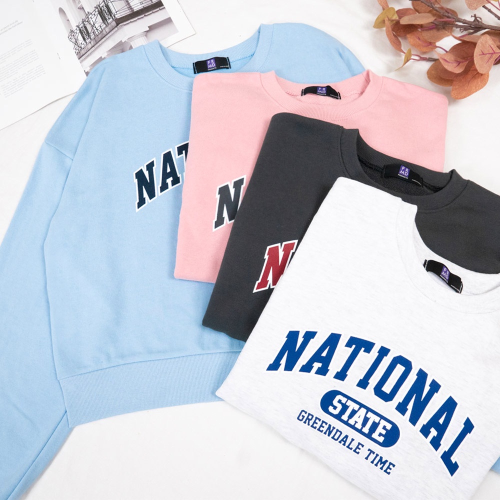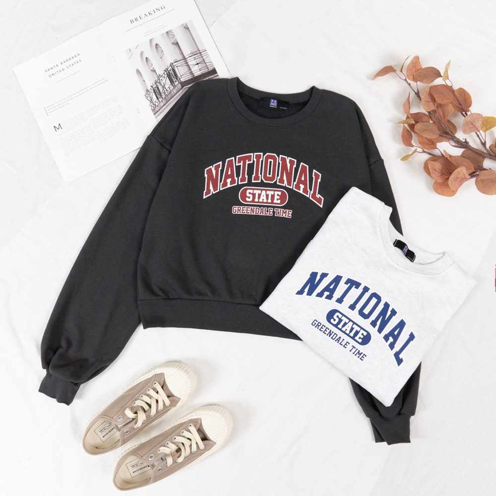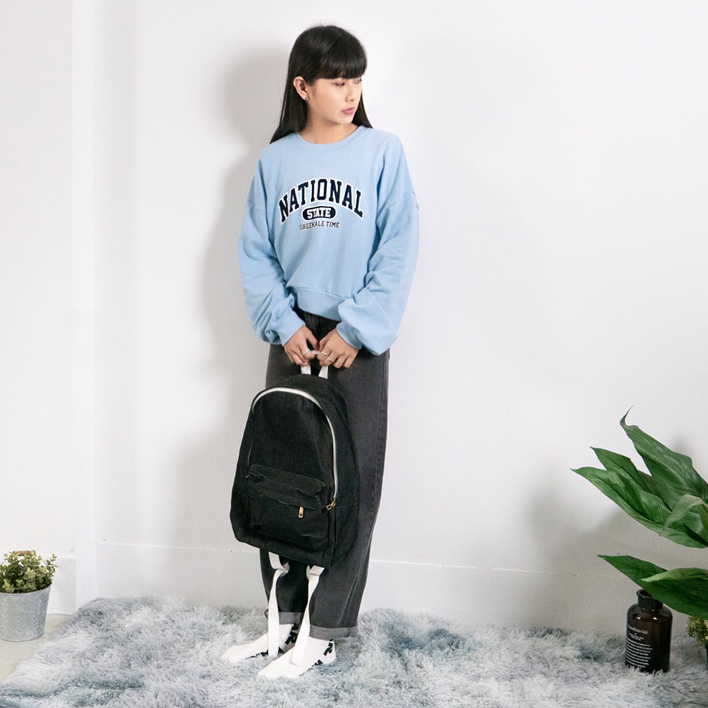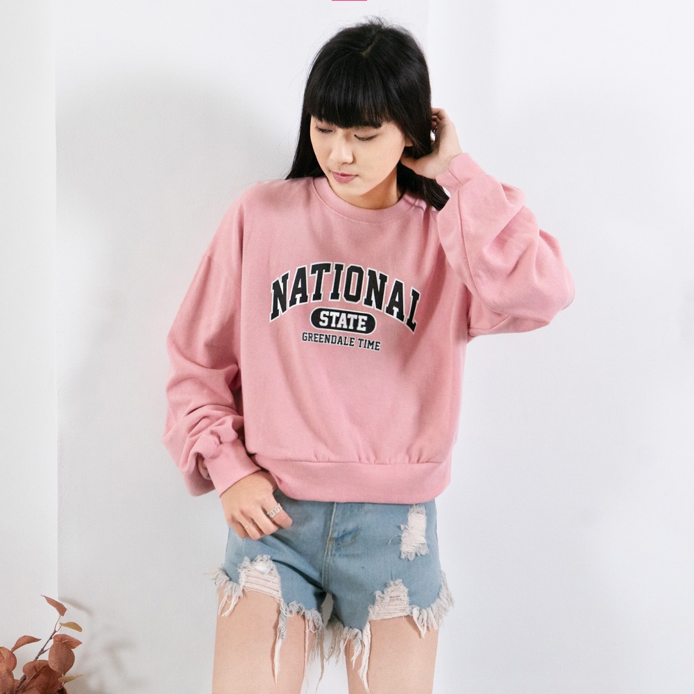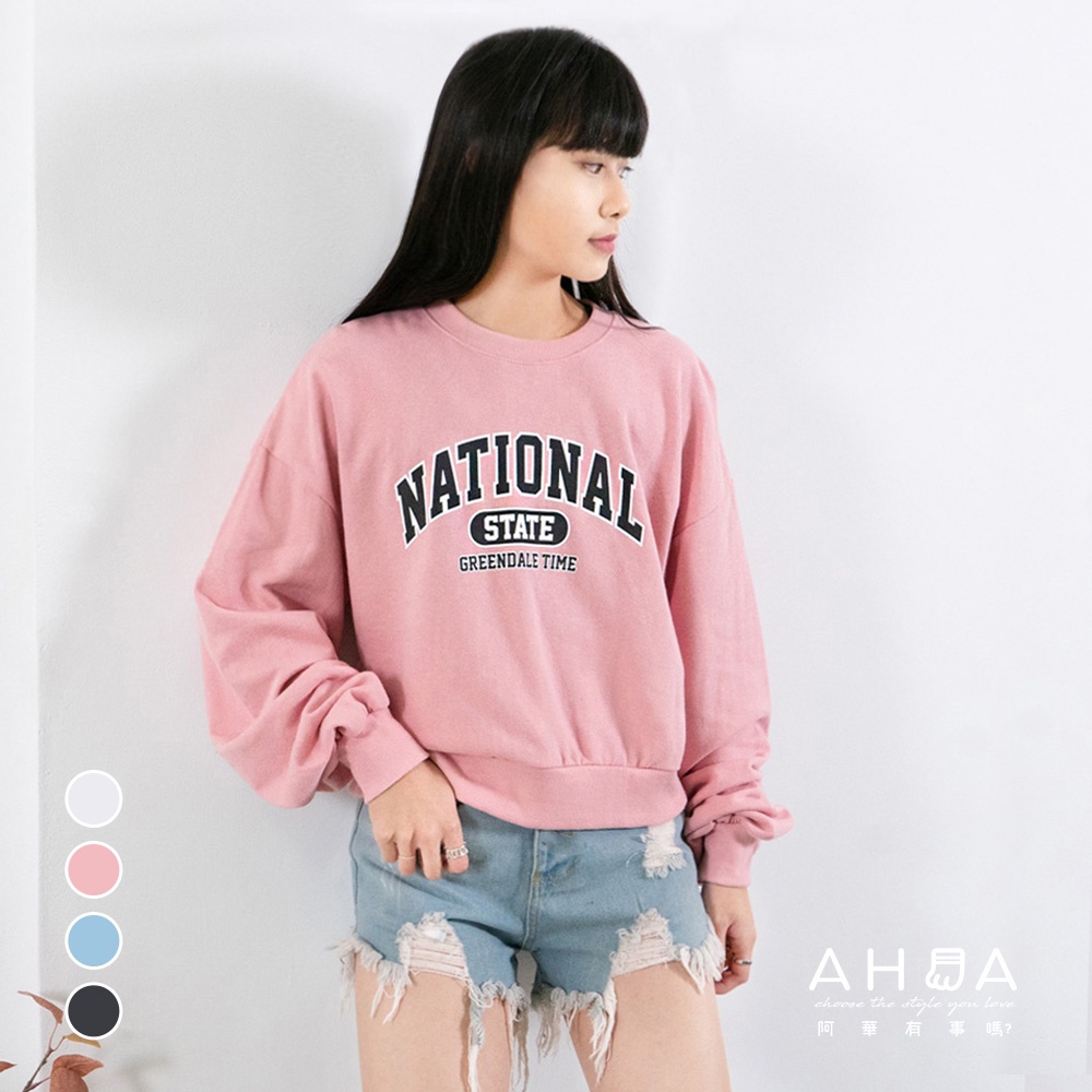 AUHA阿華有事嗎 正韓女裝 美式印花字母長袖大學T【C2308】休閒 個性 短版 長袖T恤 韓妞必備 百搭基本款