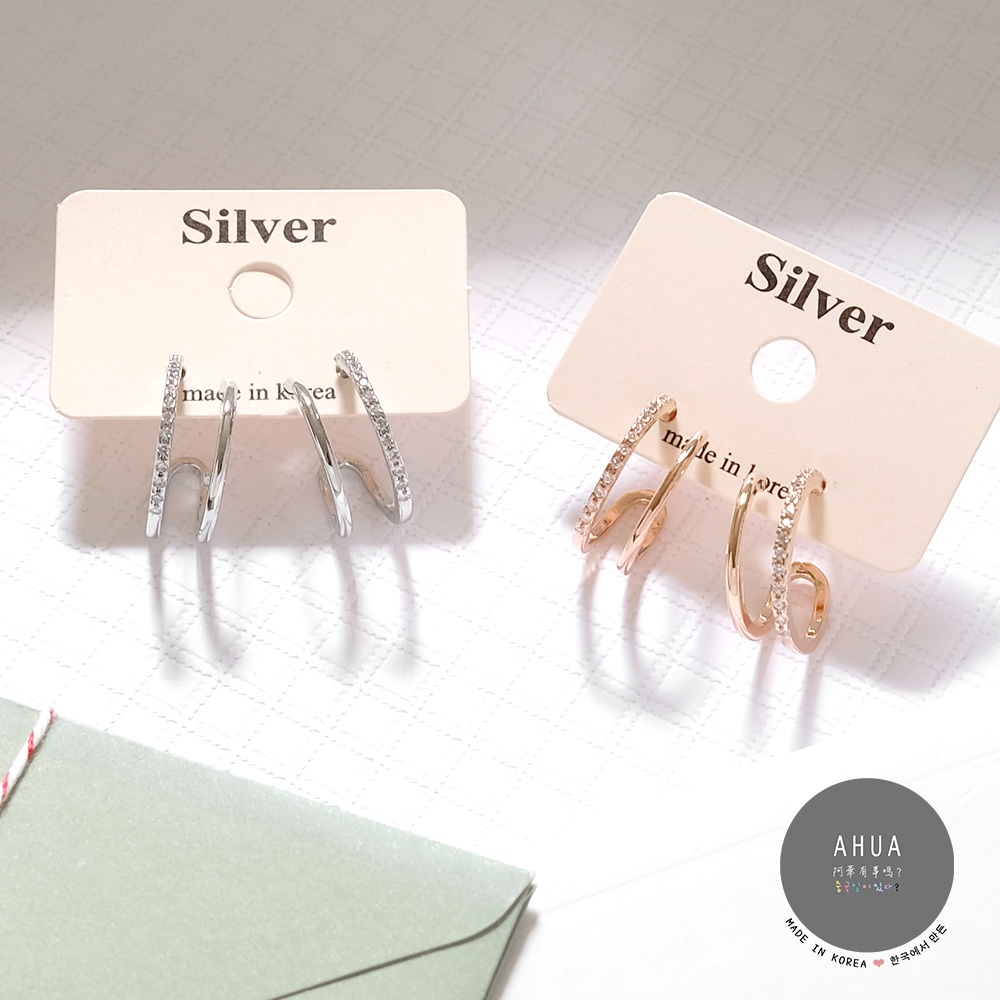 AHUA阿華有事嗎 韓國飾品 優雅雙圈鑲鑽耳環【A0513】正韓 鏤空 幾何 水鑽 時尚 簡約 韓妞必備 百搭 基本款