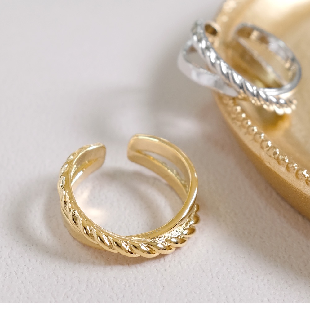 AHUA阿華有事嗎 韓國飾品 時空扭轉雙層交叉戒指【A0368】正韓 幾何 時尚 簡約 韓妞必備 百搭 基本款 開口戒