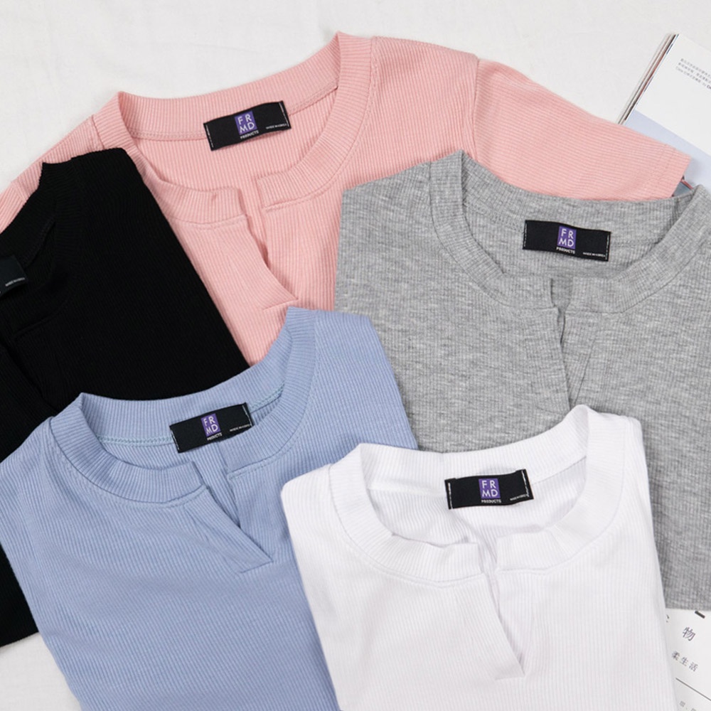 AHUA阿華有事嗎 正韓女裝 小V領素色坑條短袖上衣【C2395】純色 短袖T恤 實穿 休閒 百搭 韓妞必備 基本款