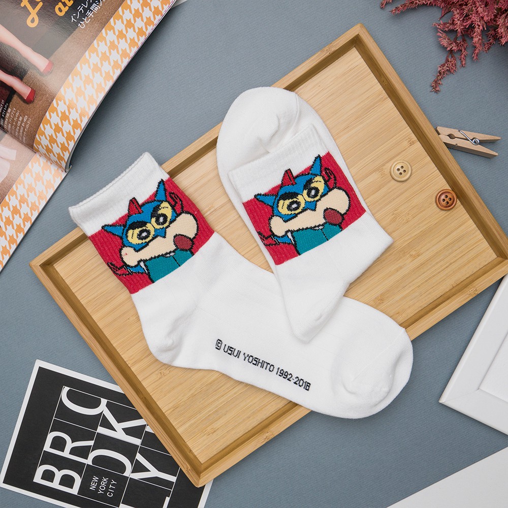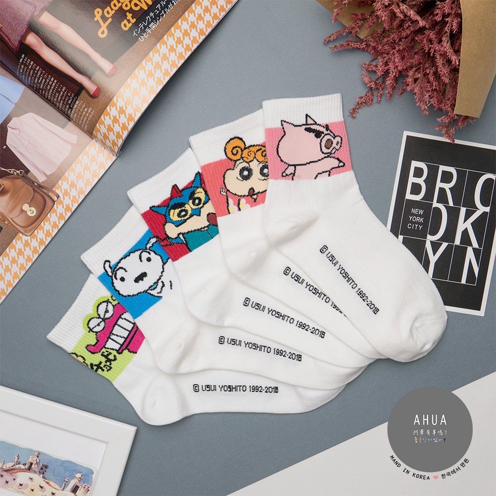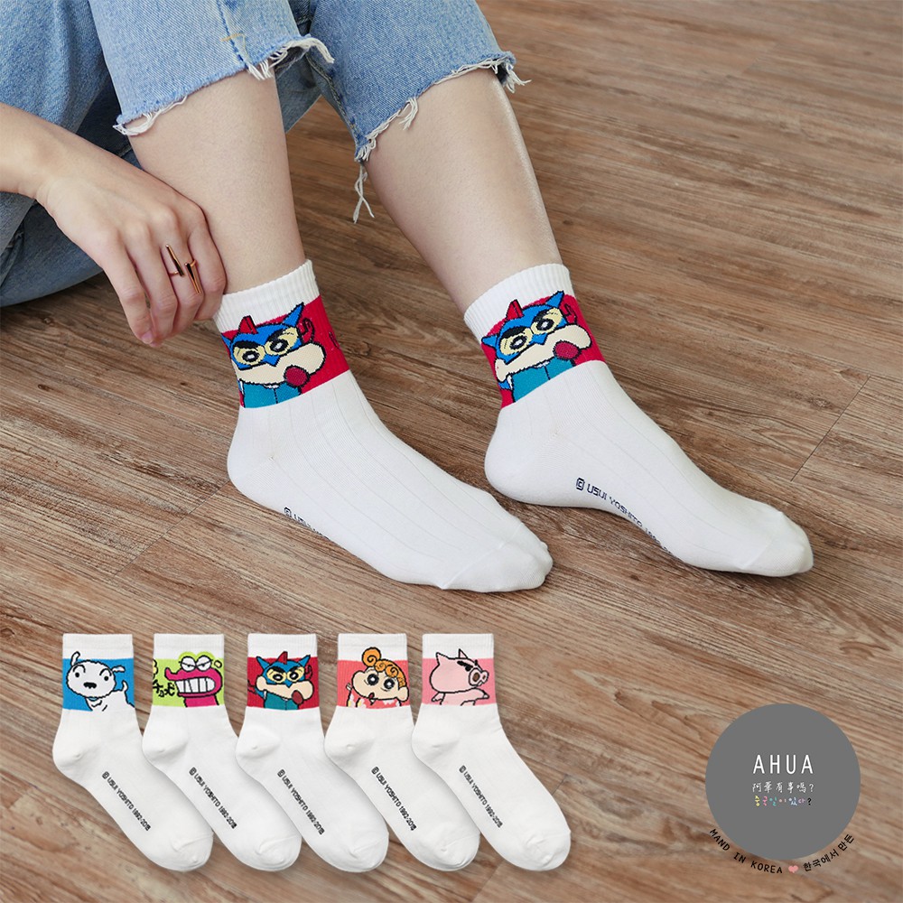 AHUA阿華有事嗎 拼色蠟筆小新中筒襪 韓國襪子 K0442 正韓少女襪 韓妞必備長襪 百搭純棉襪