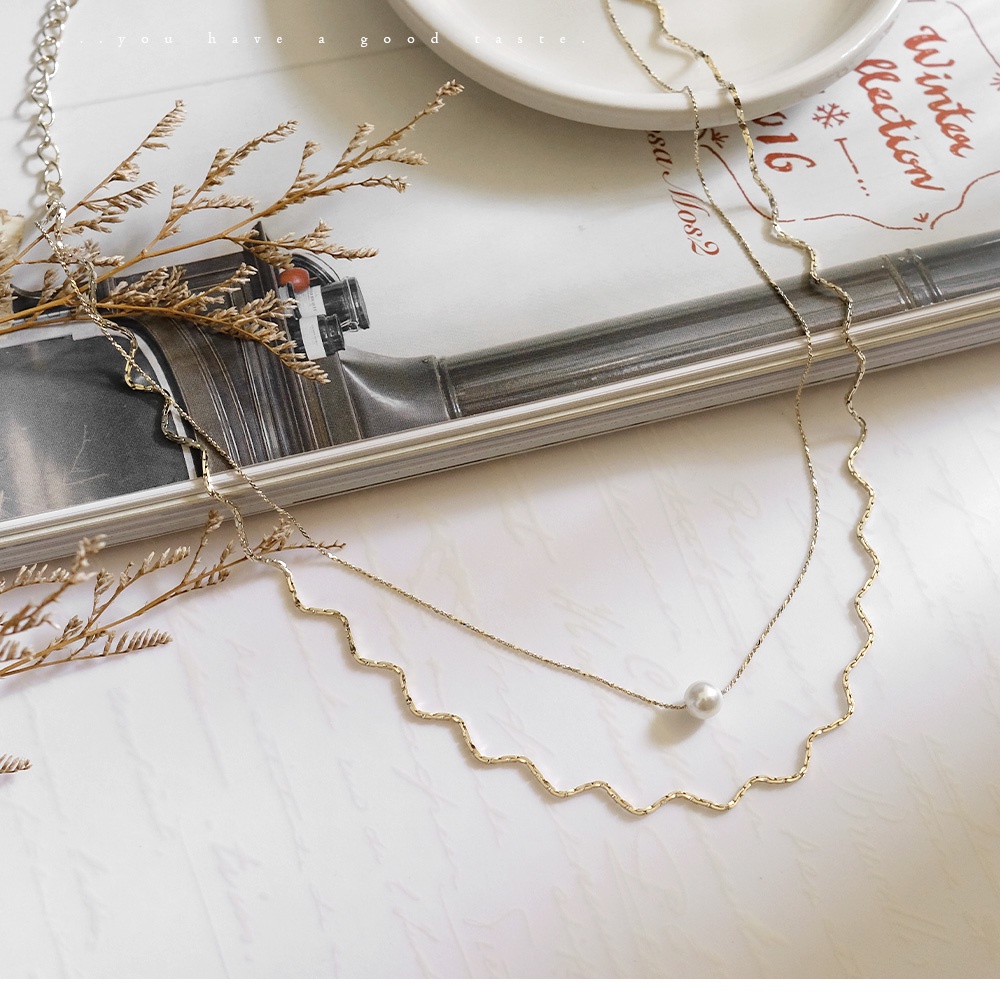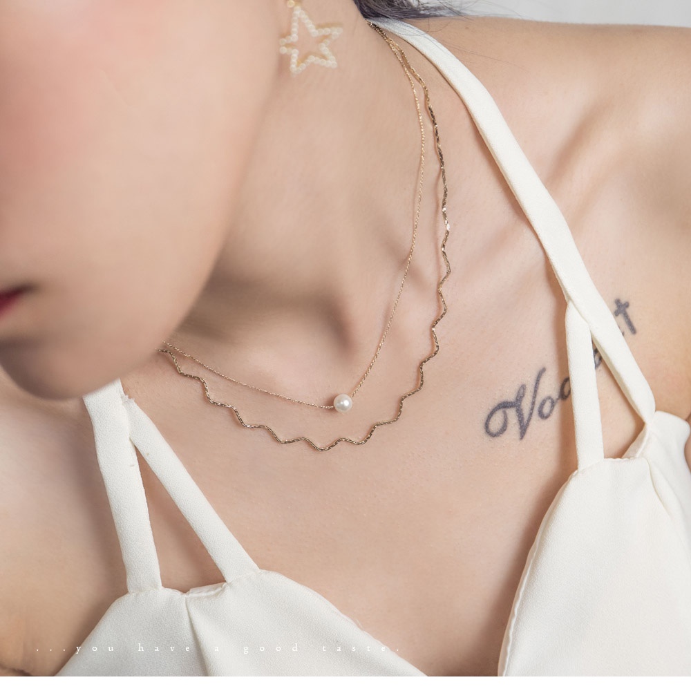 AHUA阿華有事嗎 韓國飾品 優雅曲線珍珠雙層短項鍊【A0259】正韓 短鍊 頸鍊 氣質 韓妞必備 百搭 基本款 項鍊