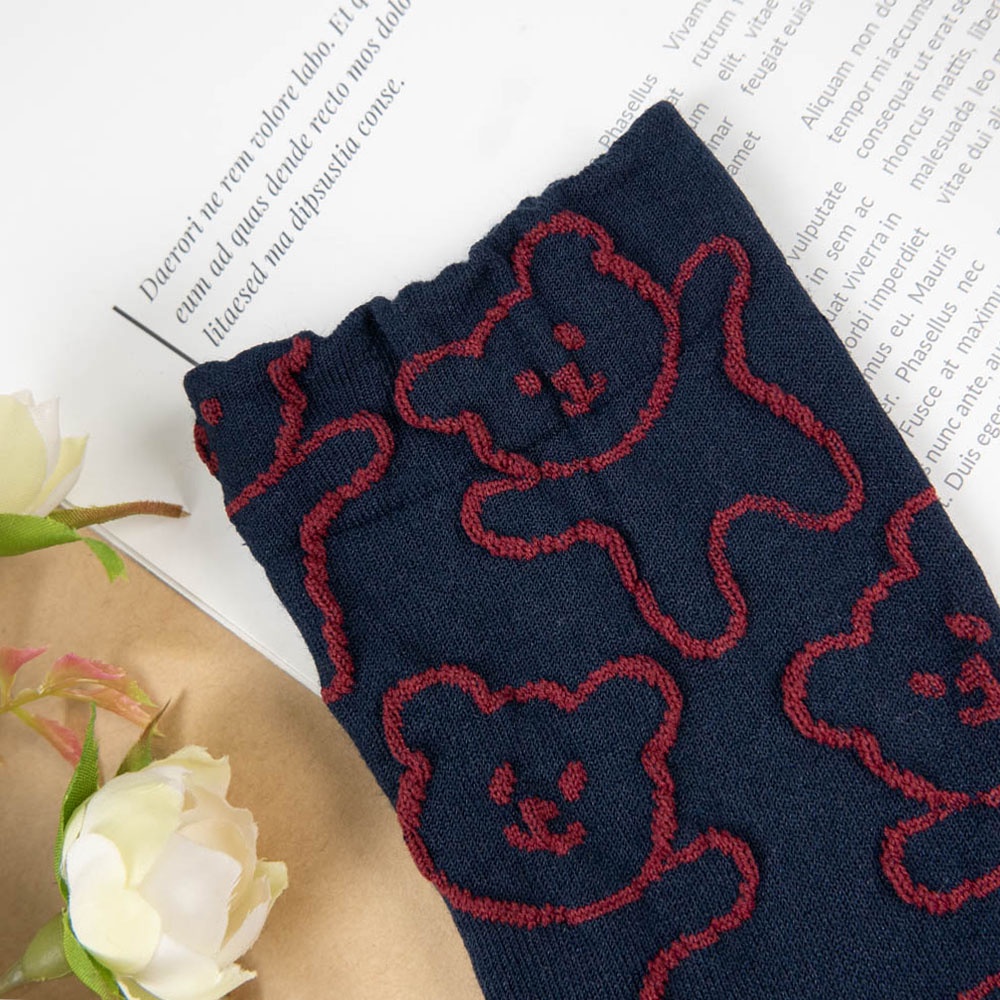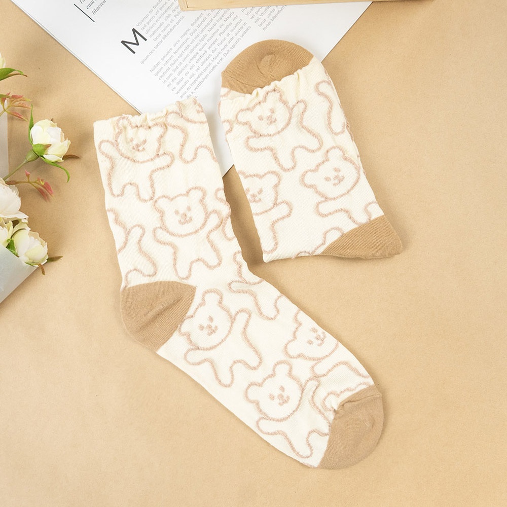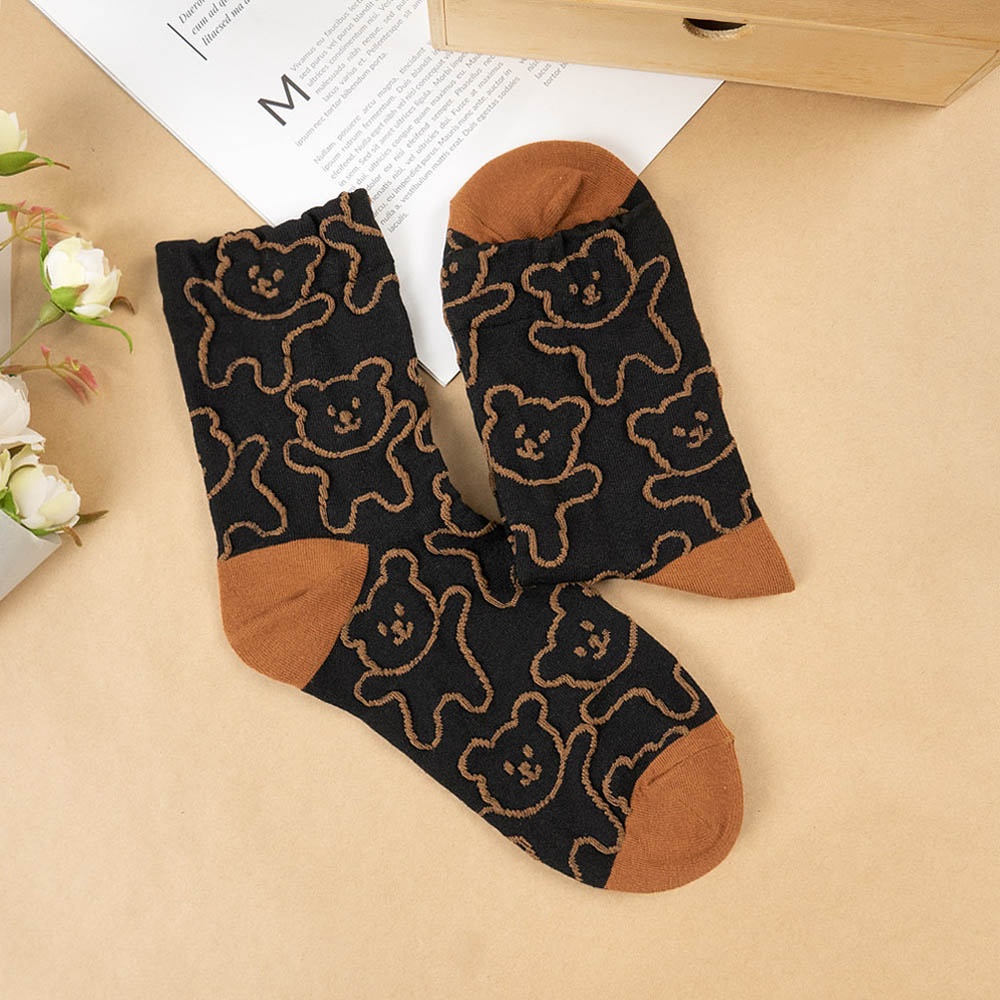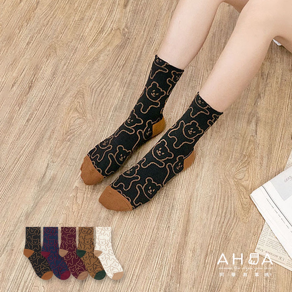 AHUA 韓國襪子 滿版立體熊熊中筒襪【現貨】女襪 女生襪子 熊熊襪子 襪子推薦 百搭純棉襪 K1491 阿華有事嗎