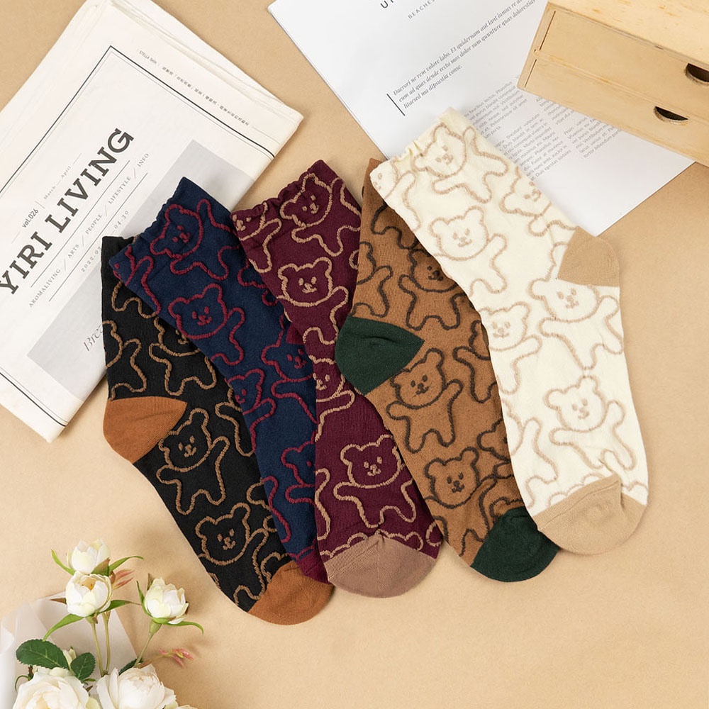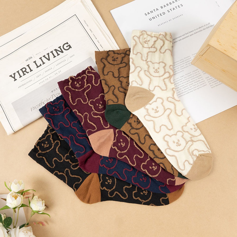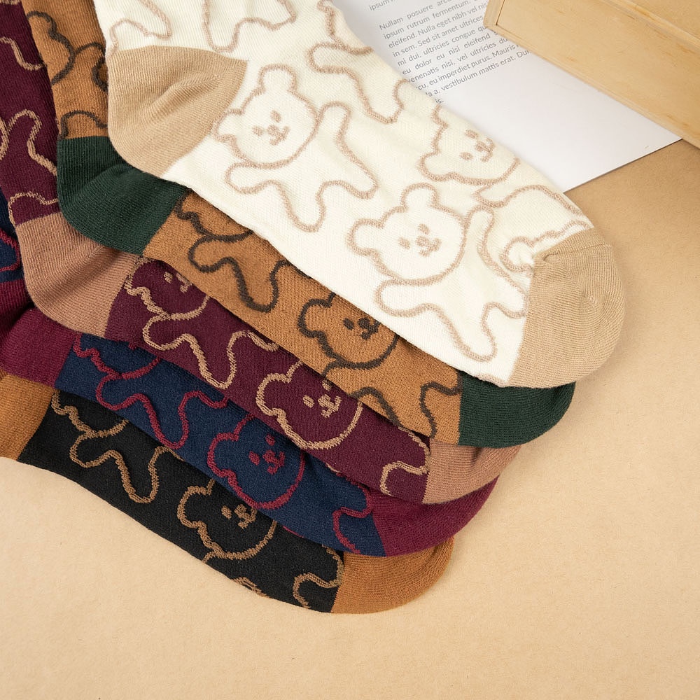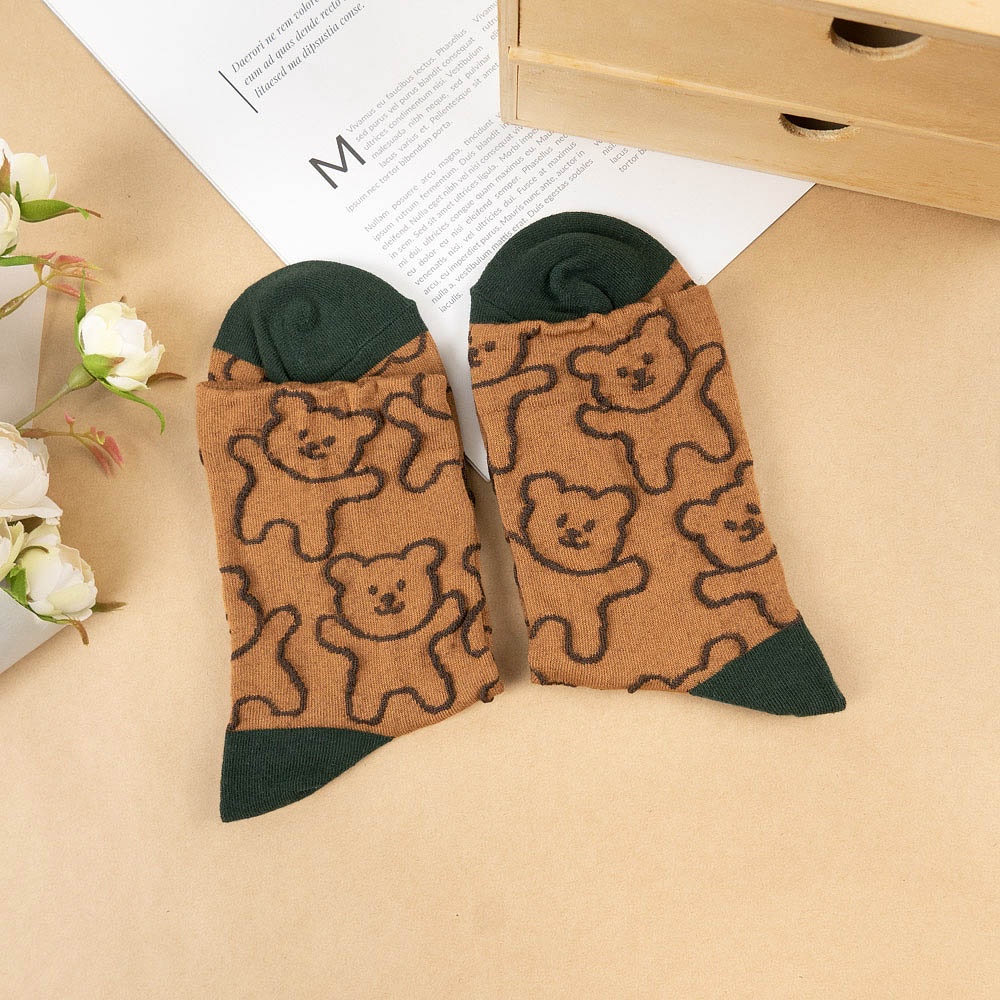 AHUA 韓國襪子 滿版立體熊熊中筒襪【現貨】女襪 女生襪子 熊熊襪子 襪子推薦 百搭純棉襪 K1491 阿華有事嗎