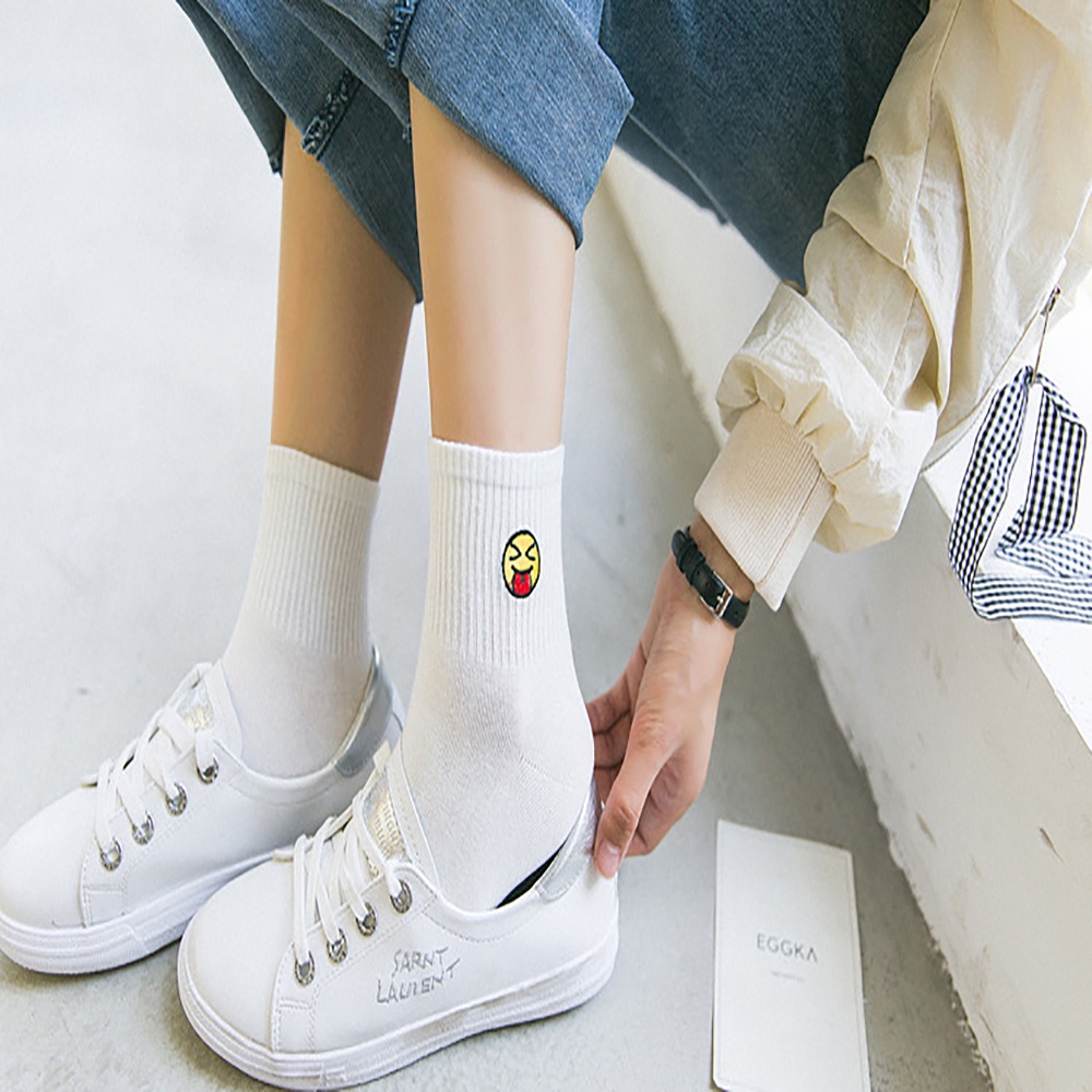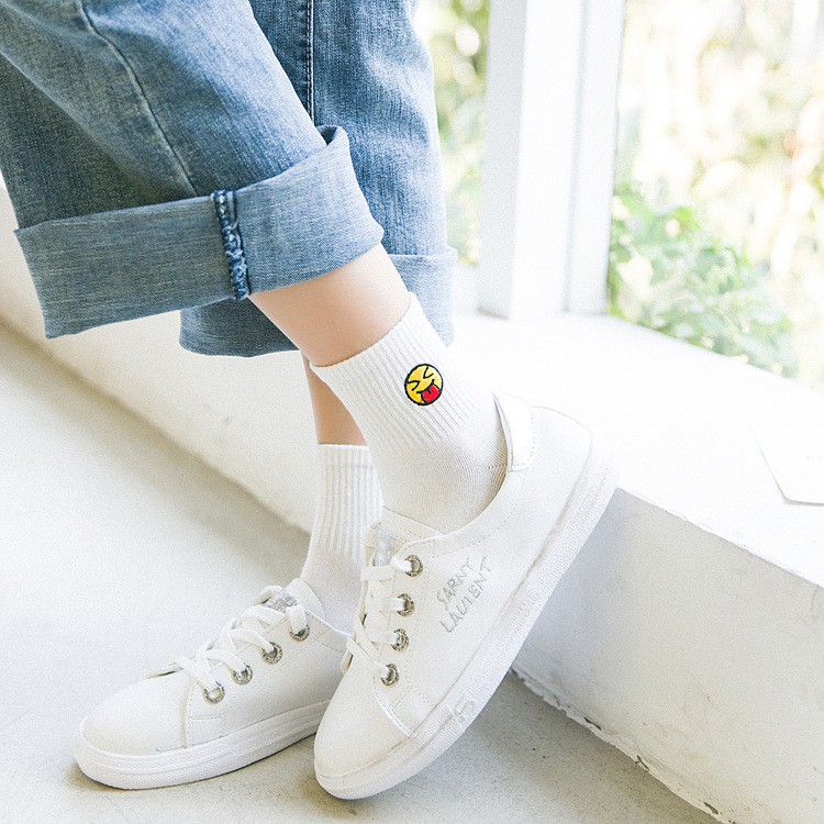AHUA 日系襪子 刺繡小圖純色中筒襪 S0274 白襪 學生襪 純色襪子 襪子推薦 百搭女襪 女生襪子 阿華有事嗎