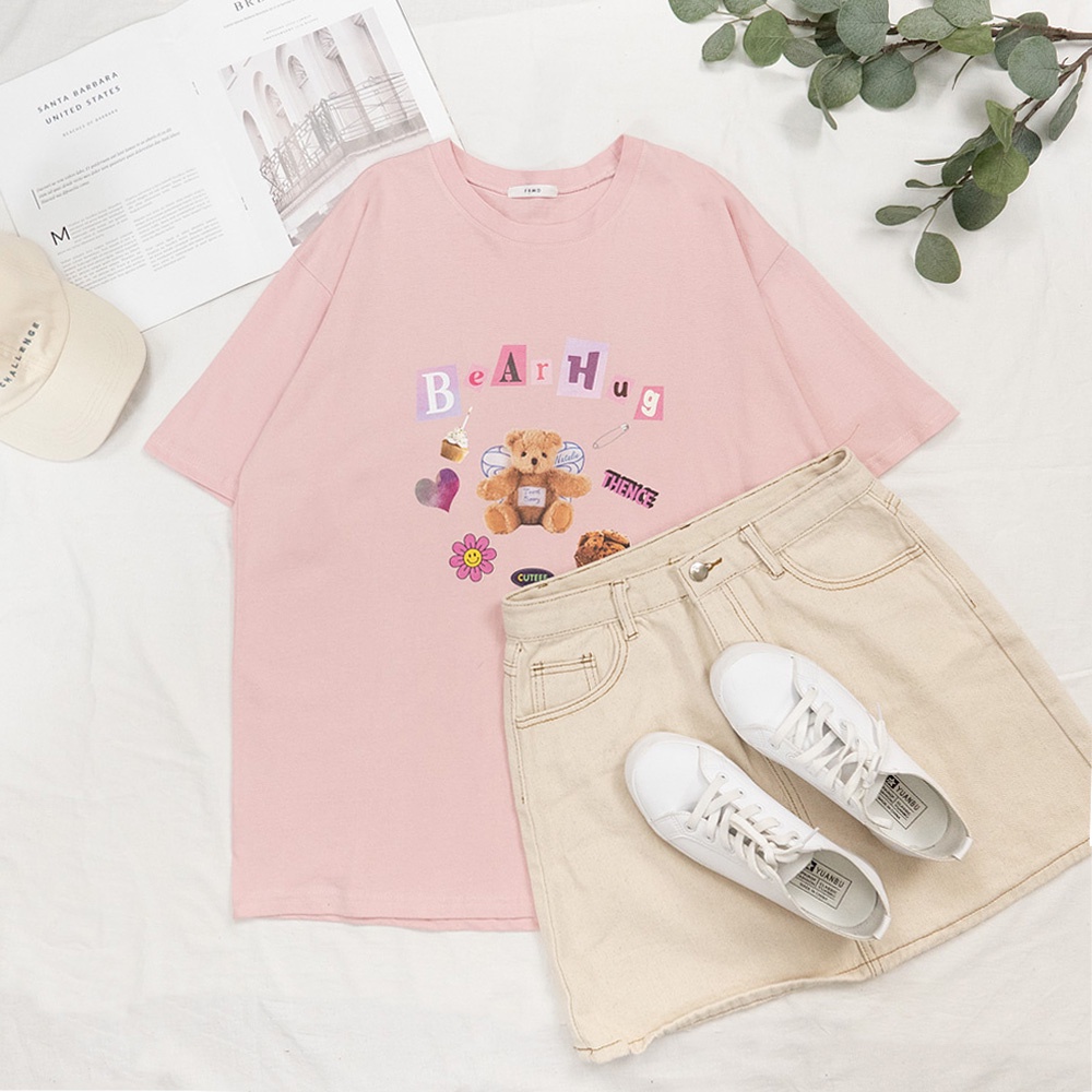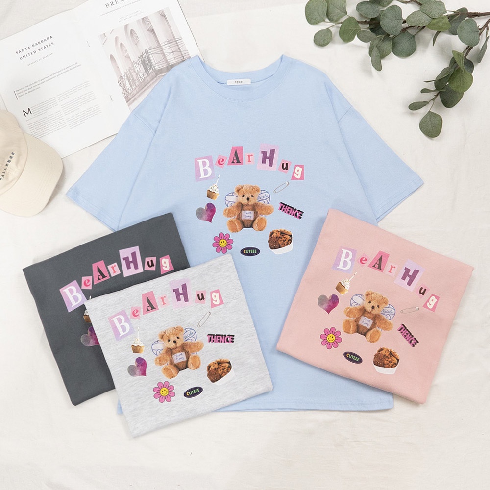 AHUA阿華有事嗎 正韓女裝 泰迪HUG印花短袖T恤 現+預【C2504】休閒 個性 短袖T恤 百搭 韓妞必備