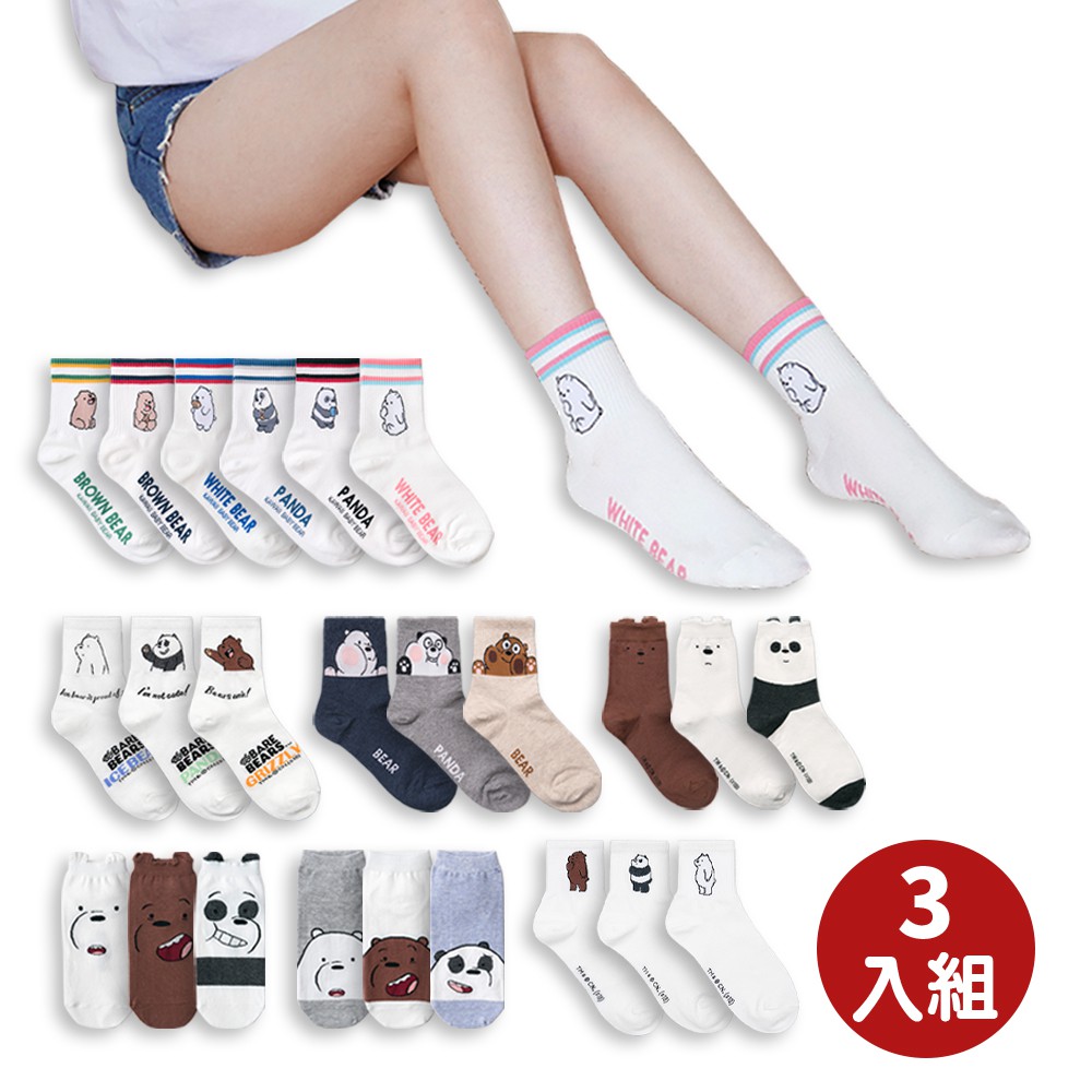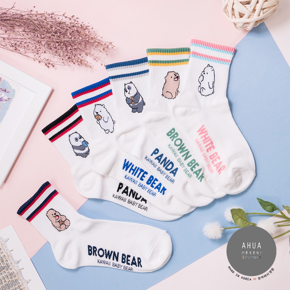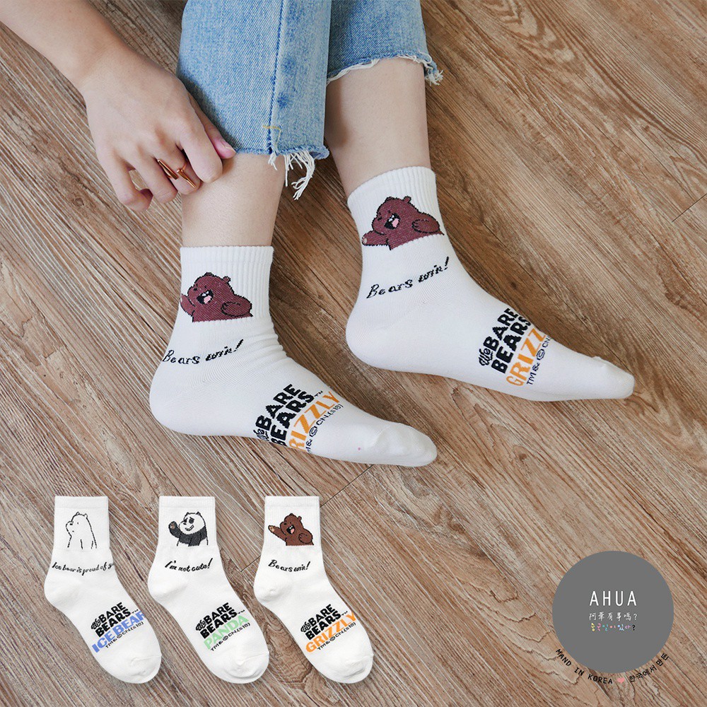 AHUA阿華有事嗎 限時特賣 正韓熊熊遇見你卡通圖案襪3雙組 熊熊三兄弟 純棉不吃腳 韓妞必備 韓系百搭款【滿額免運】