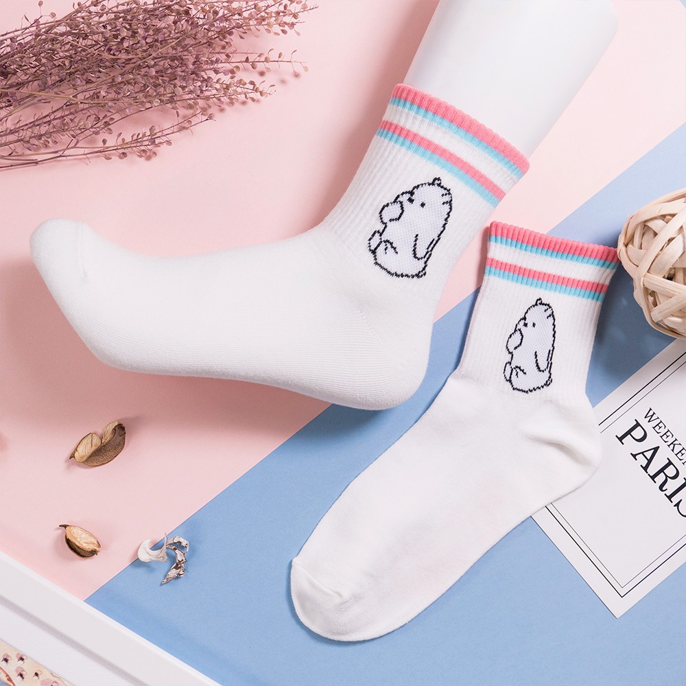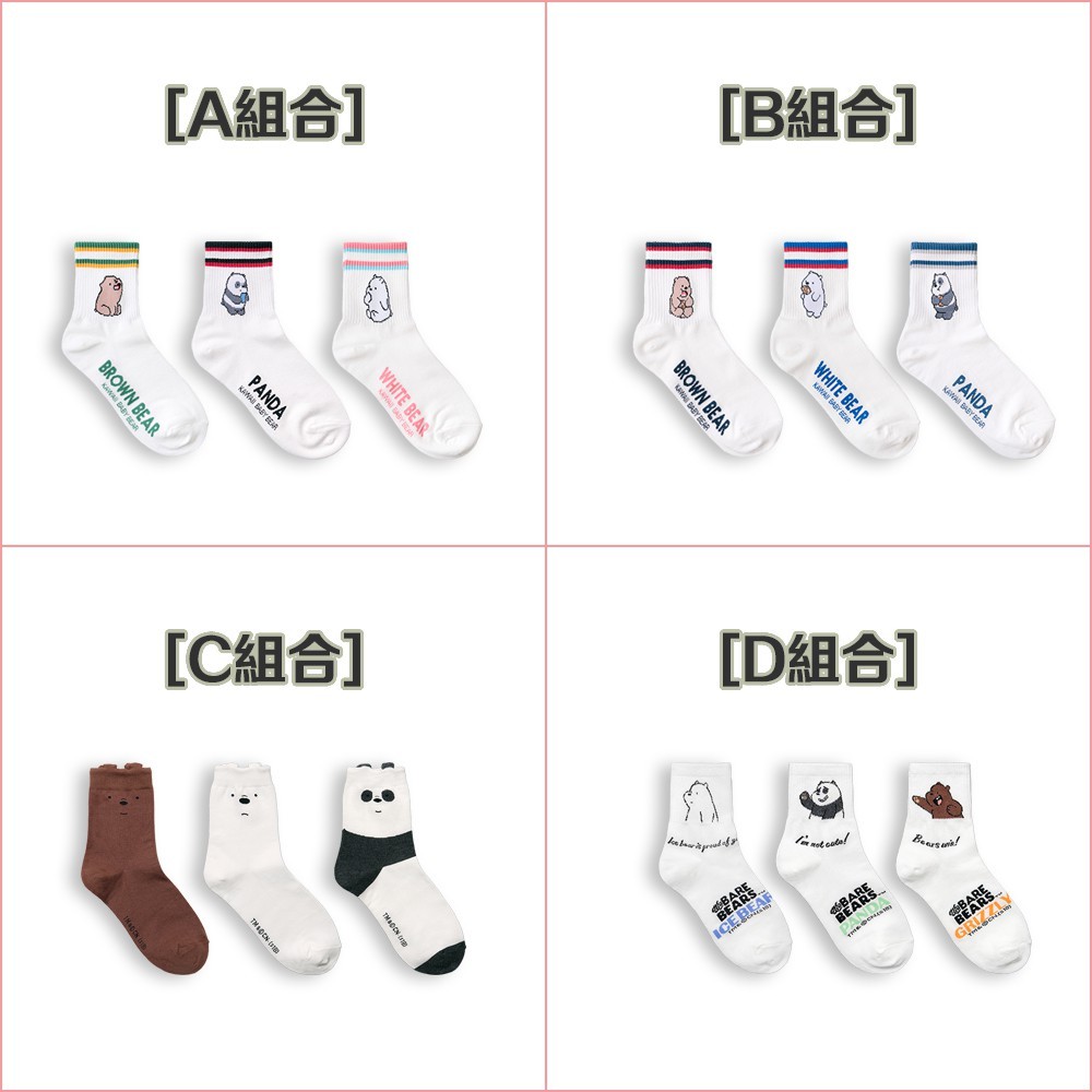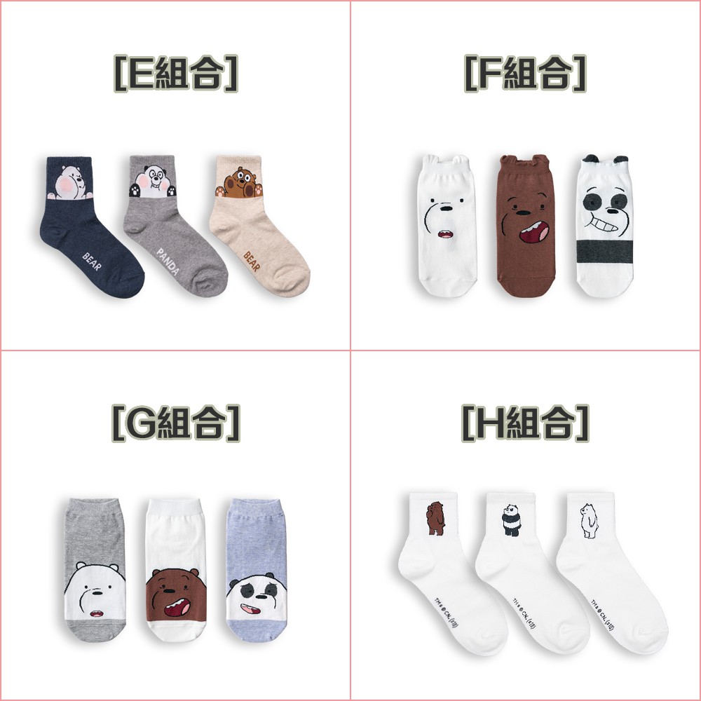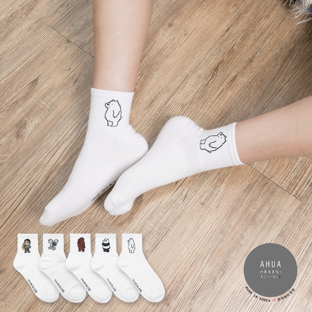 AHUA阿華有事嗎 限時特賣 正韓熊熊遇見你卡通圖案襪3雙組 熊熊三兄弟 純棉不吃腳 韓妞必備 韓系百搭款【滿額免運】