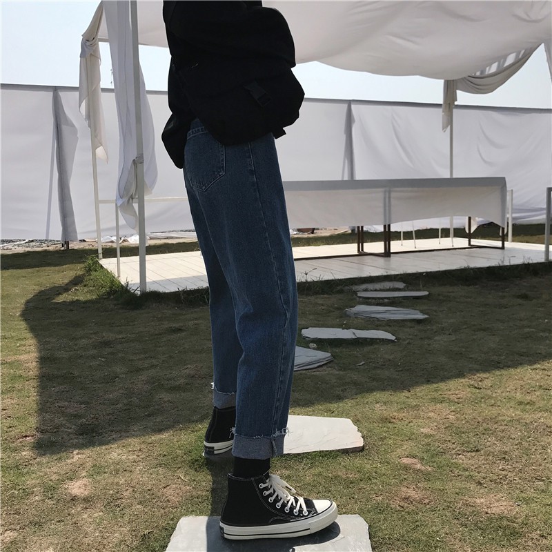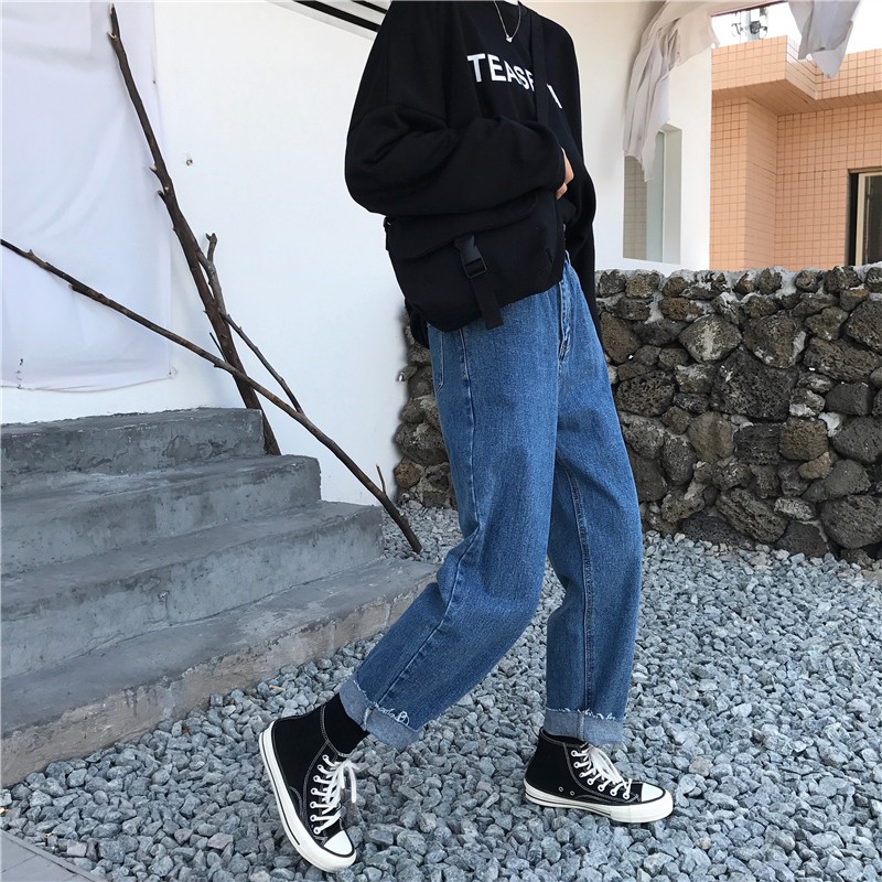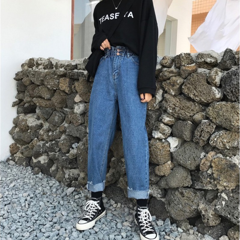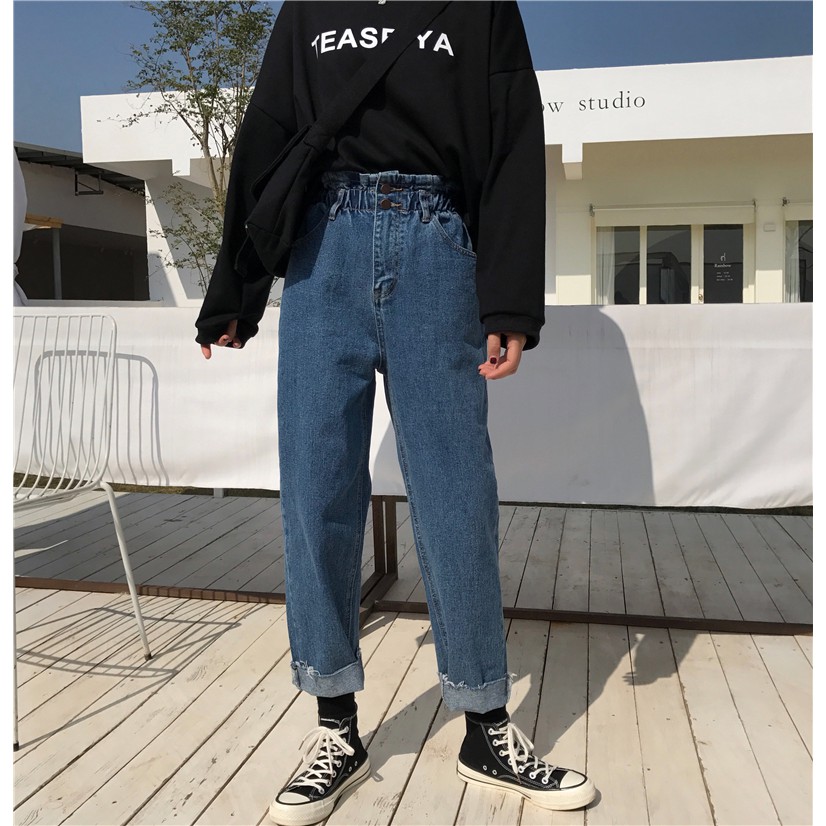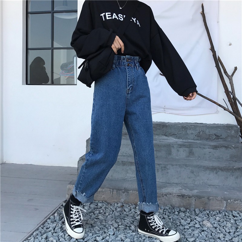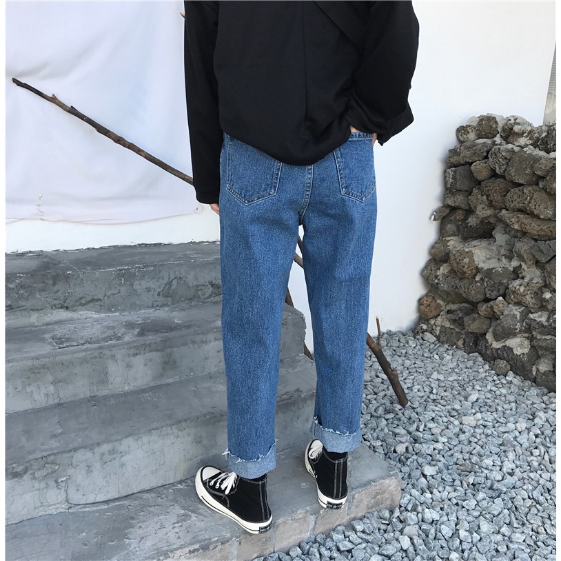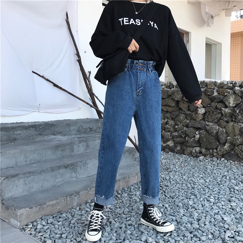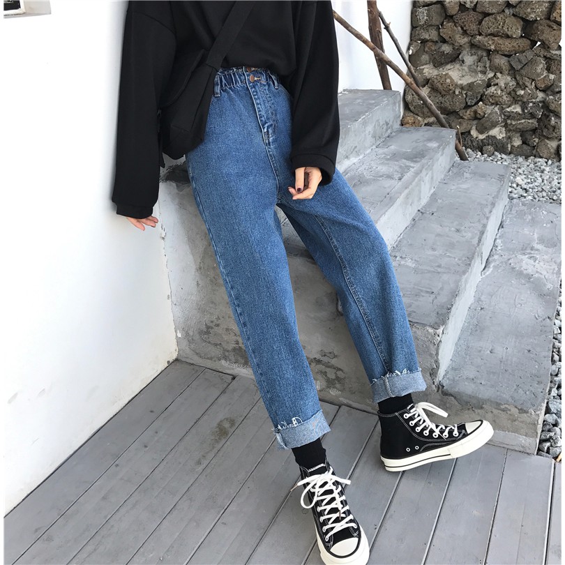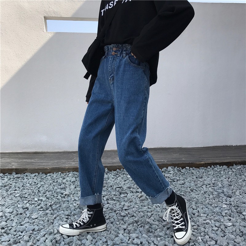 AHUA阿華有事嗎 鬆緊高腰直筒反摺牛仔褲【C0552】韓系百搭寬褲 韓妞必備寬鬆顯瘦款