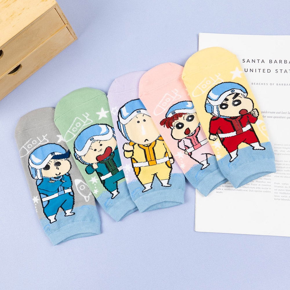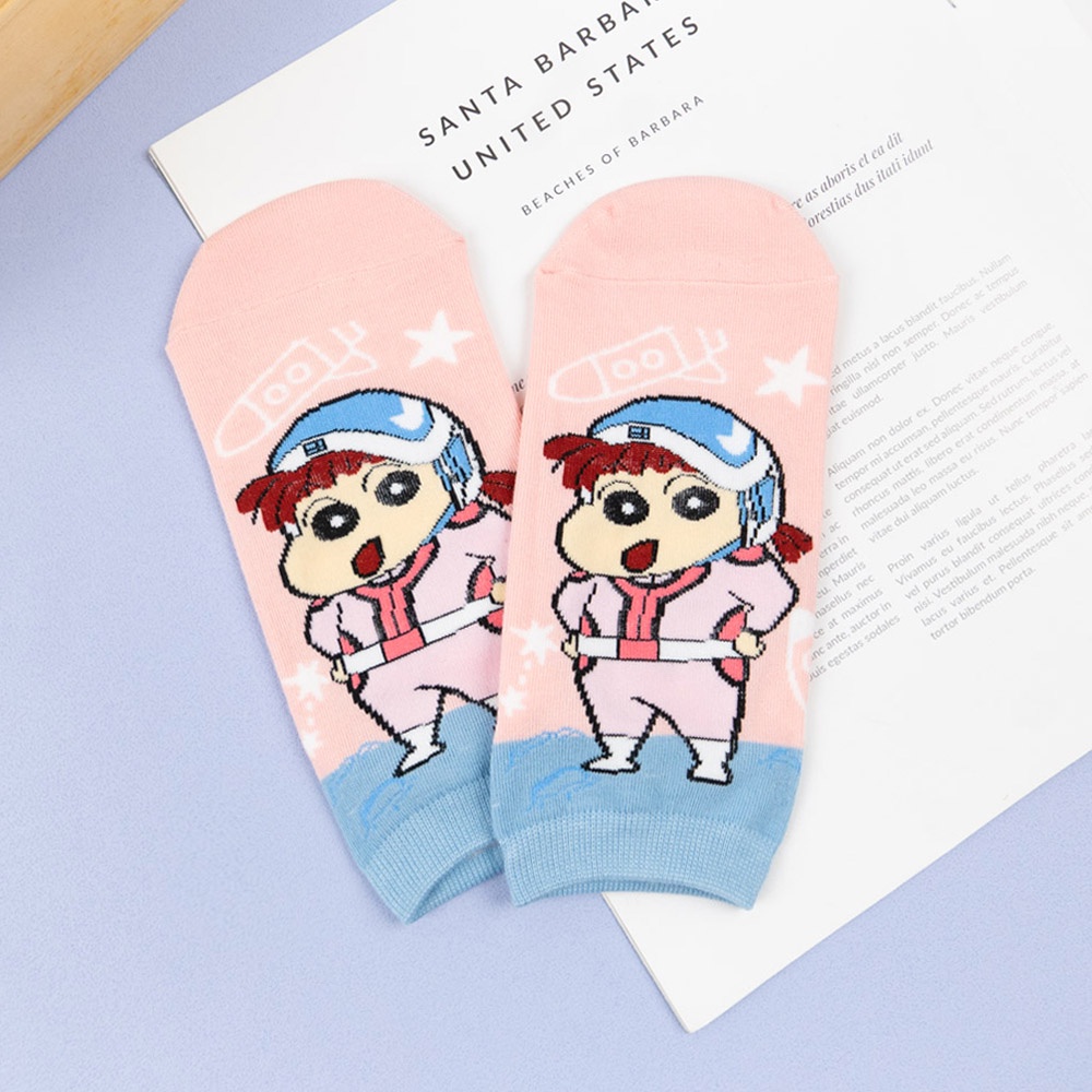 蠟筆小新 AHUA阿華有事嗎 韓國襪子 蠟筆小新春日部防衛隊全身短襪【K1480】短襪 卡通襪 韓妞必 百搭純棉襪