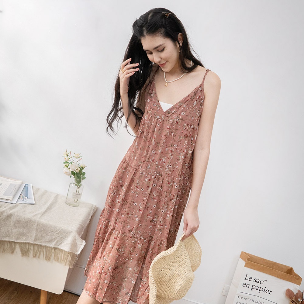 AHUA阿華有事嗎 韓系女裝 復古碎花雪紡吊帶裙【C2453】洋裝 連身裙 碎花 顯瘦 氣質 百搭 基本款