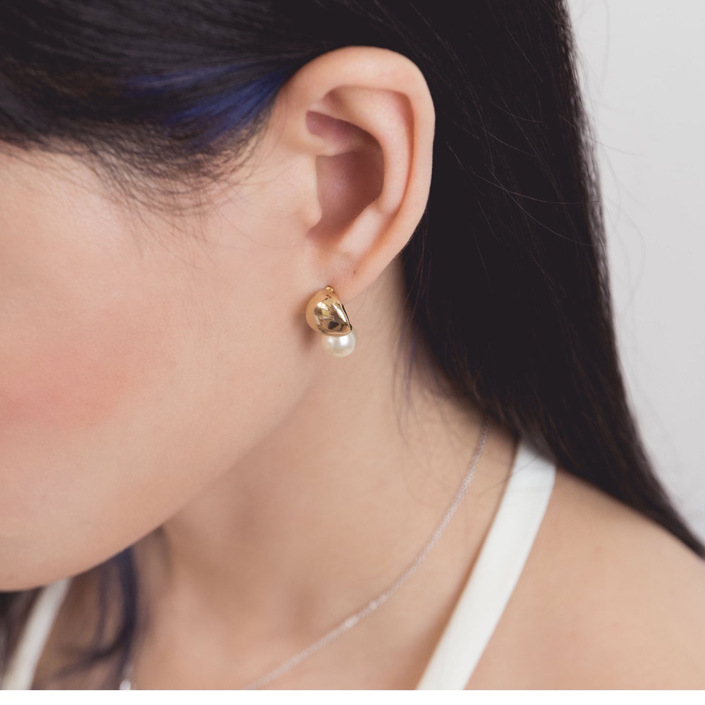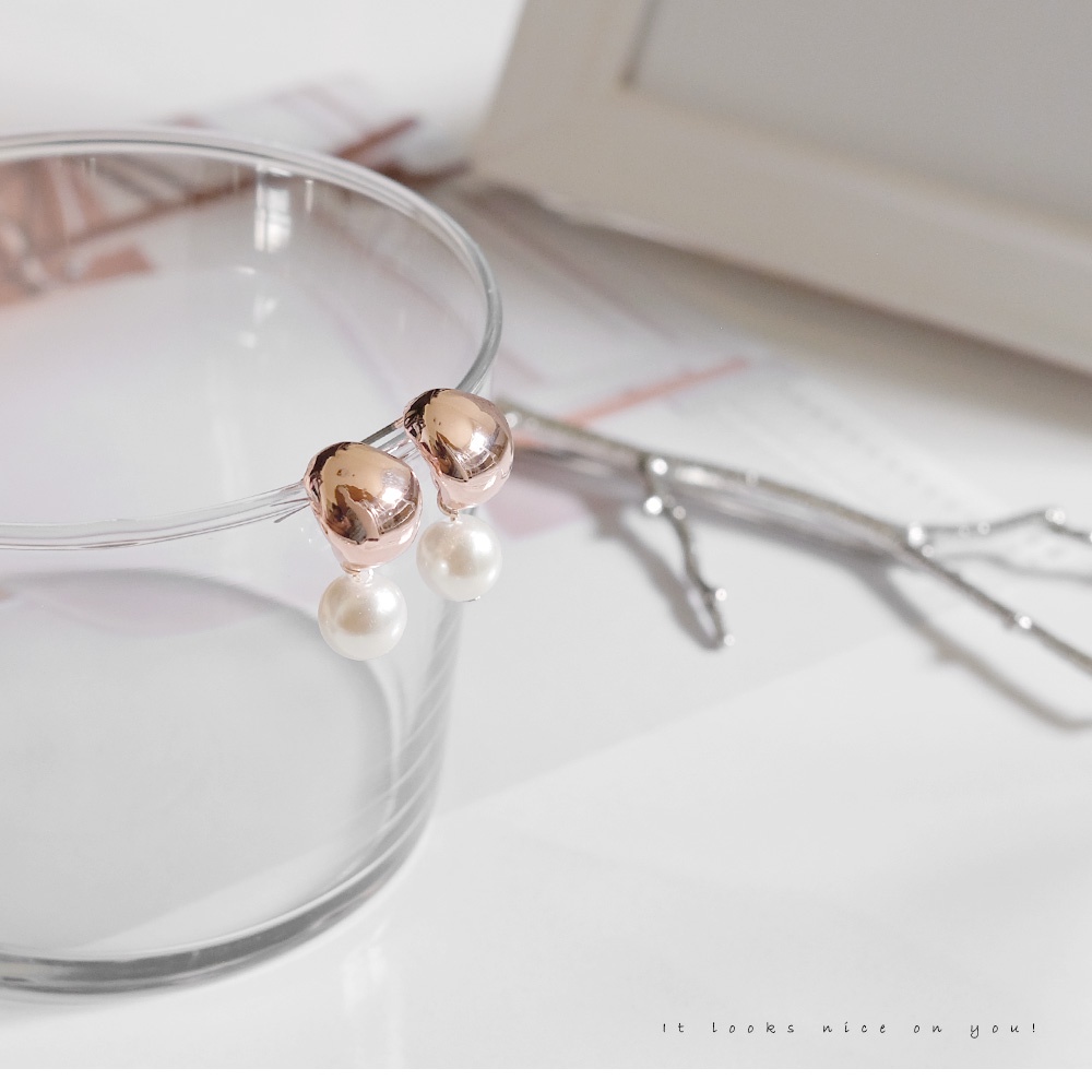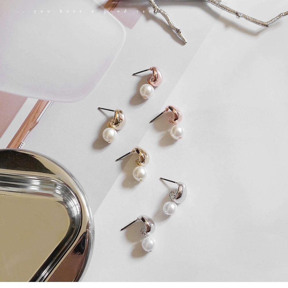 AHUA阿華有事嗎 韓國飾品 鏡面水滴珍珠點綴耳環【A0250】正韓 時尚 簡約 韓妞必備 百搭 基本款 耳針 耳環