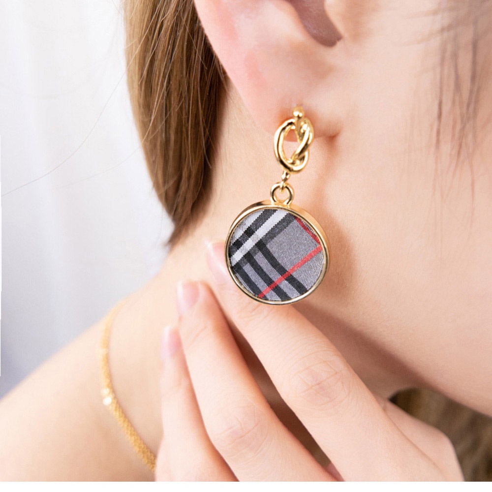 AHUA阿華有事嗎 韓國飾品 英倫布面格紋耳環【A0421】正韓 時尚 文青 浪漫 簡約 韓妞必備 百搭 基本款 耳針