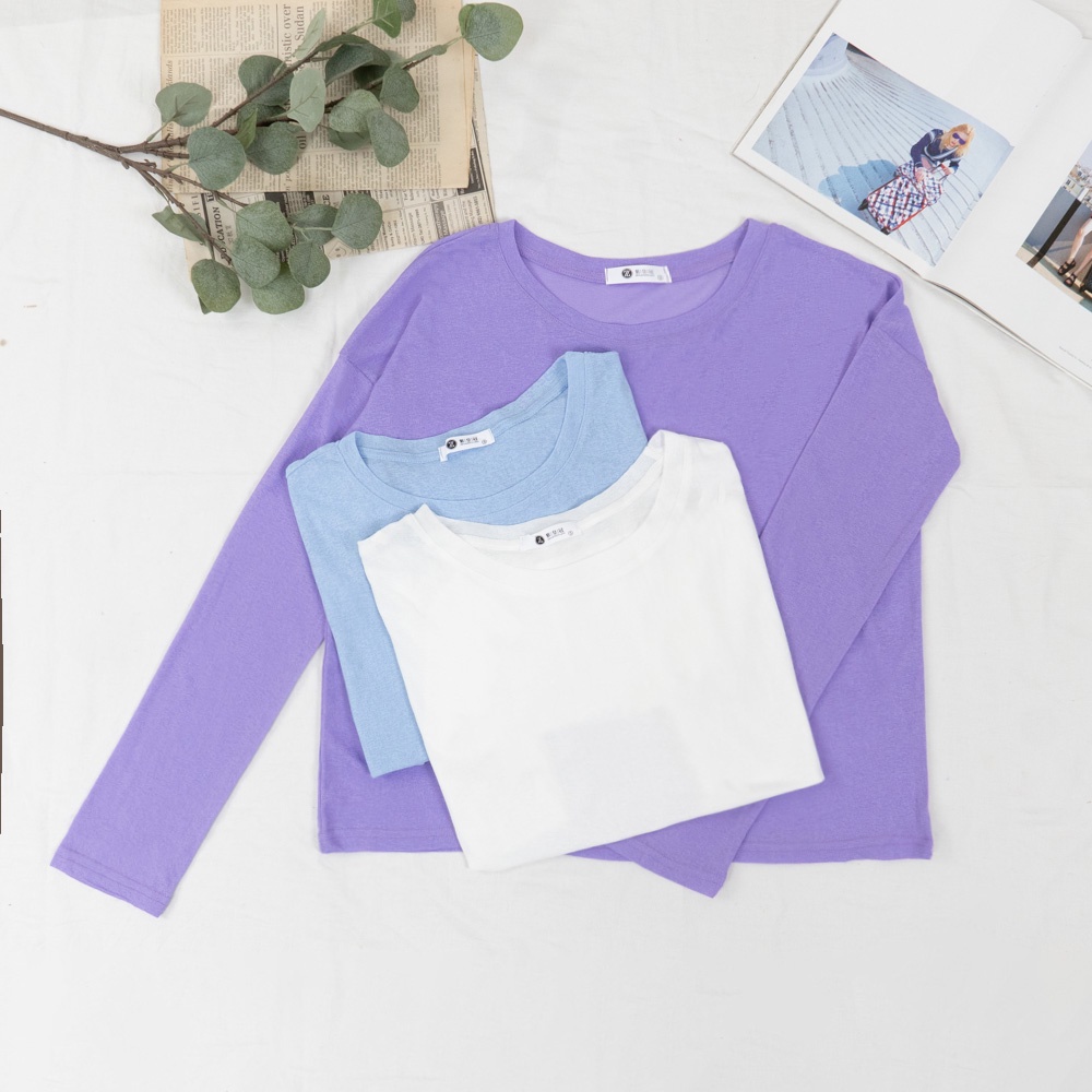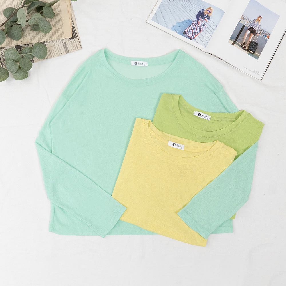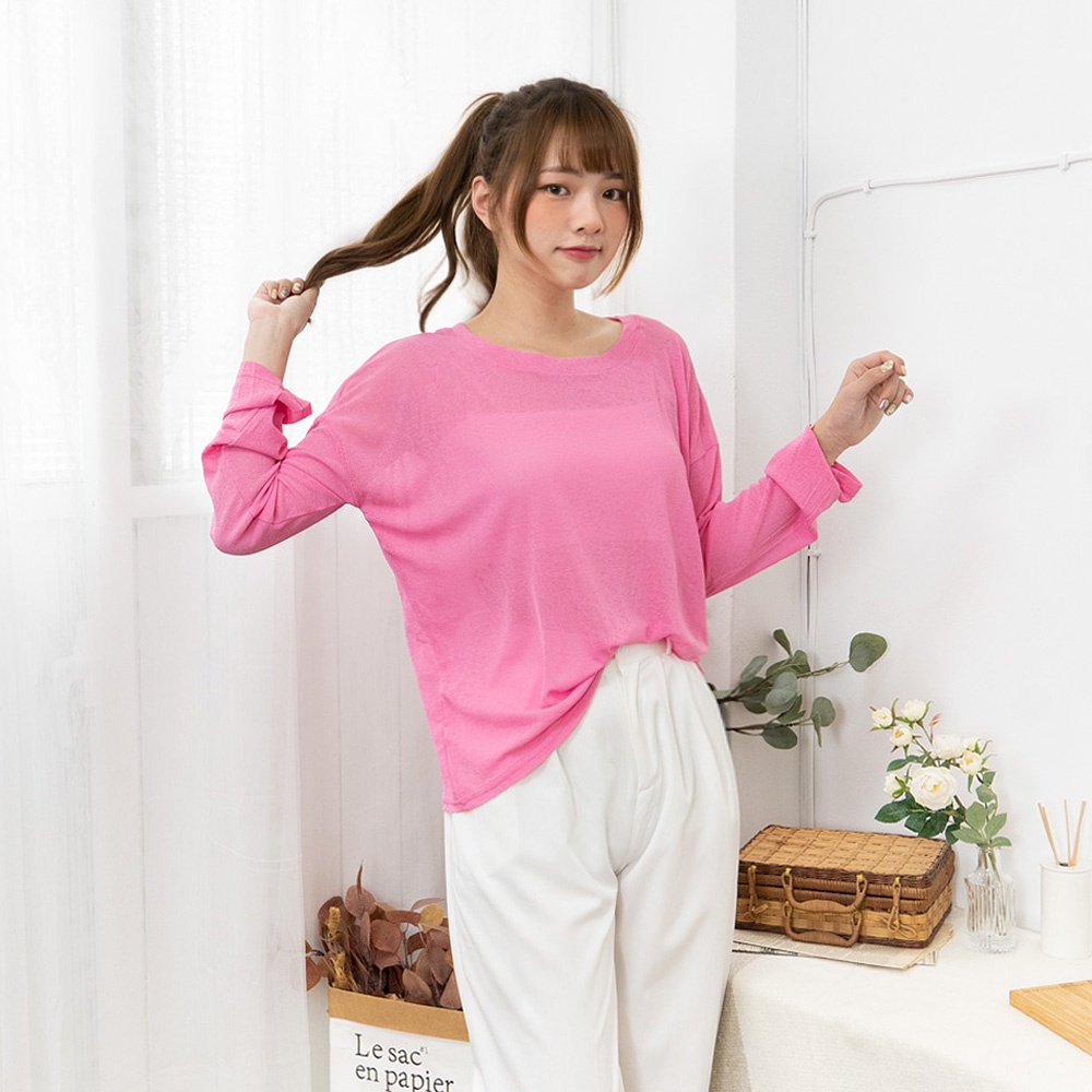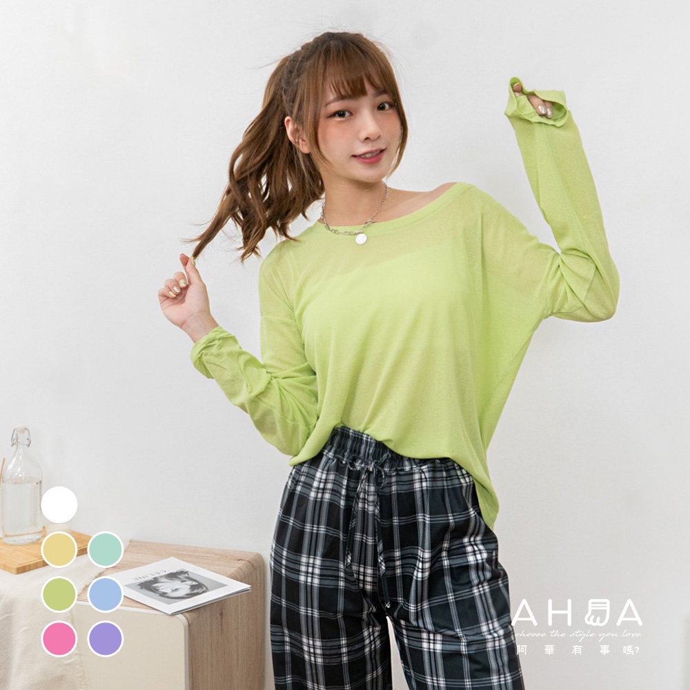 AHUA阿華有事嗎 韓系女裝 糖果色透膚防曬長袖上衣【C2433】純色 長袖上衣 基本款 可愛 百搭 韓妞必備