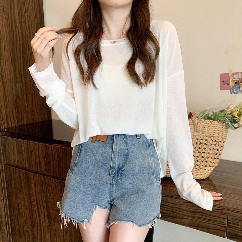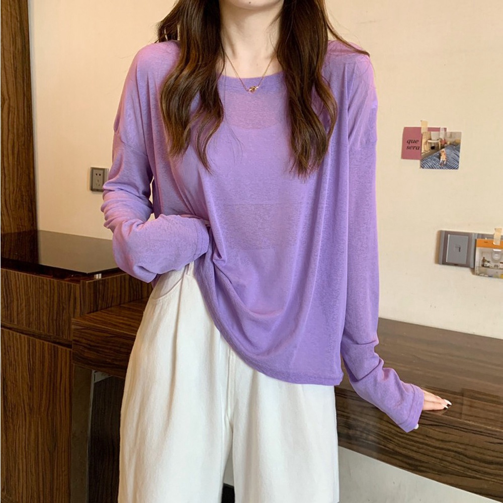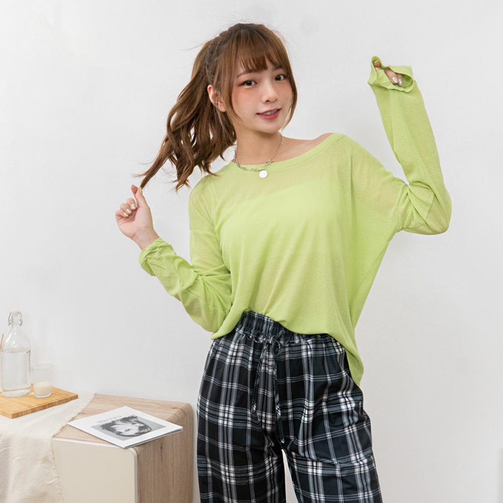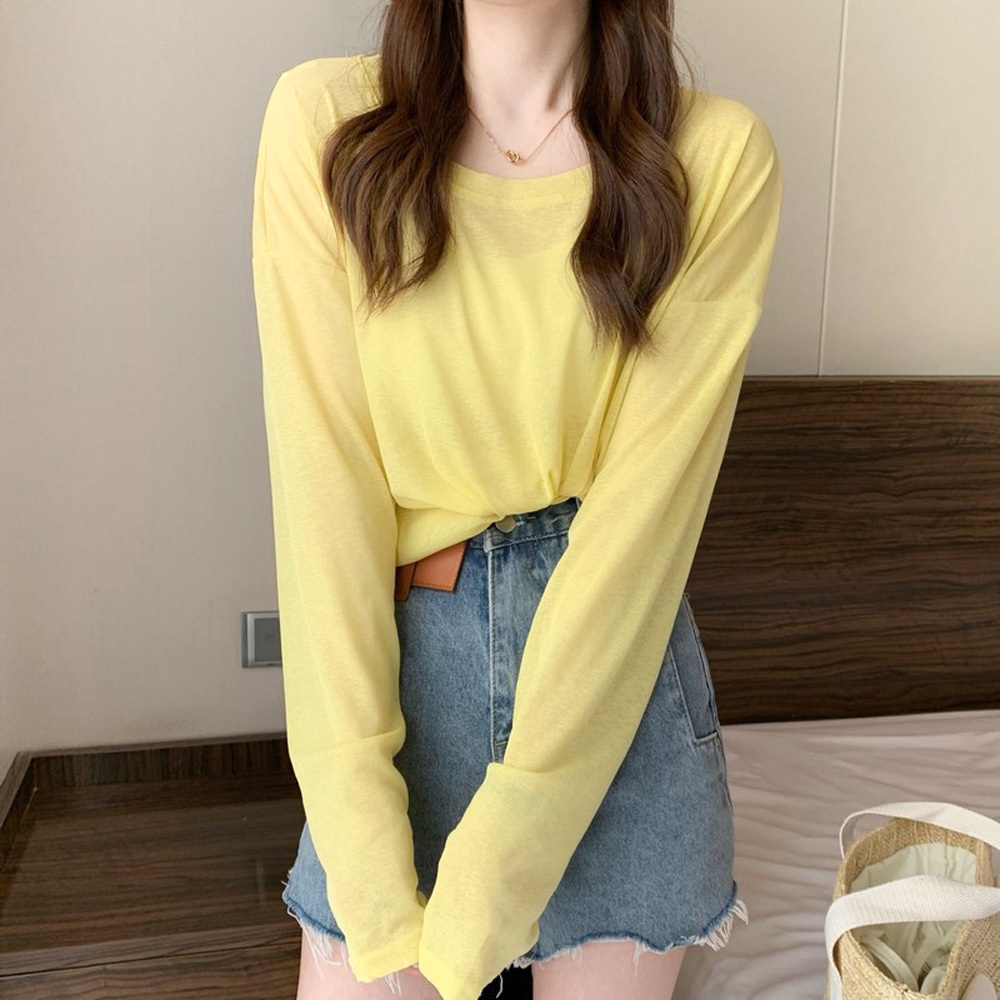 AHUA阿華有事嗎 韓系女裝 糖果色透膚防曬長袖上衣【C2433】純色 長袖上衣 基本款 可愛 百搭 韓妞必備