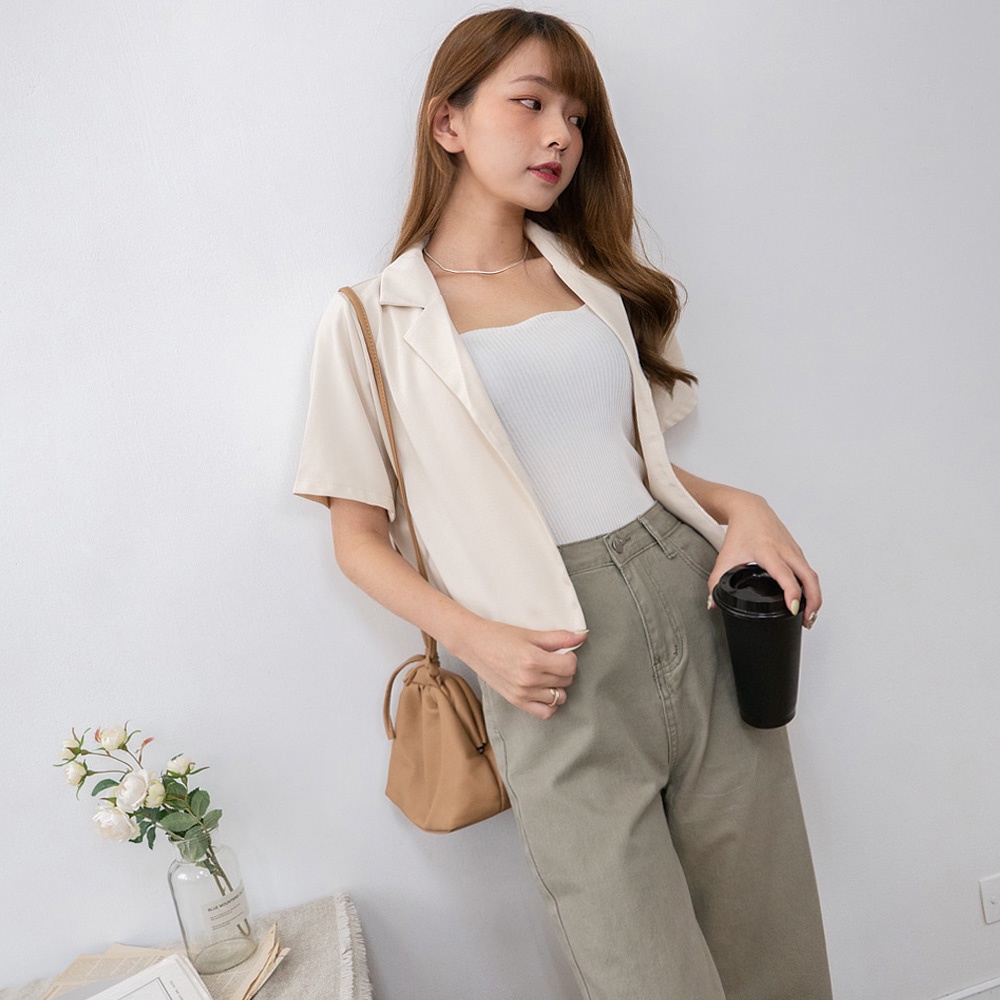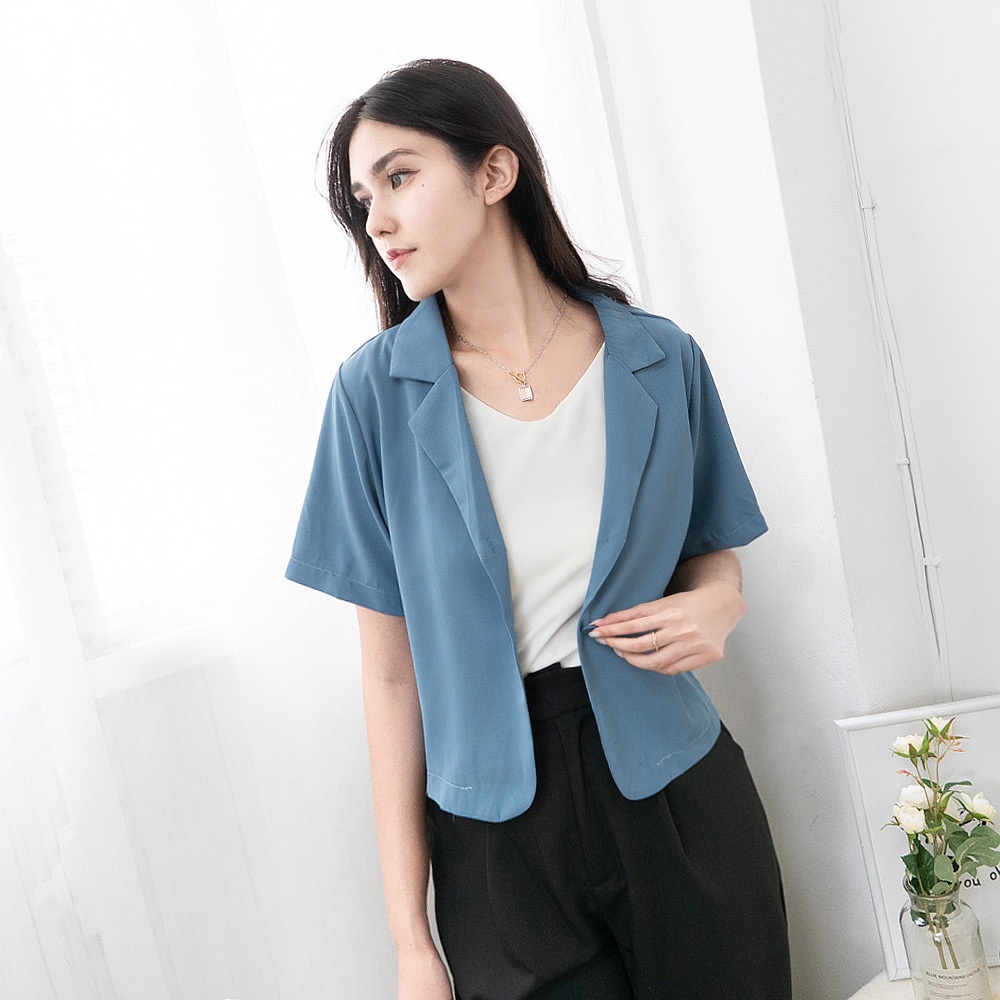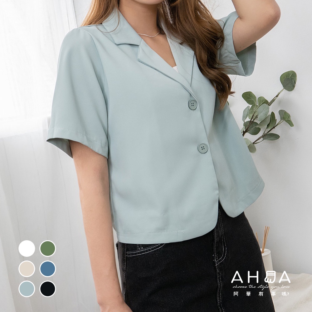 AHUA阿華有事嗎 韓系女裝 翻領小西服短袖外套【C2419】微正式 短版 修身 顯瘦 百搭 基本款 上衣 韓妞必備