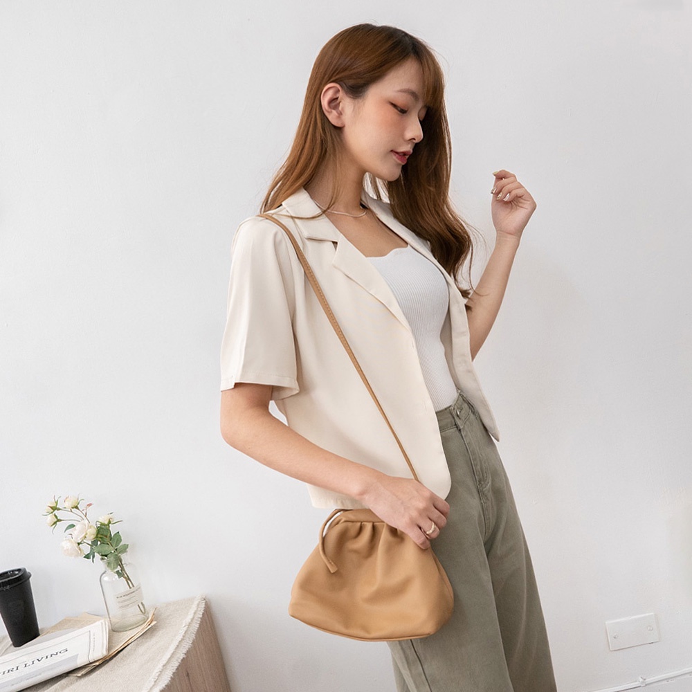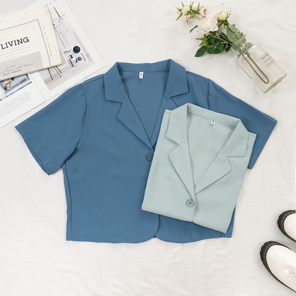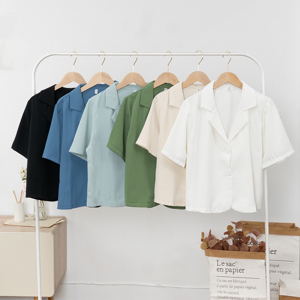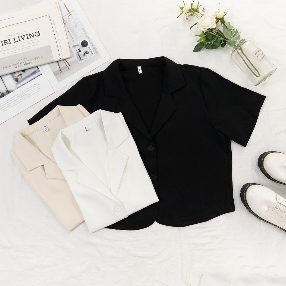 AHUA阿華有事嗎 韓系女裝 翻領小西服短袖外套【C2419】微正式 短版 修身 顯瘦 百搭 基本款 上衣 韓妞必備