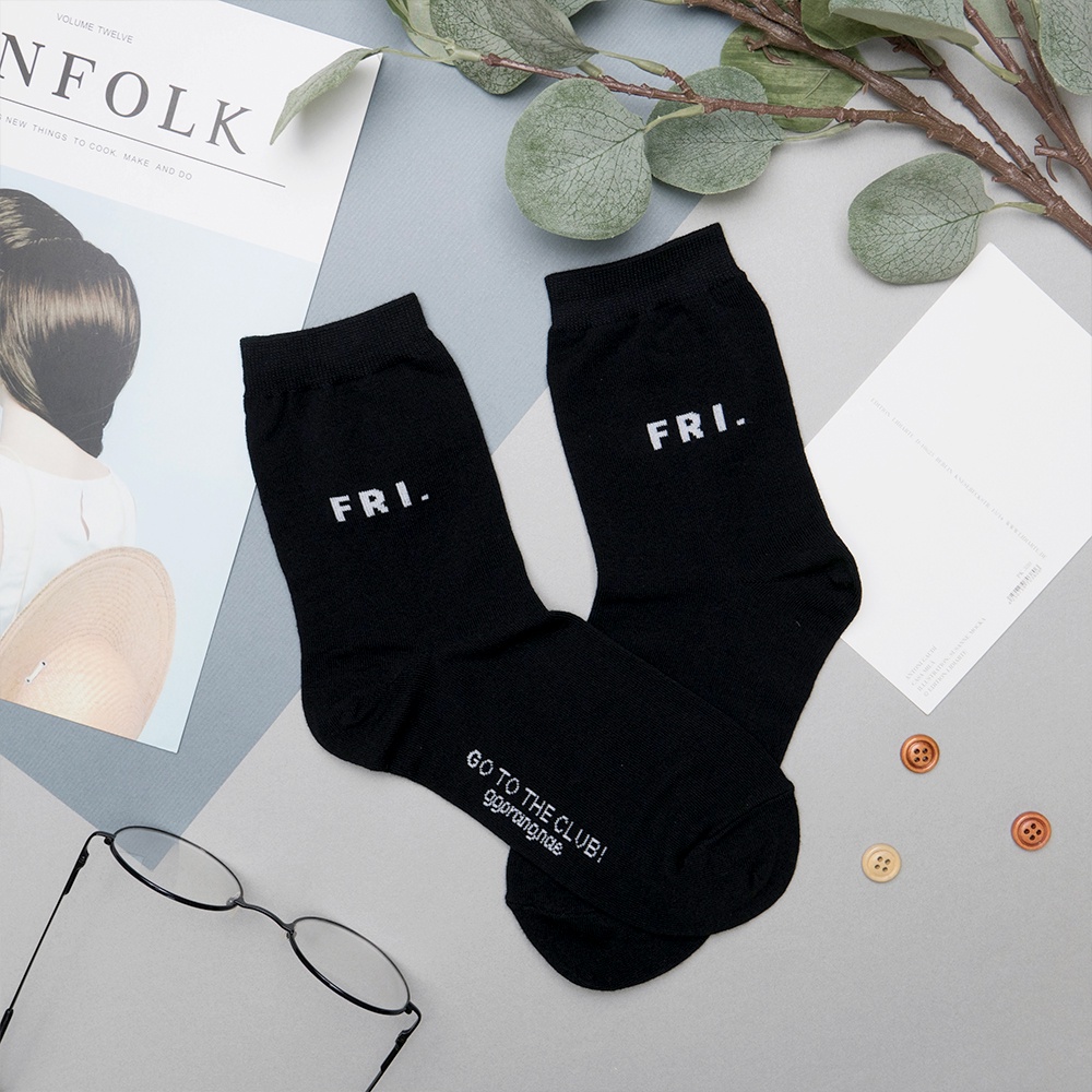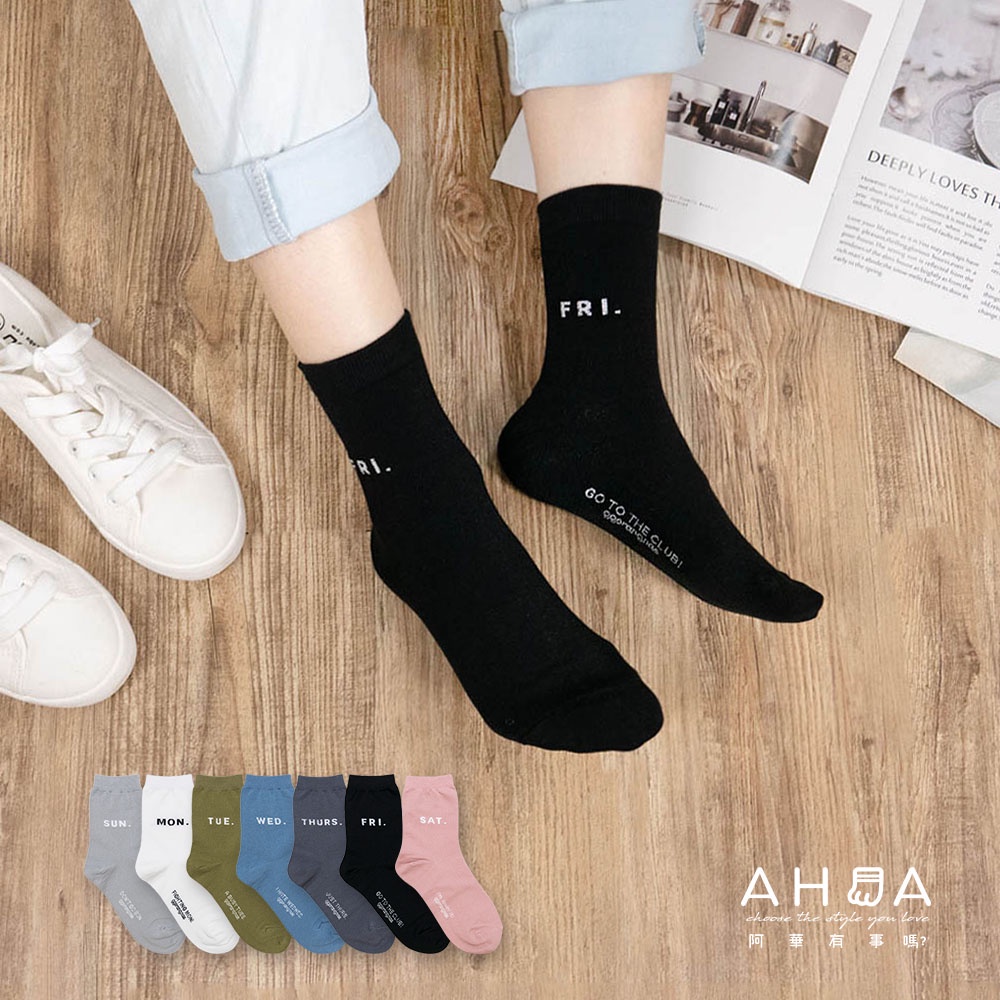 AHUA阿華有事嗎 韓國襪子 星期字母純色中筒襪 K0077 正韓少女襪 韓妞必備長襪 百搭純棉襪